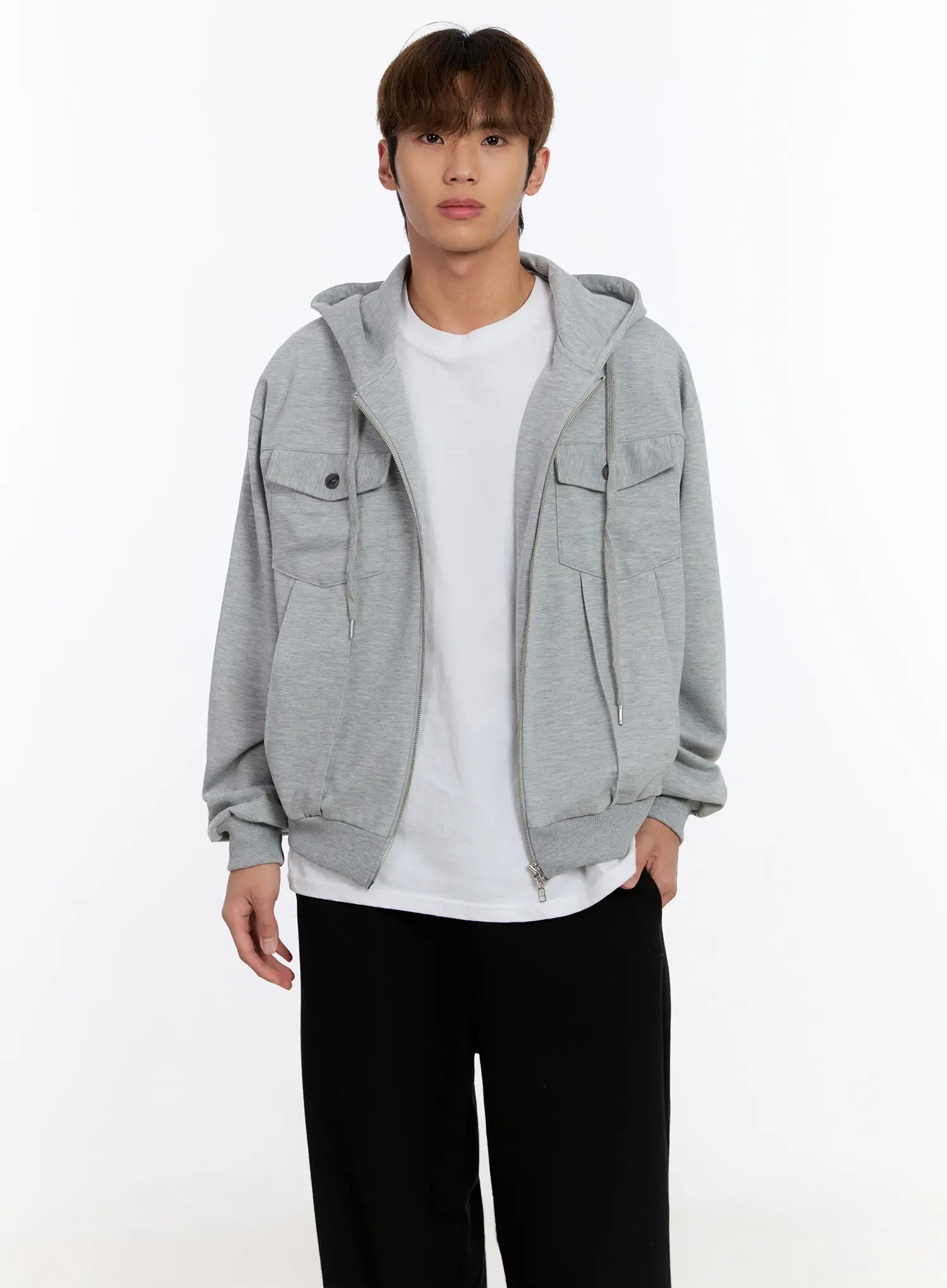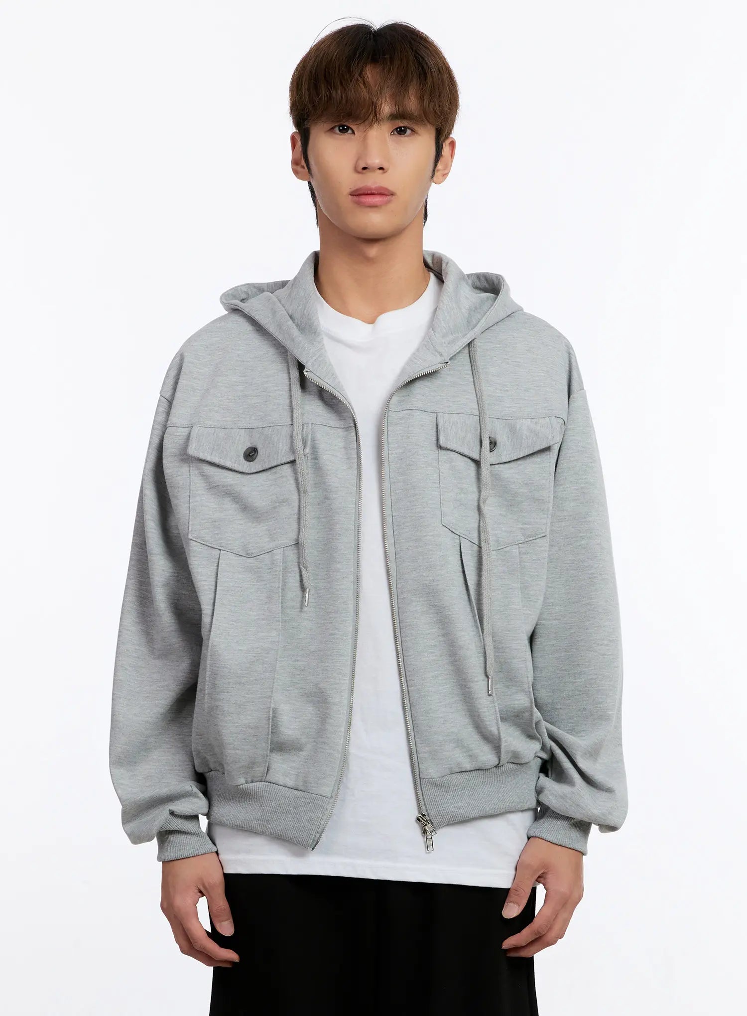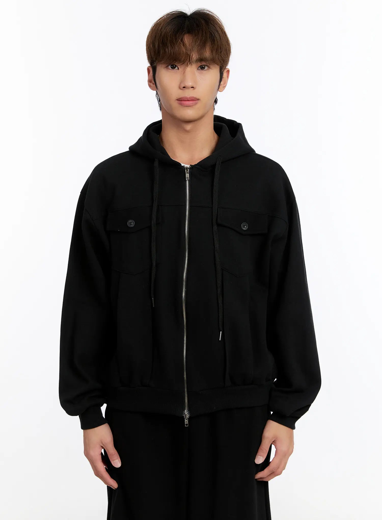 Men's Button Detail Zip-Up Hoodie Jacket IN528