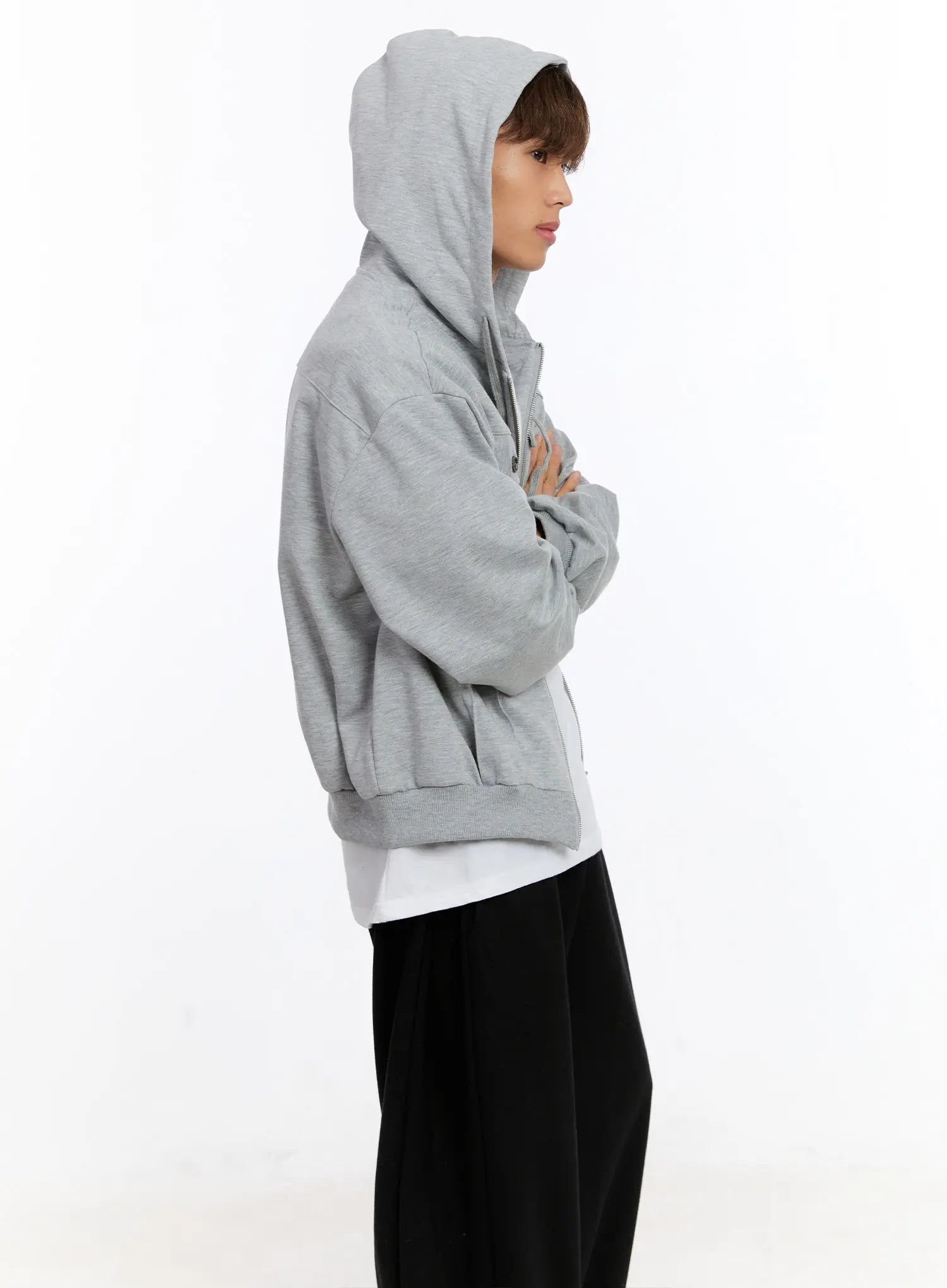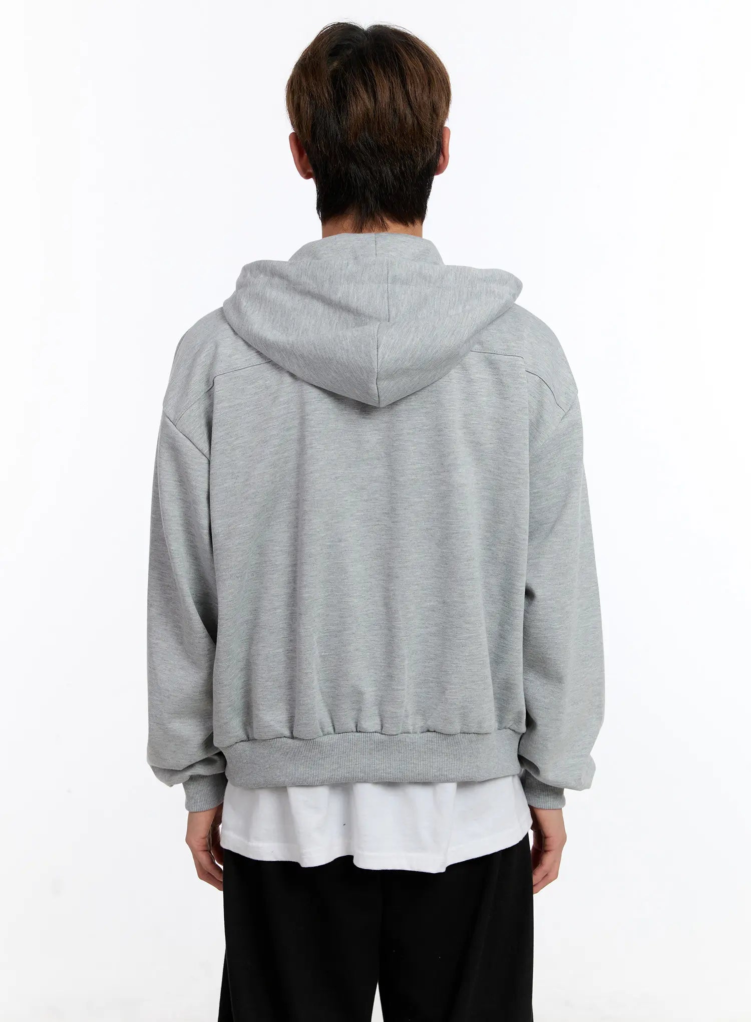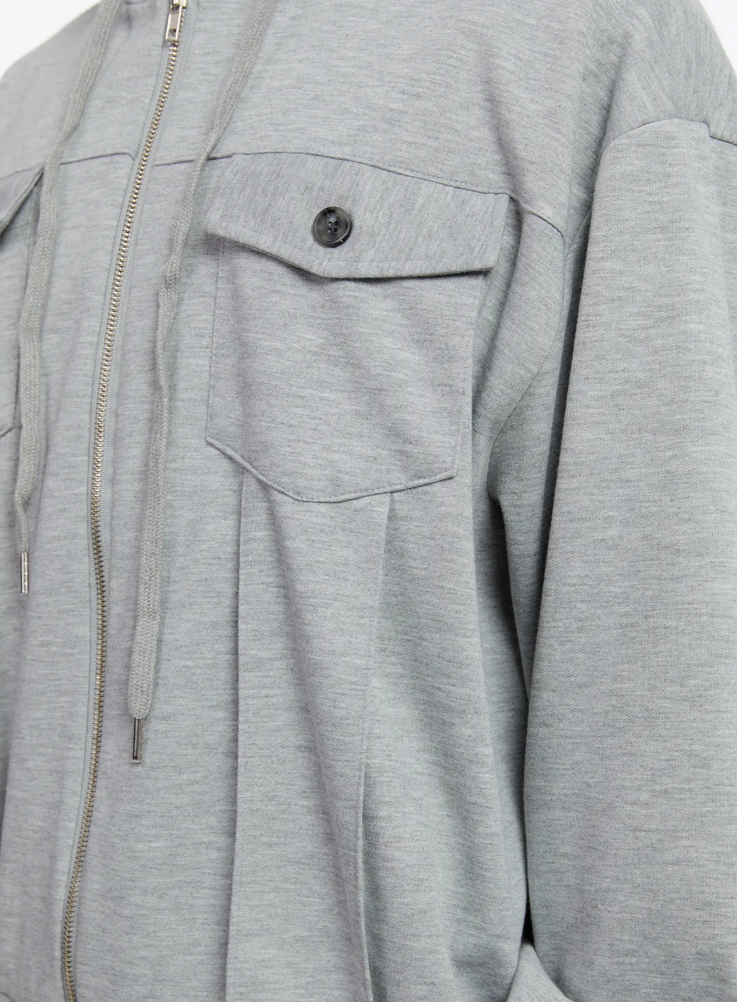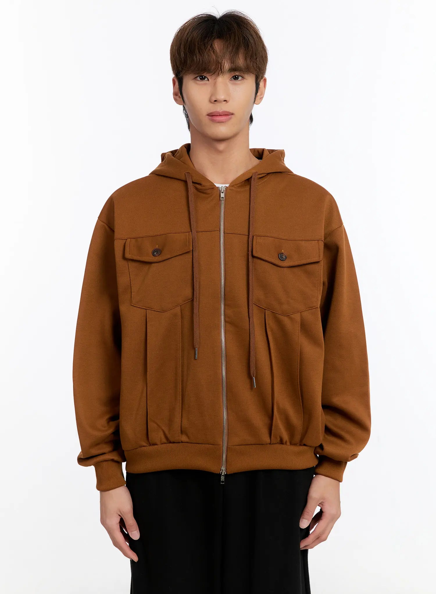 Men's Button Detail Zip-Up Hoodie Jacket IN528