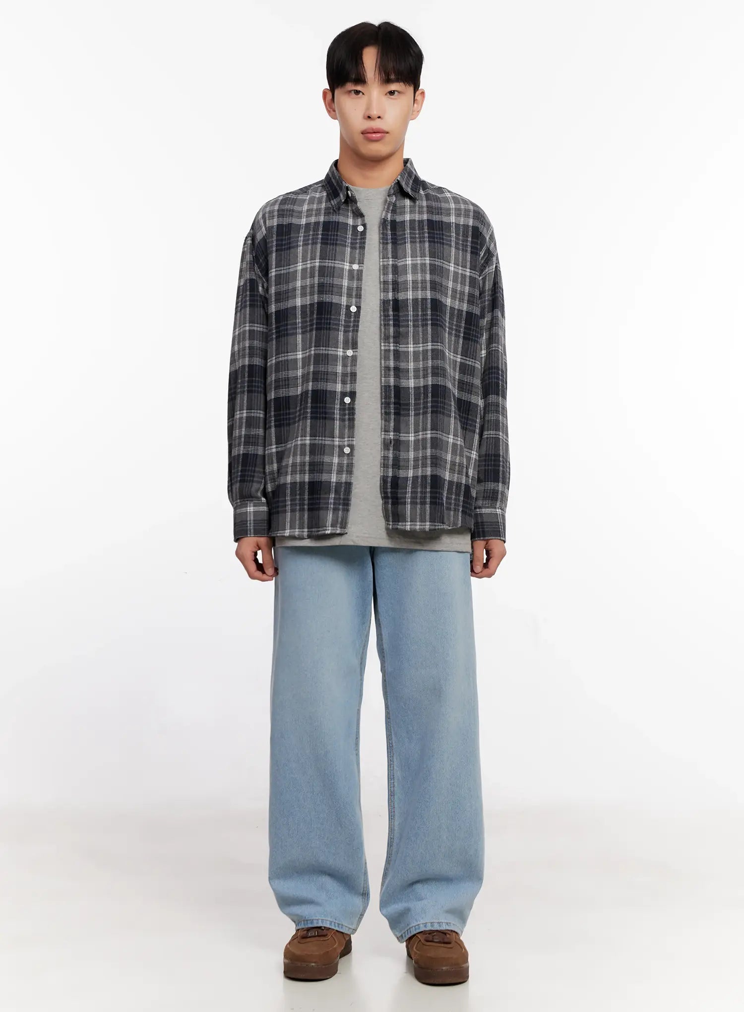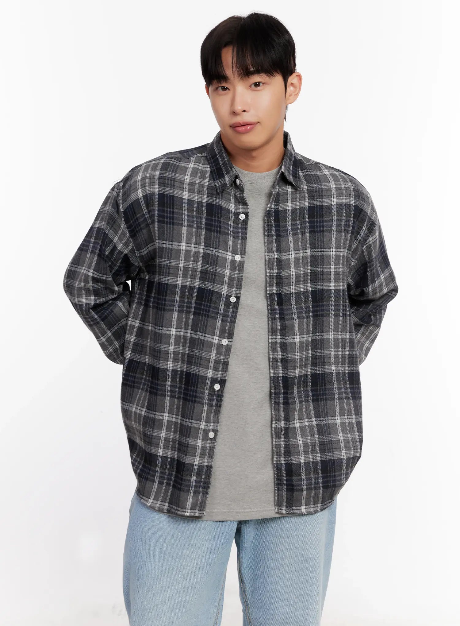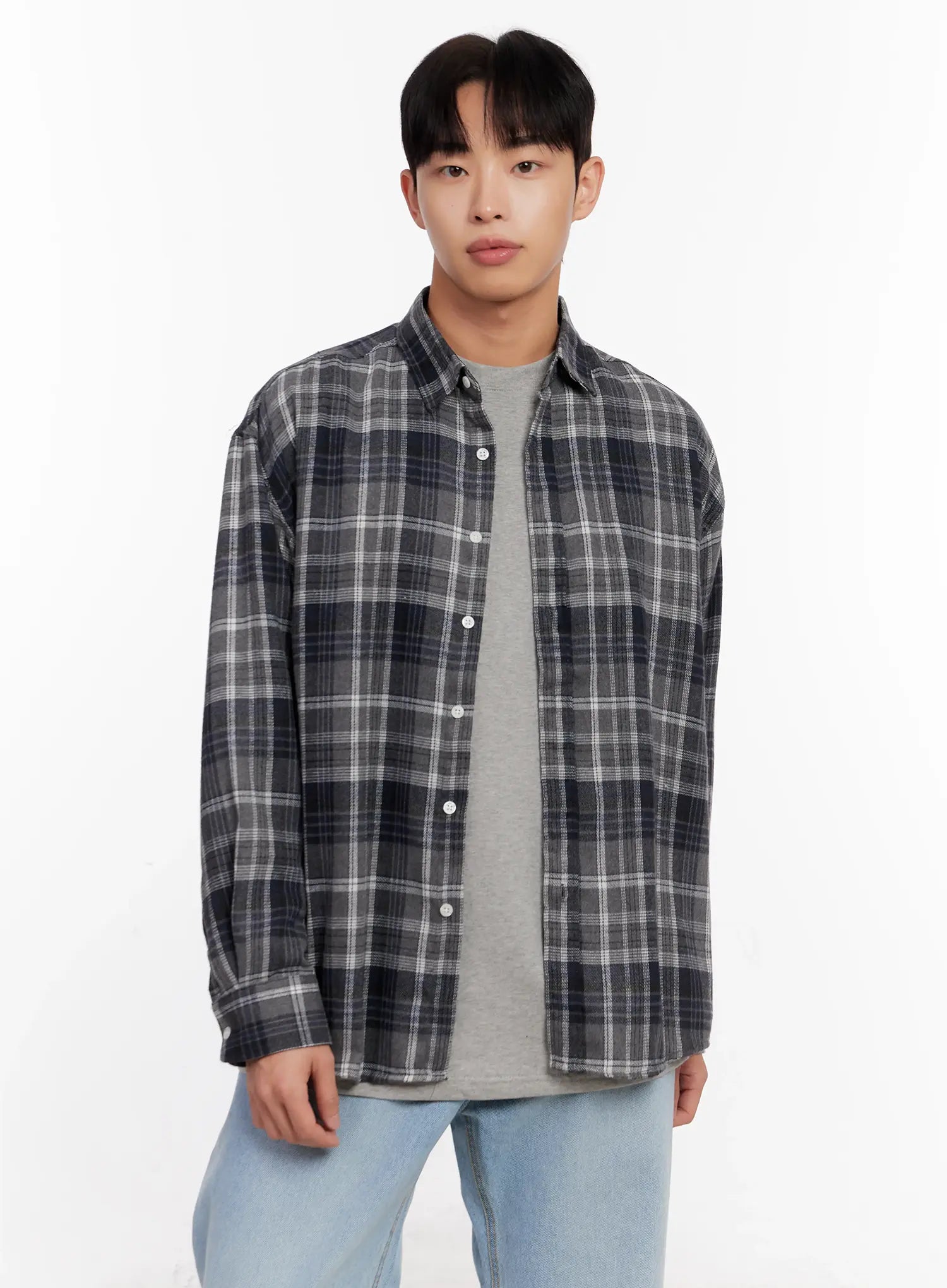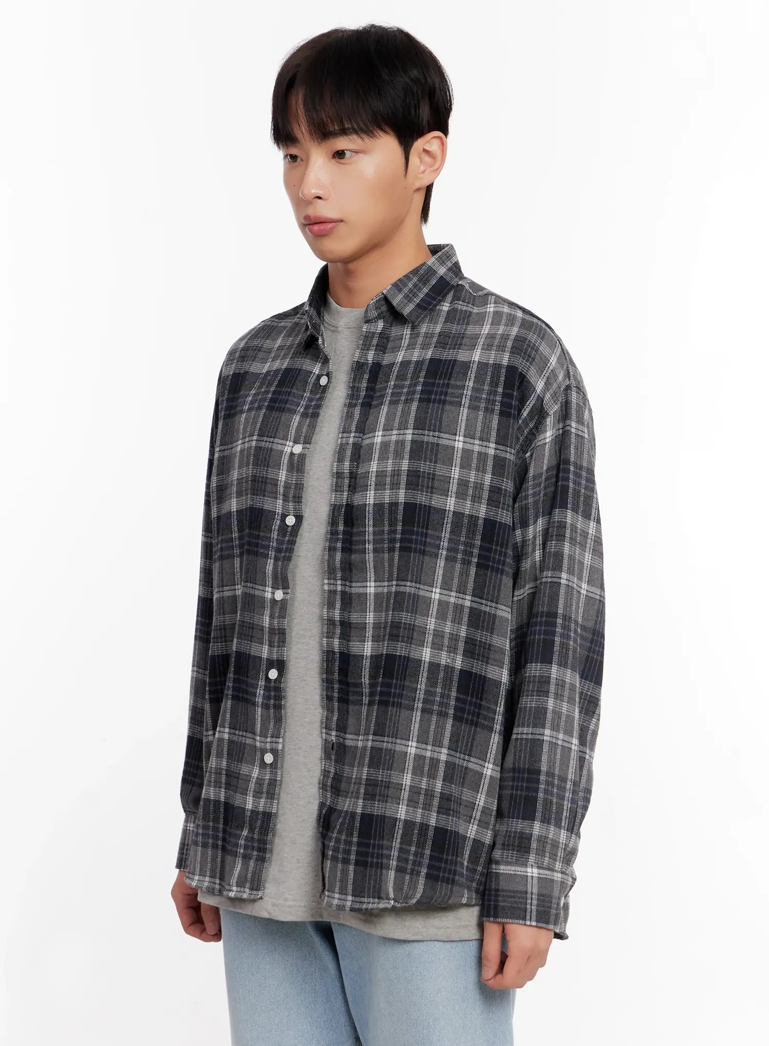 Men's Casual Plaid Check Shirt IO528