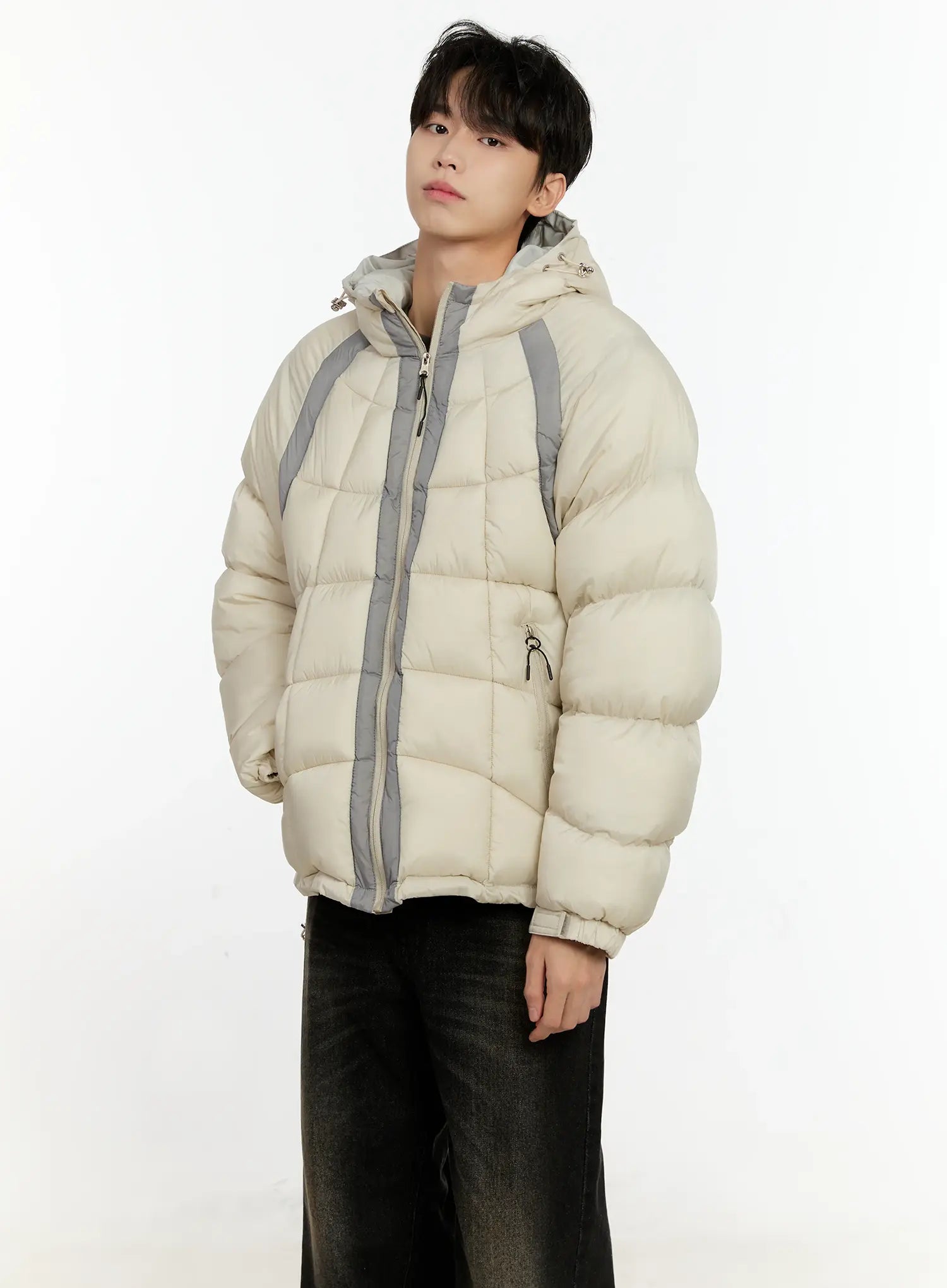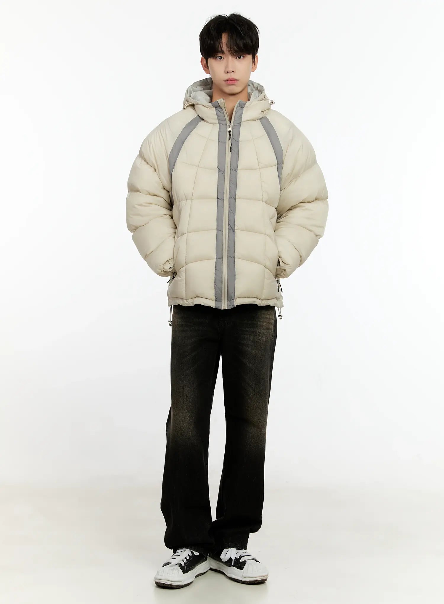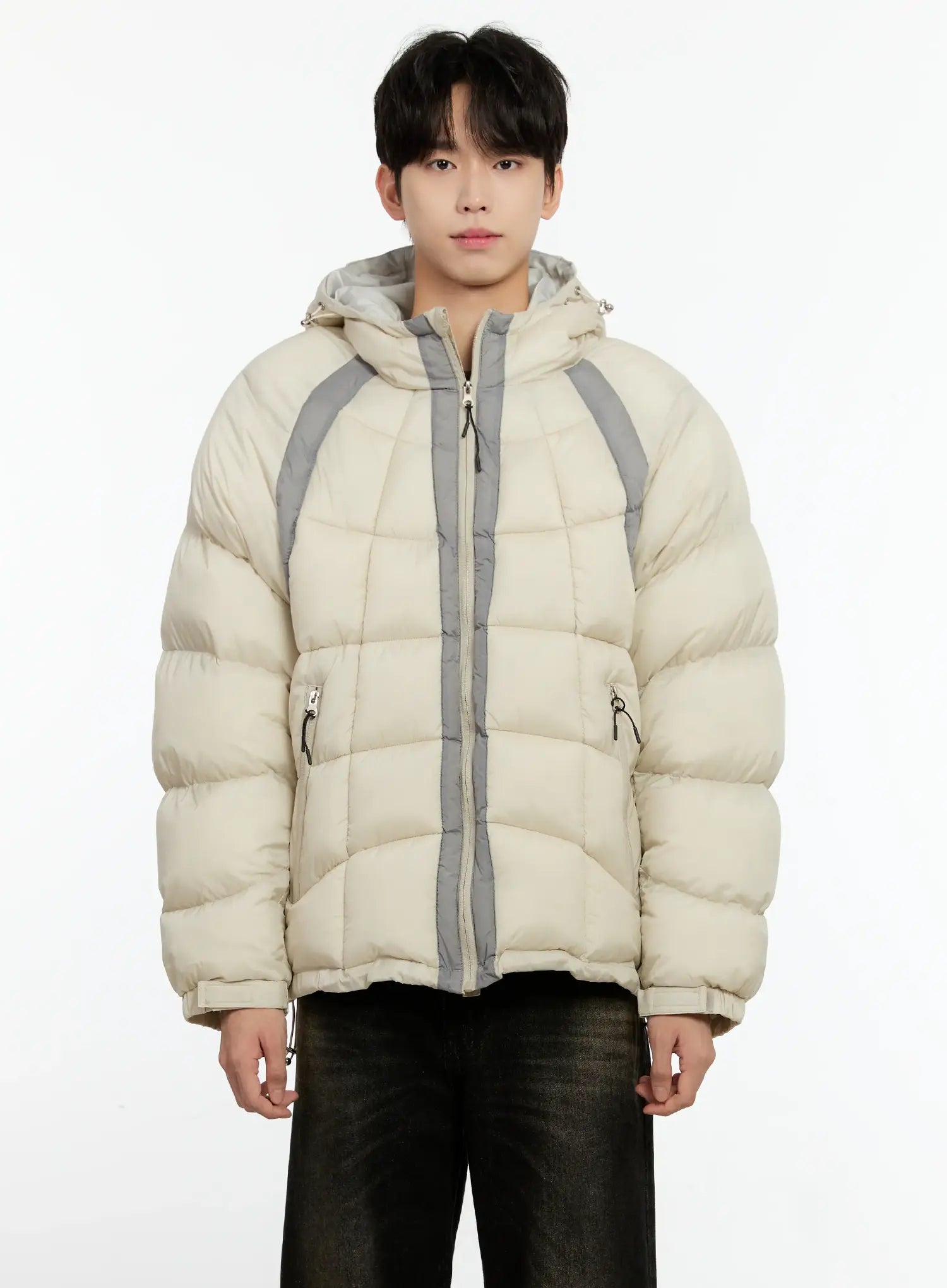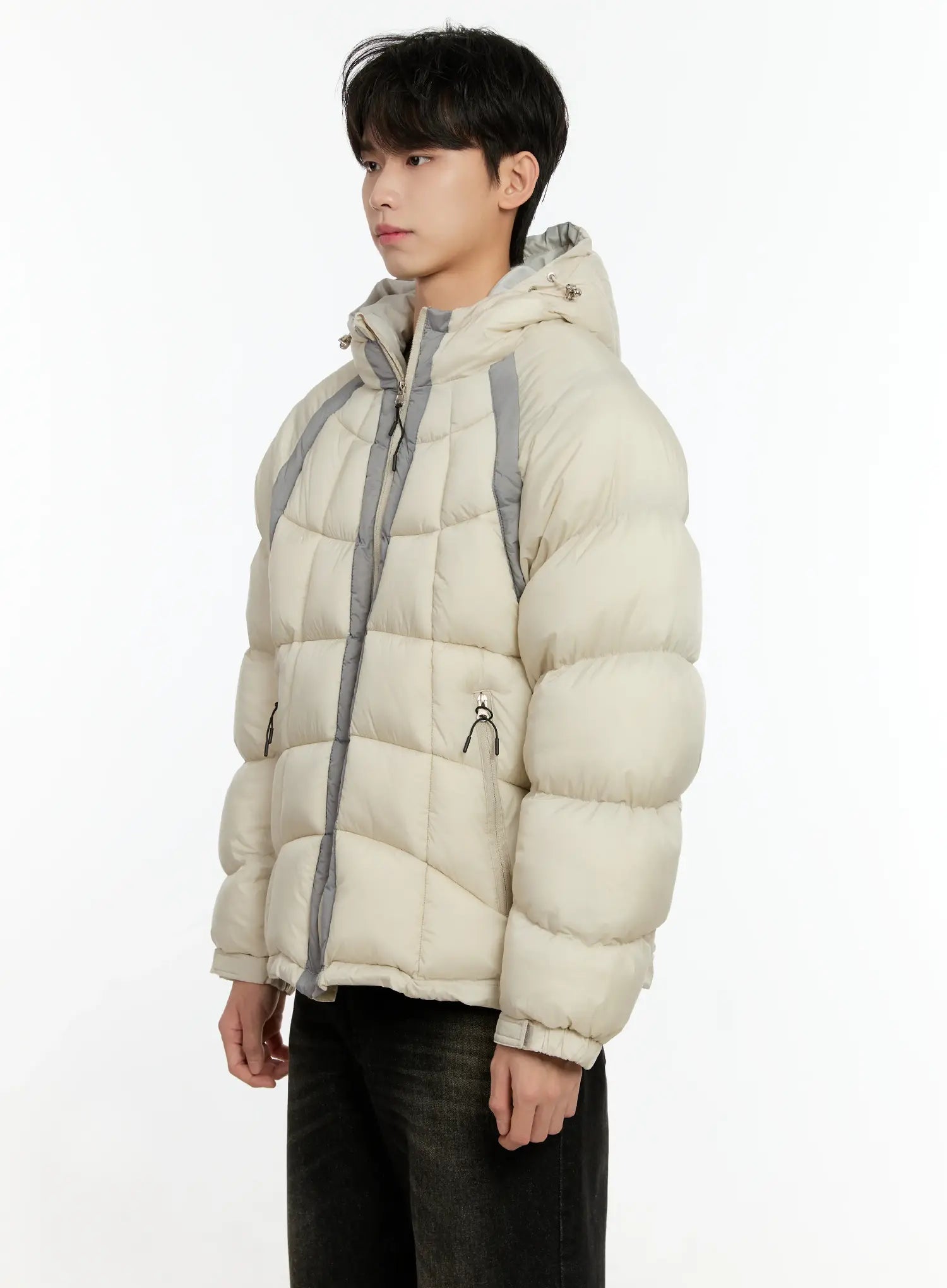 Men's Color Block Puffer Jacket (Light Beige) IO531