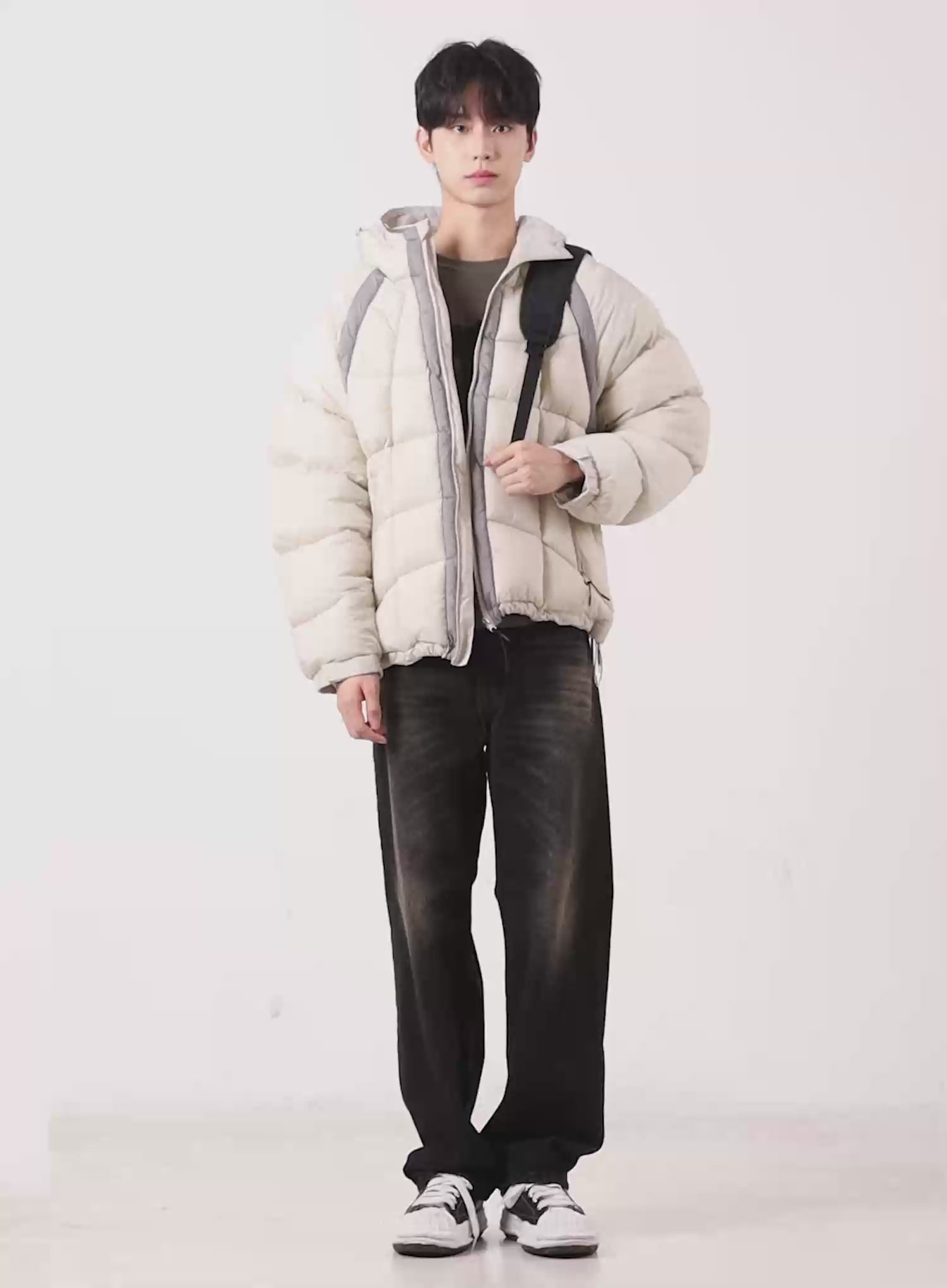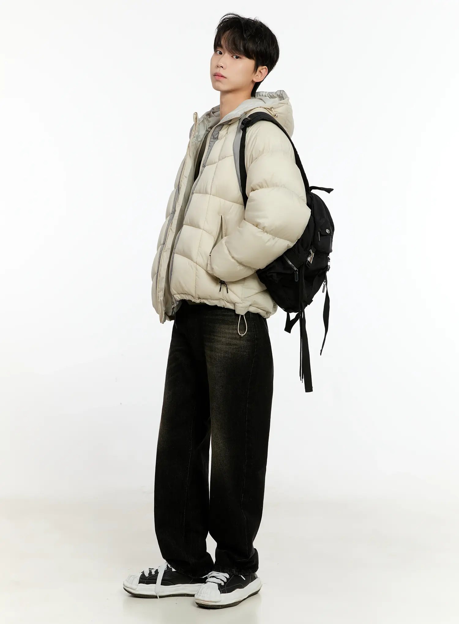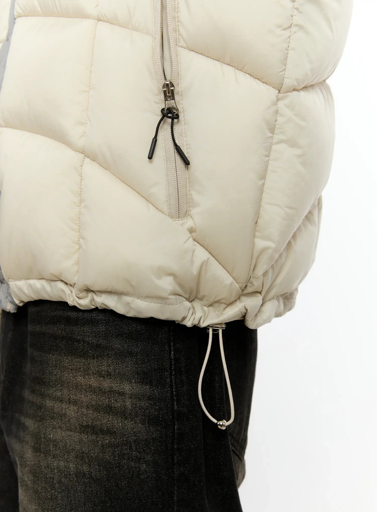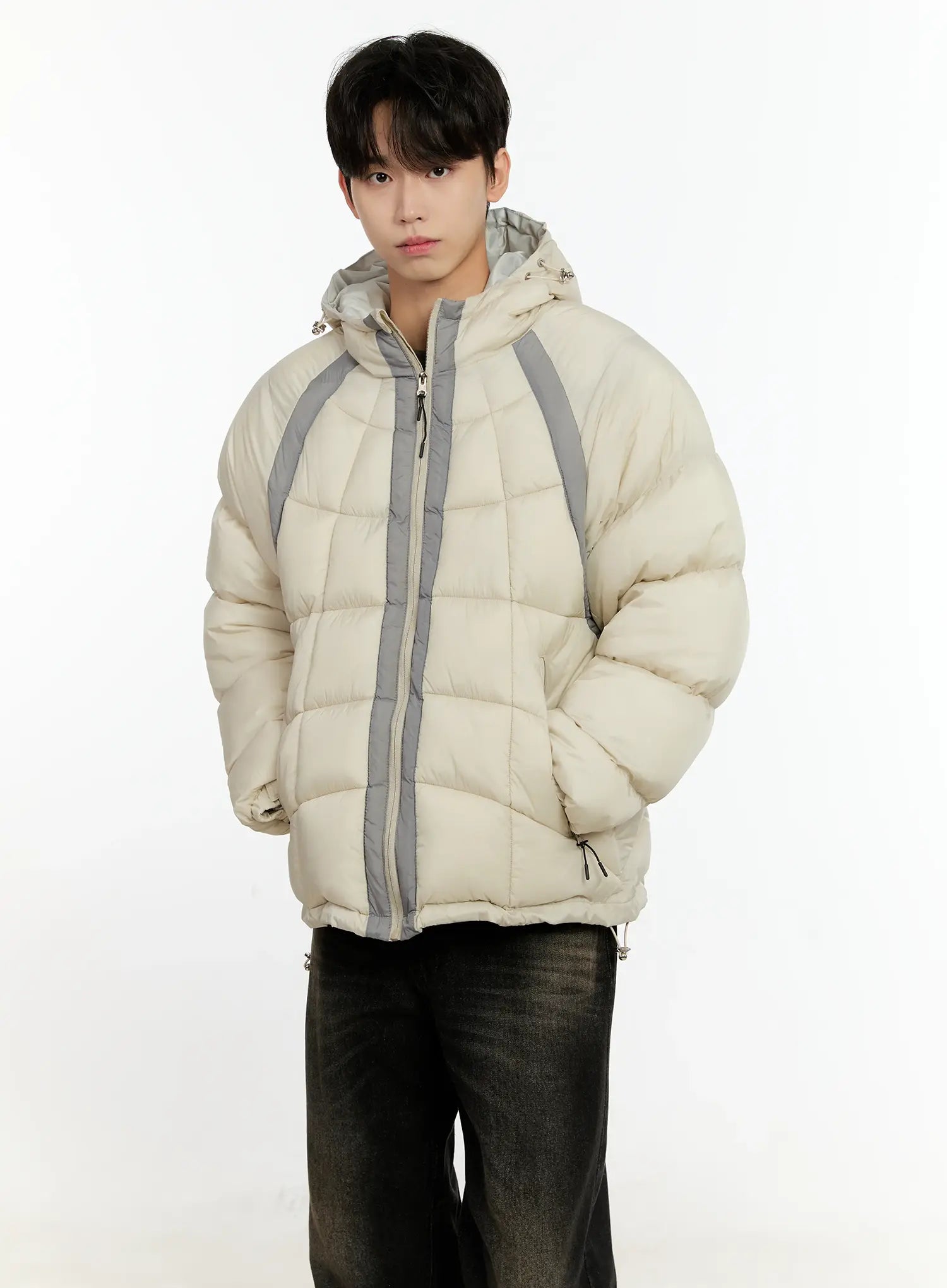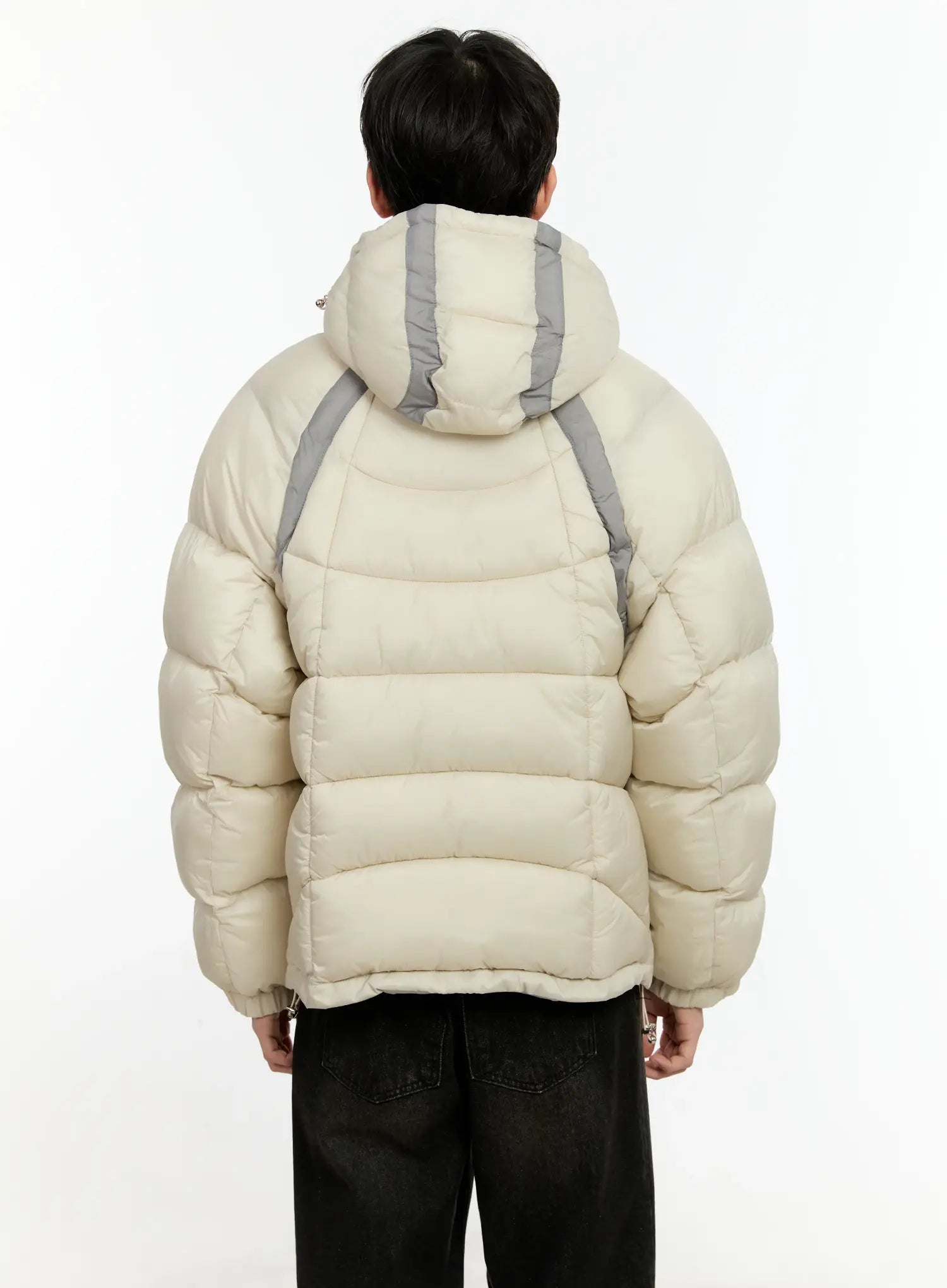 Men's Color Block Puffer Jacket (Light Beige) IO531