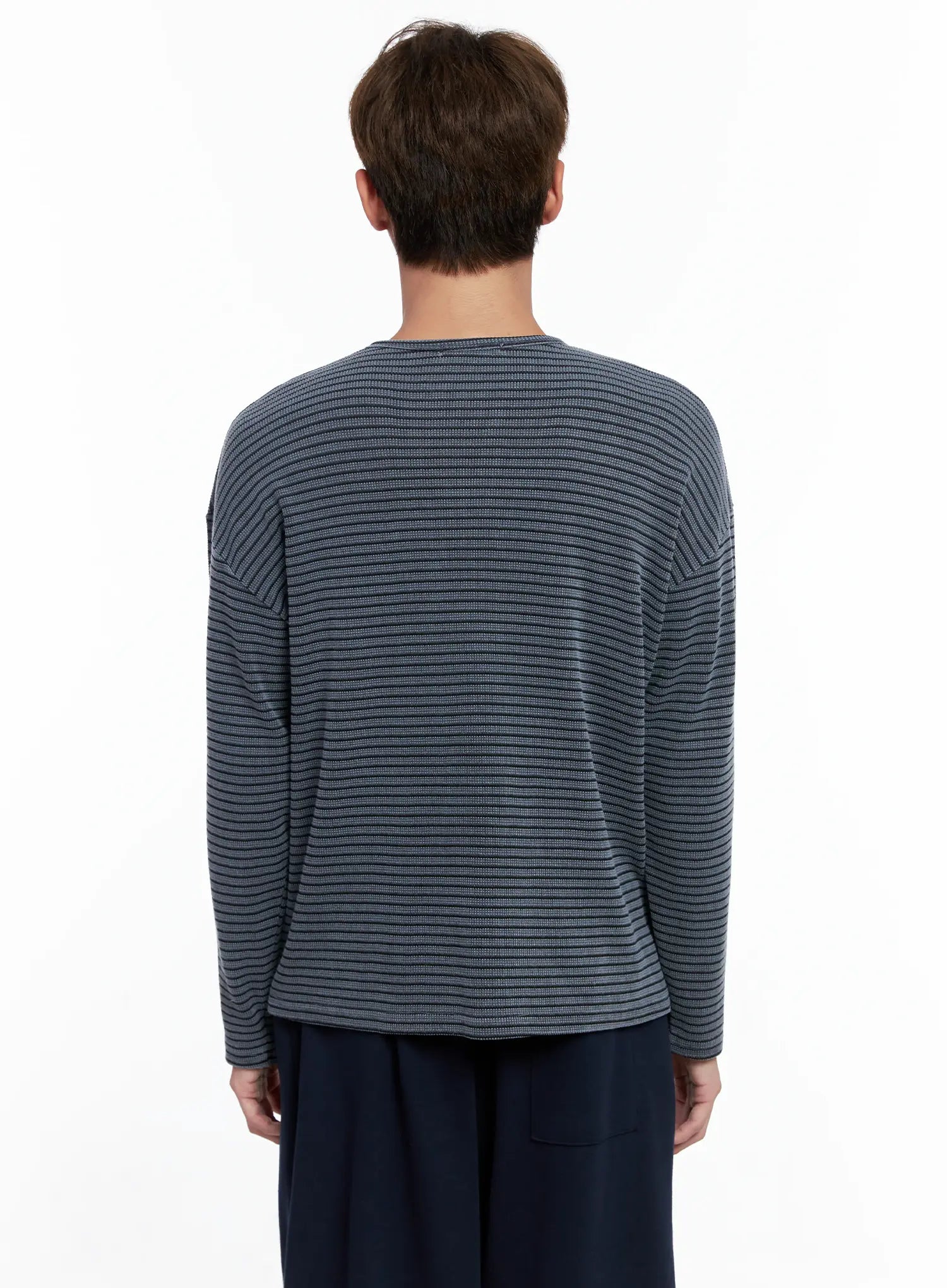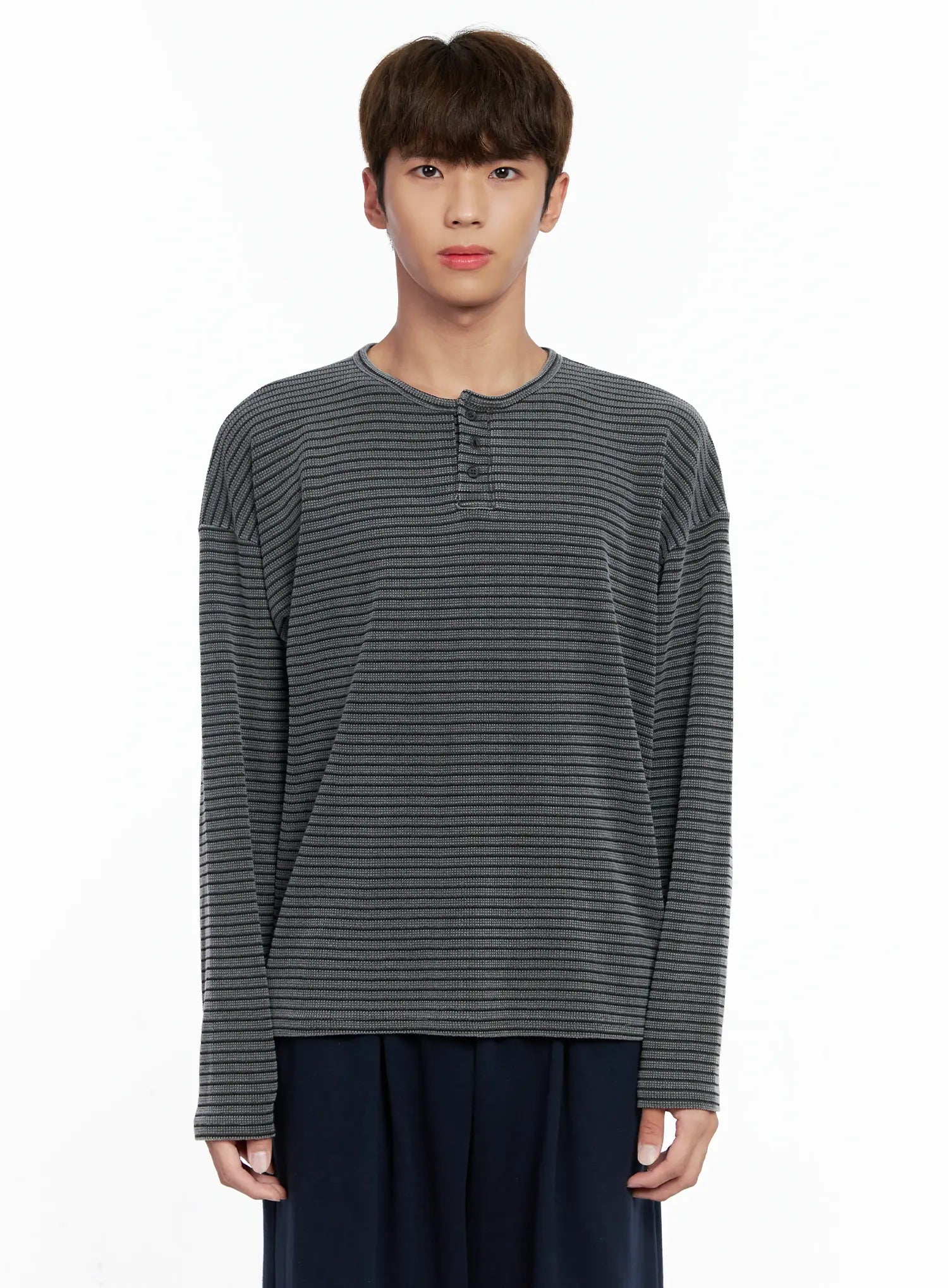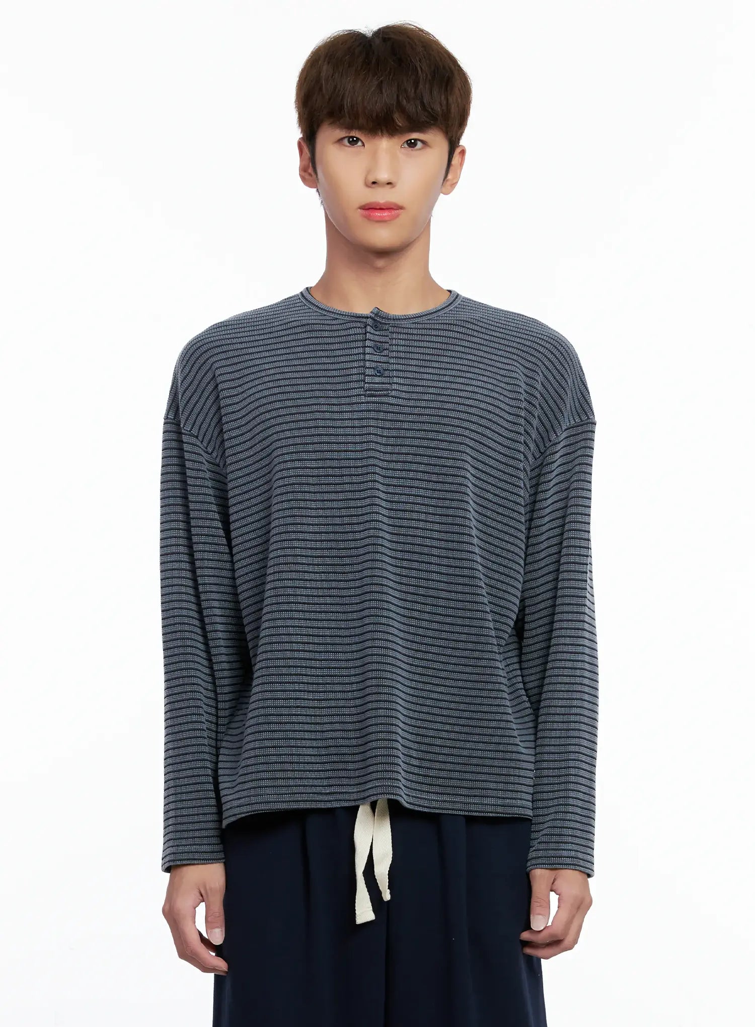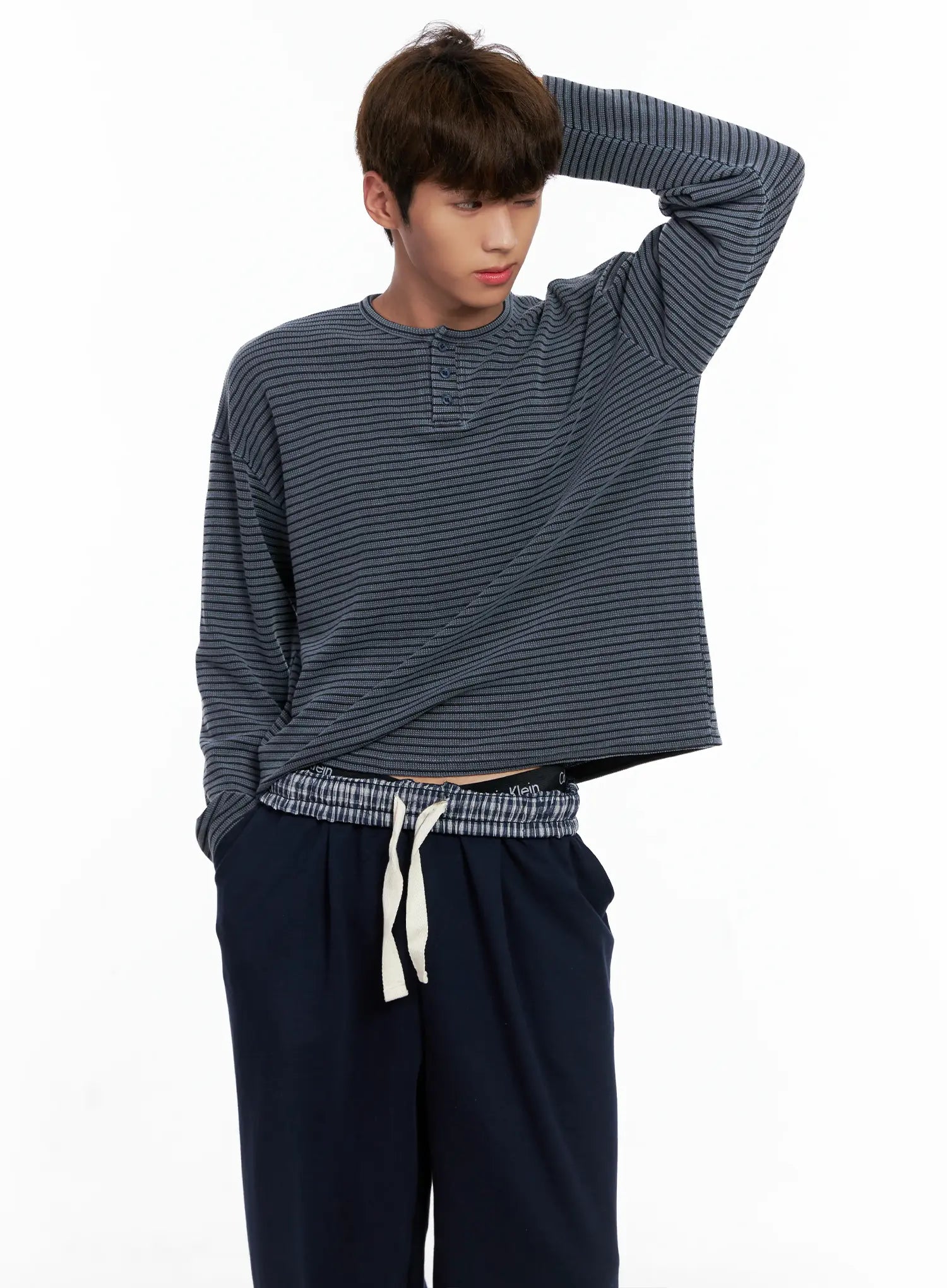 Men's Cropped Henley Long-Sleeve Tee IO502