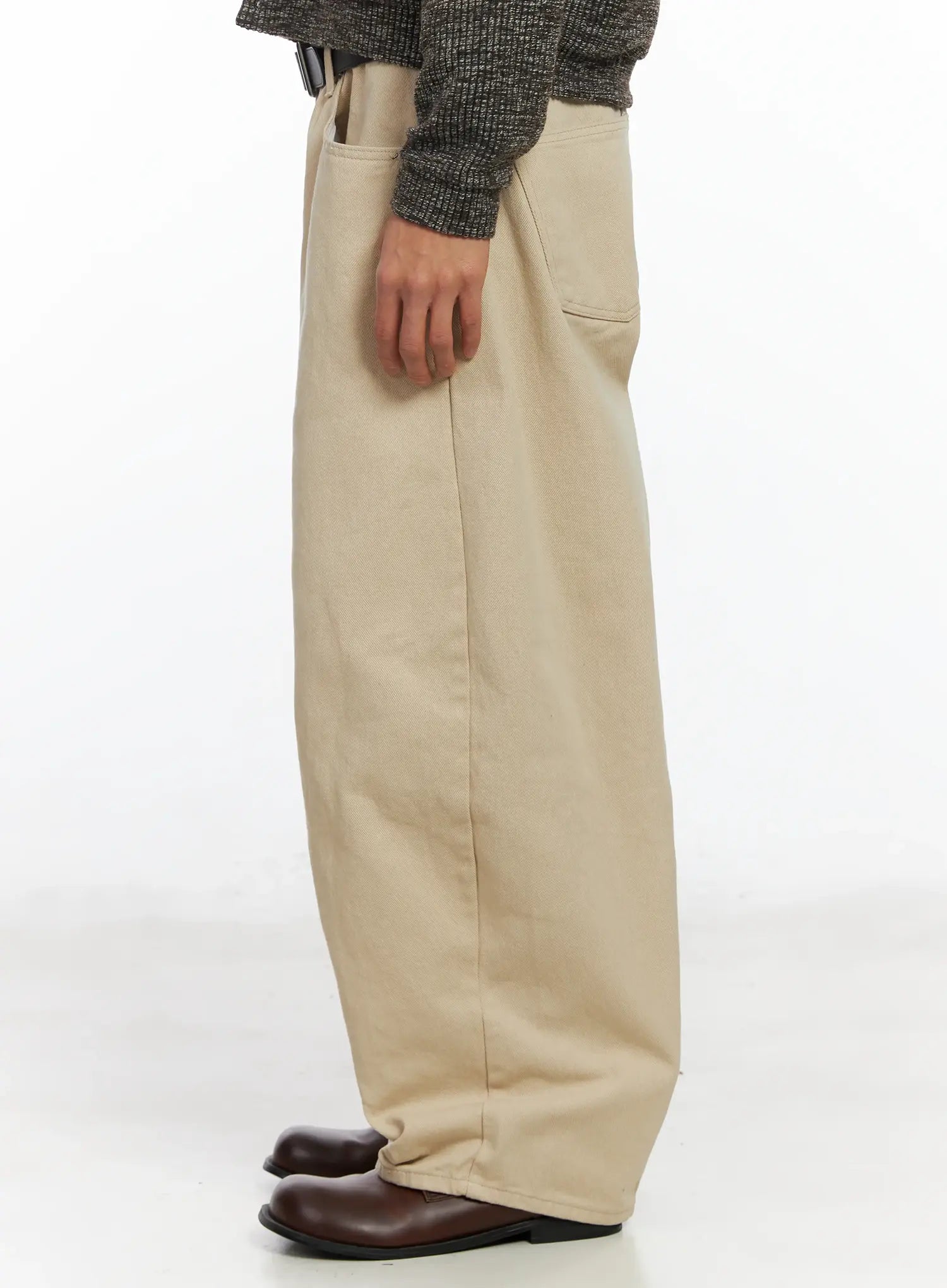 Model is wearing size L and the color Light beige.