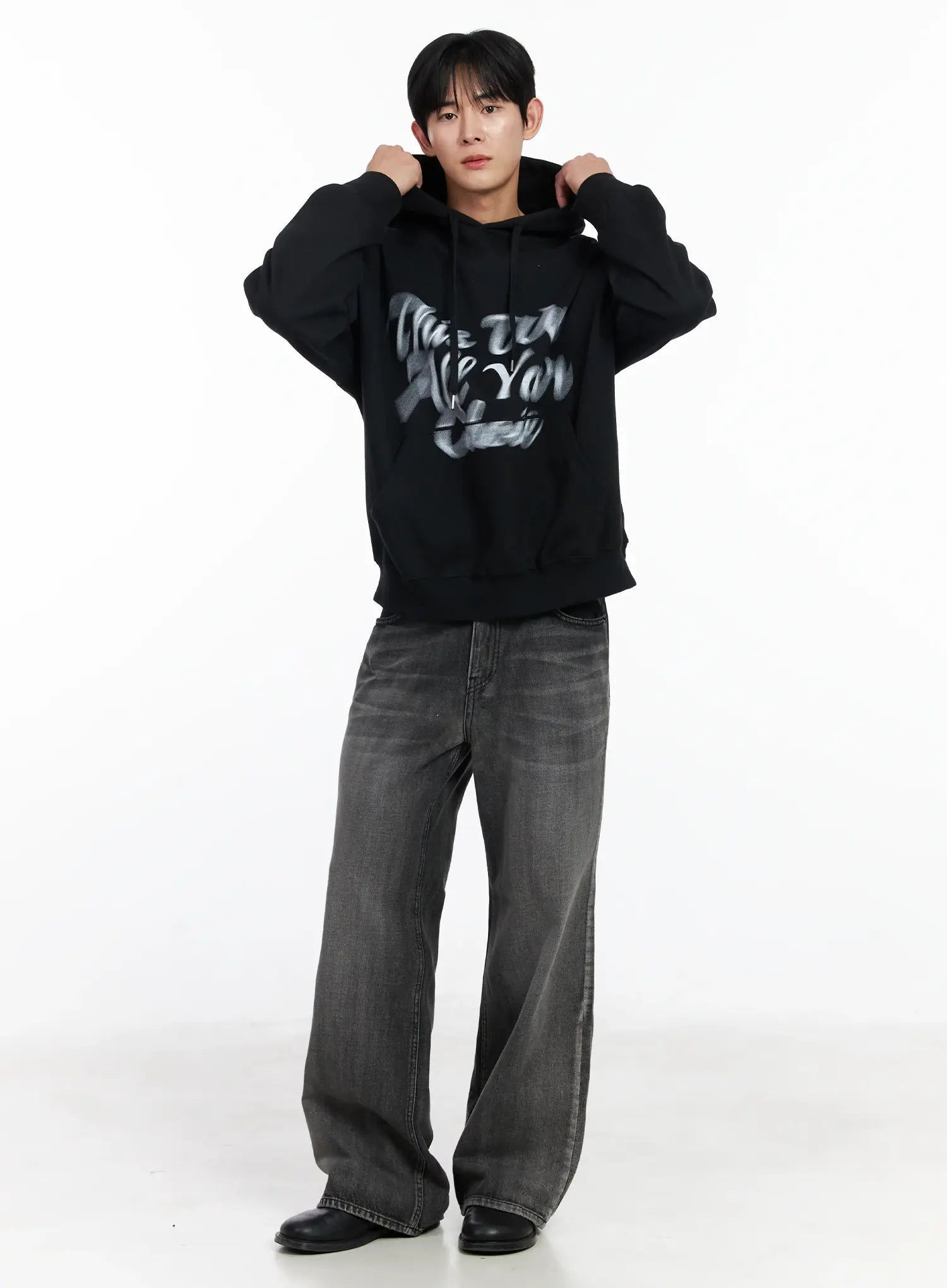 Men's Dark Gray Semi-Flared Jeans IJ521