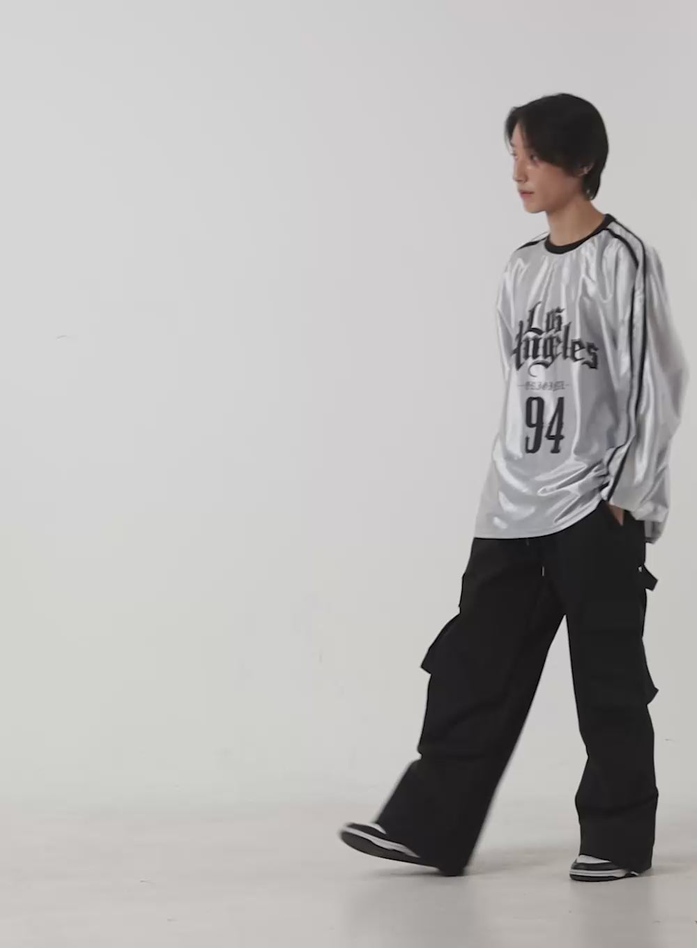 Model is wearing size M/L and the color Silver.