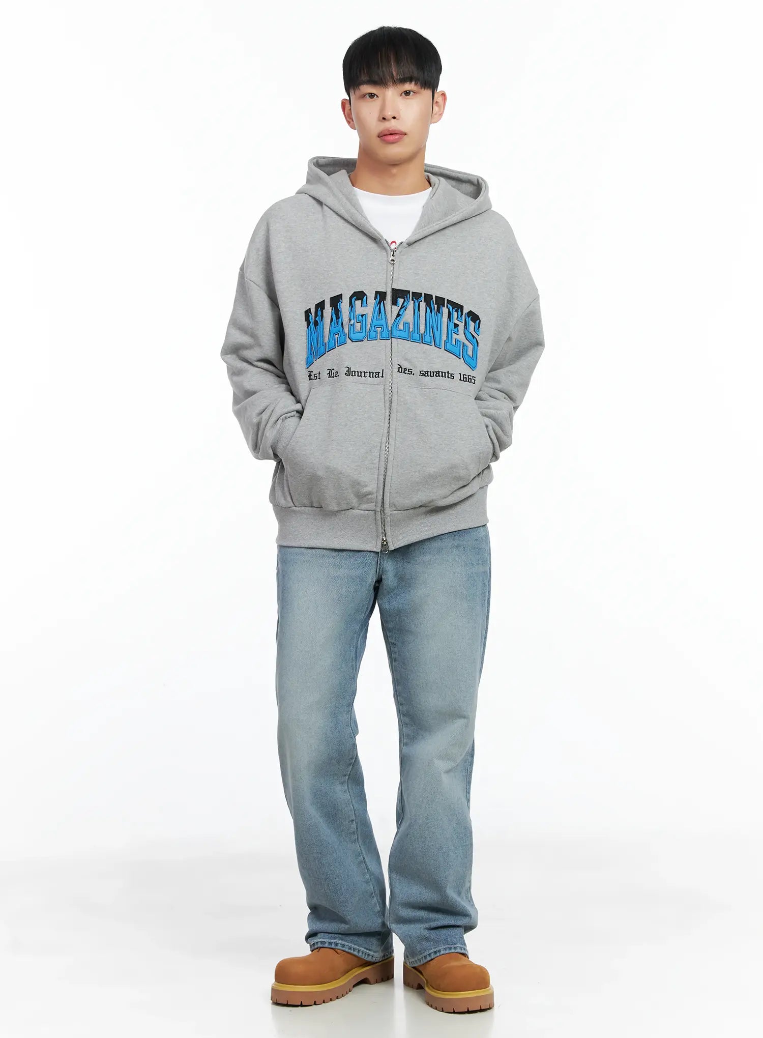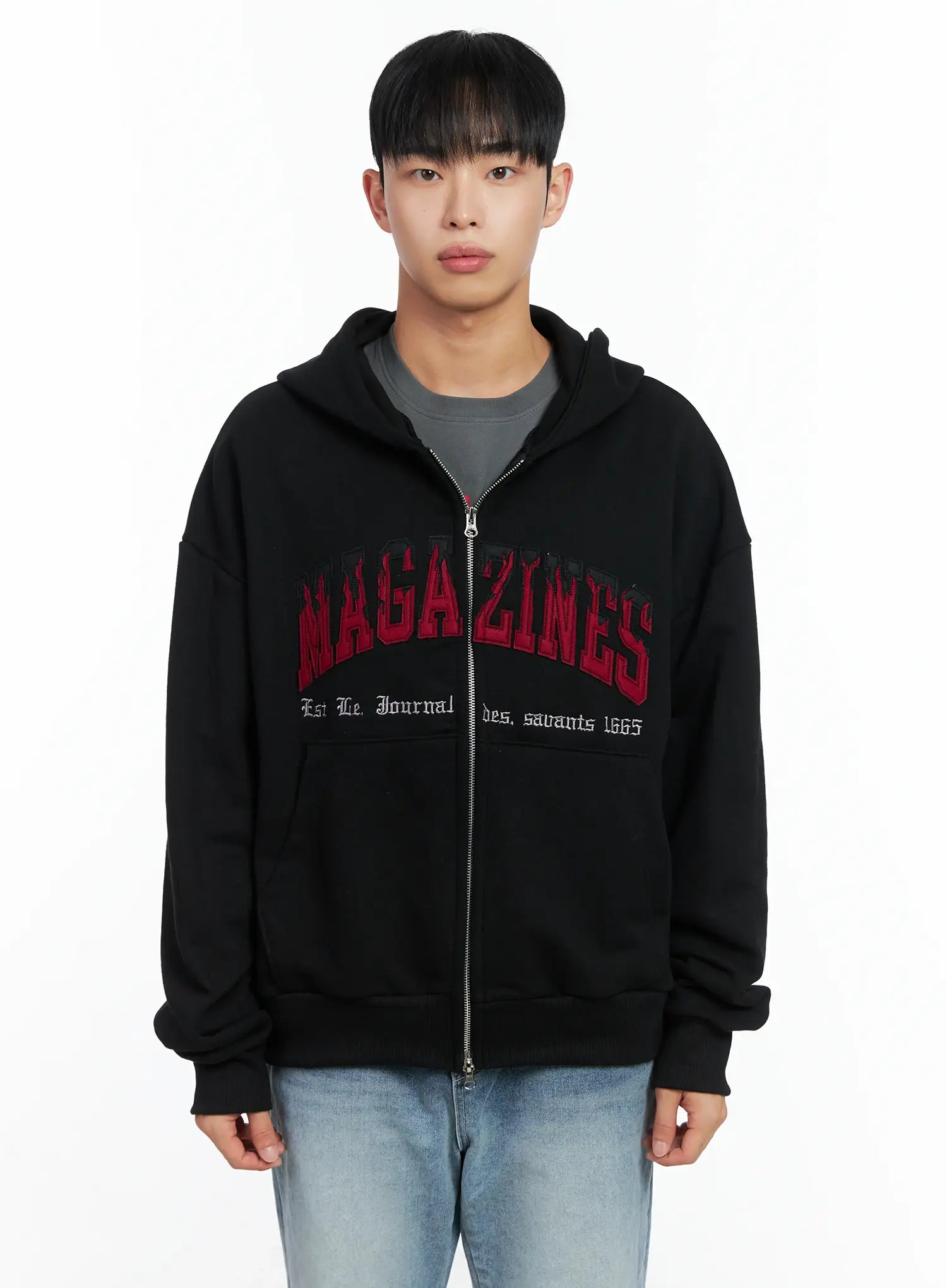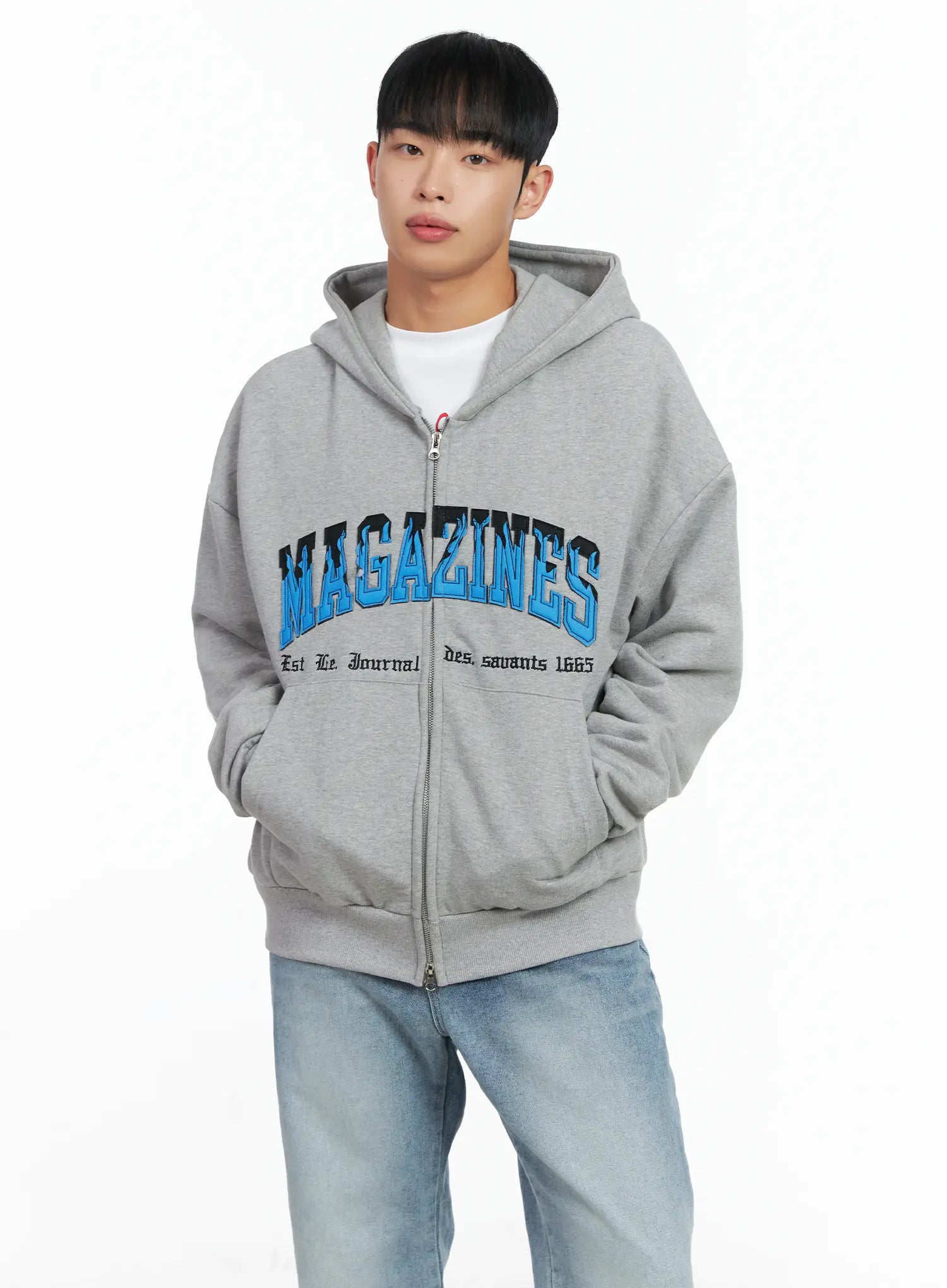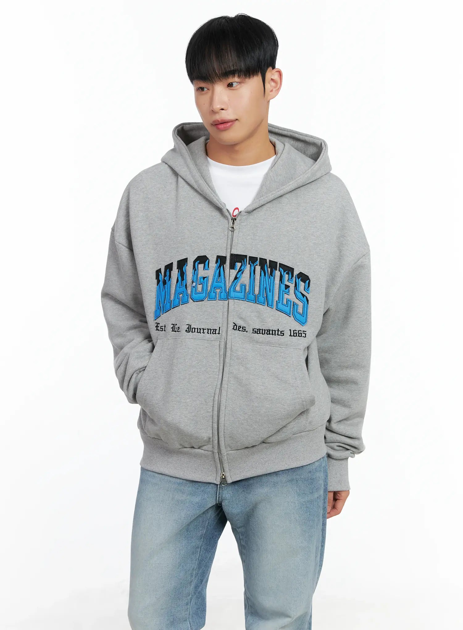 Men's Graphic Magazine Zip-Up Hoodie IN518