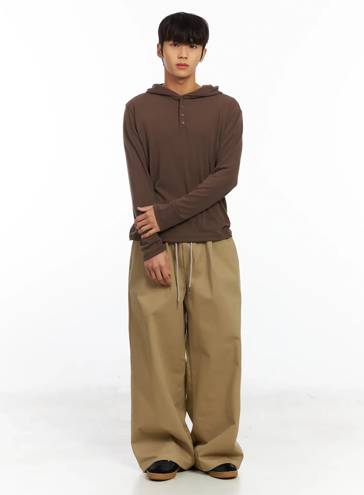 Model is wearing size M/L and the color Dark brown.