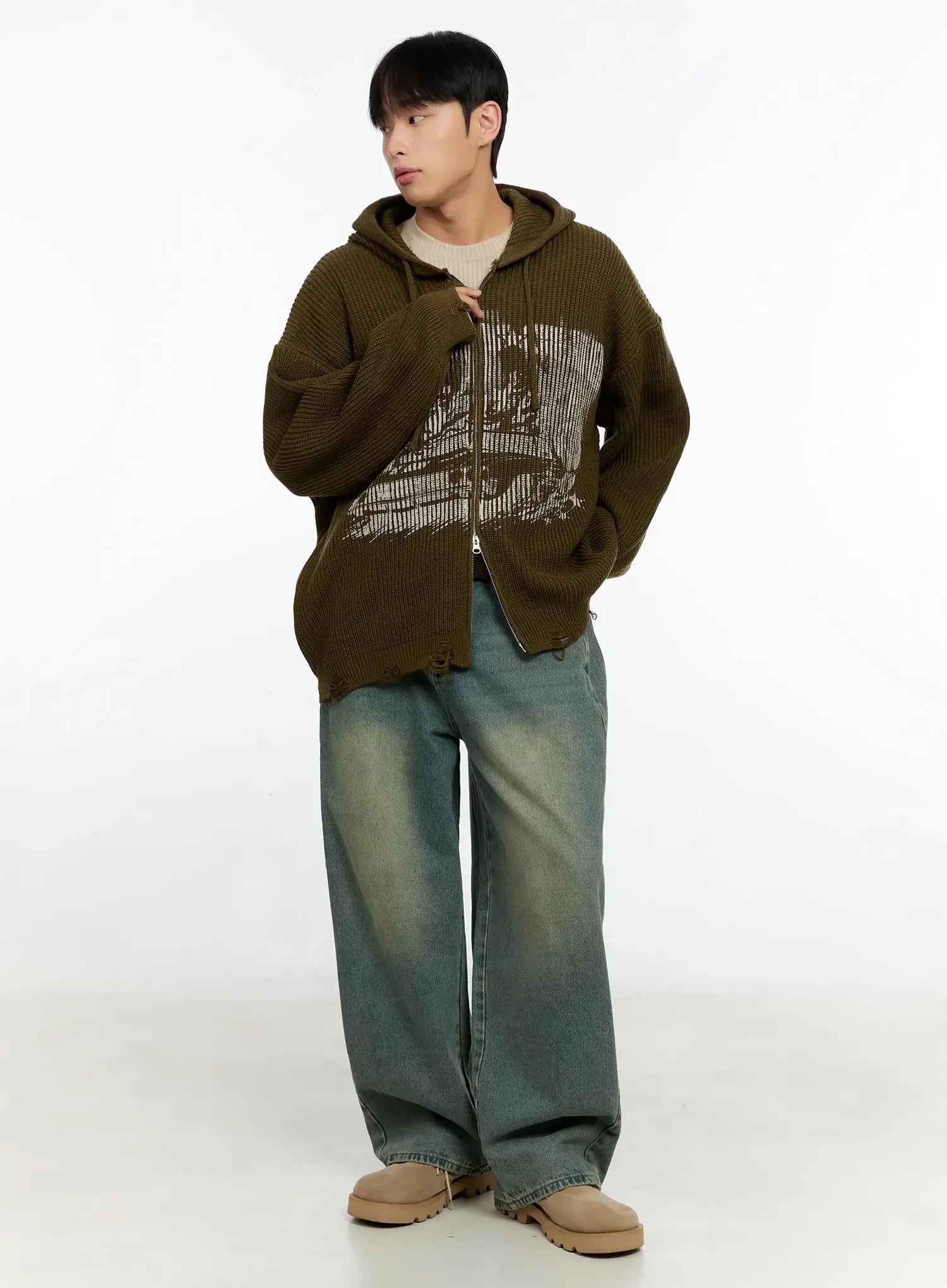 Men's Laser-Printed Knit Hooded Zip-Up IN525