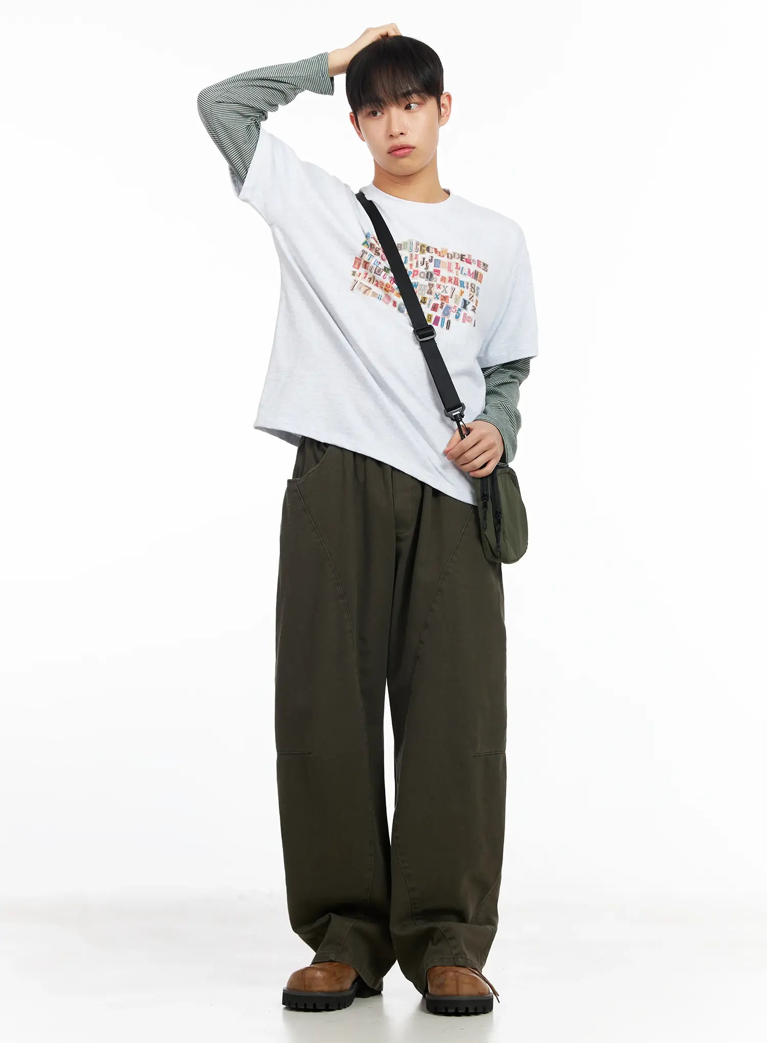 Men's Layered Graphic Striped Long Sleeve Tee IM511
