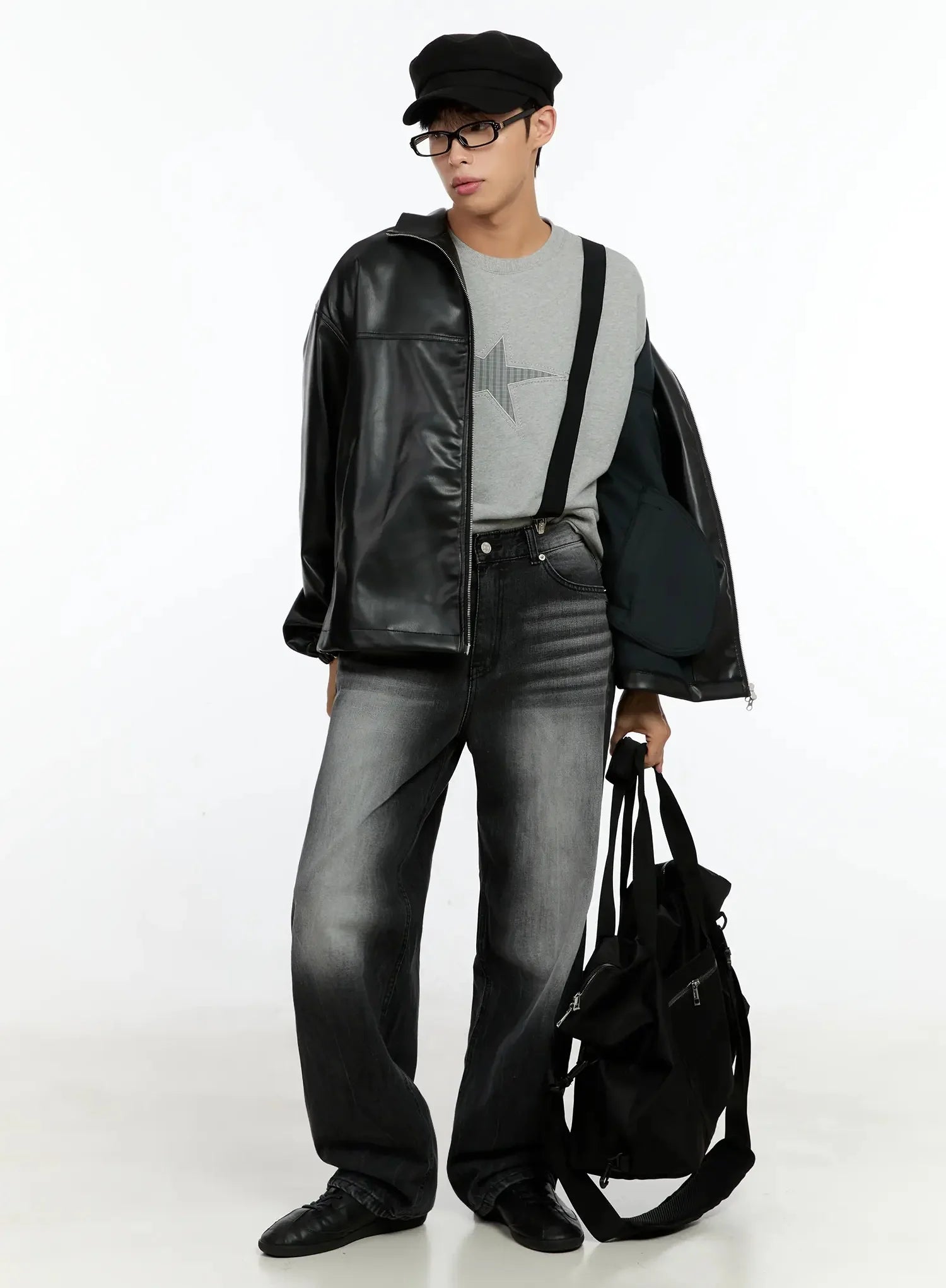 Men's Oversized Faux Leather Jacket IN506
