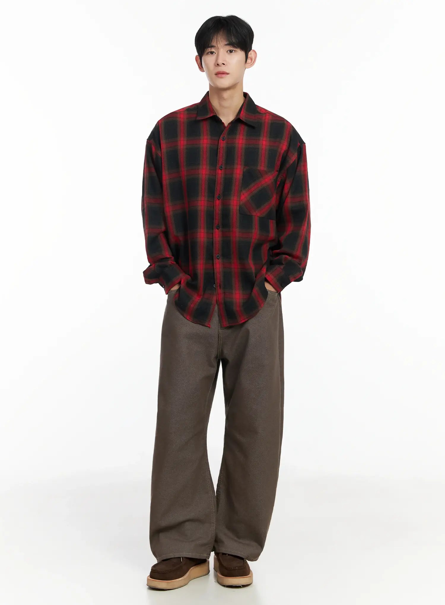Men's Plaid Button-Up Shirt IF517