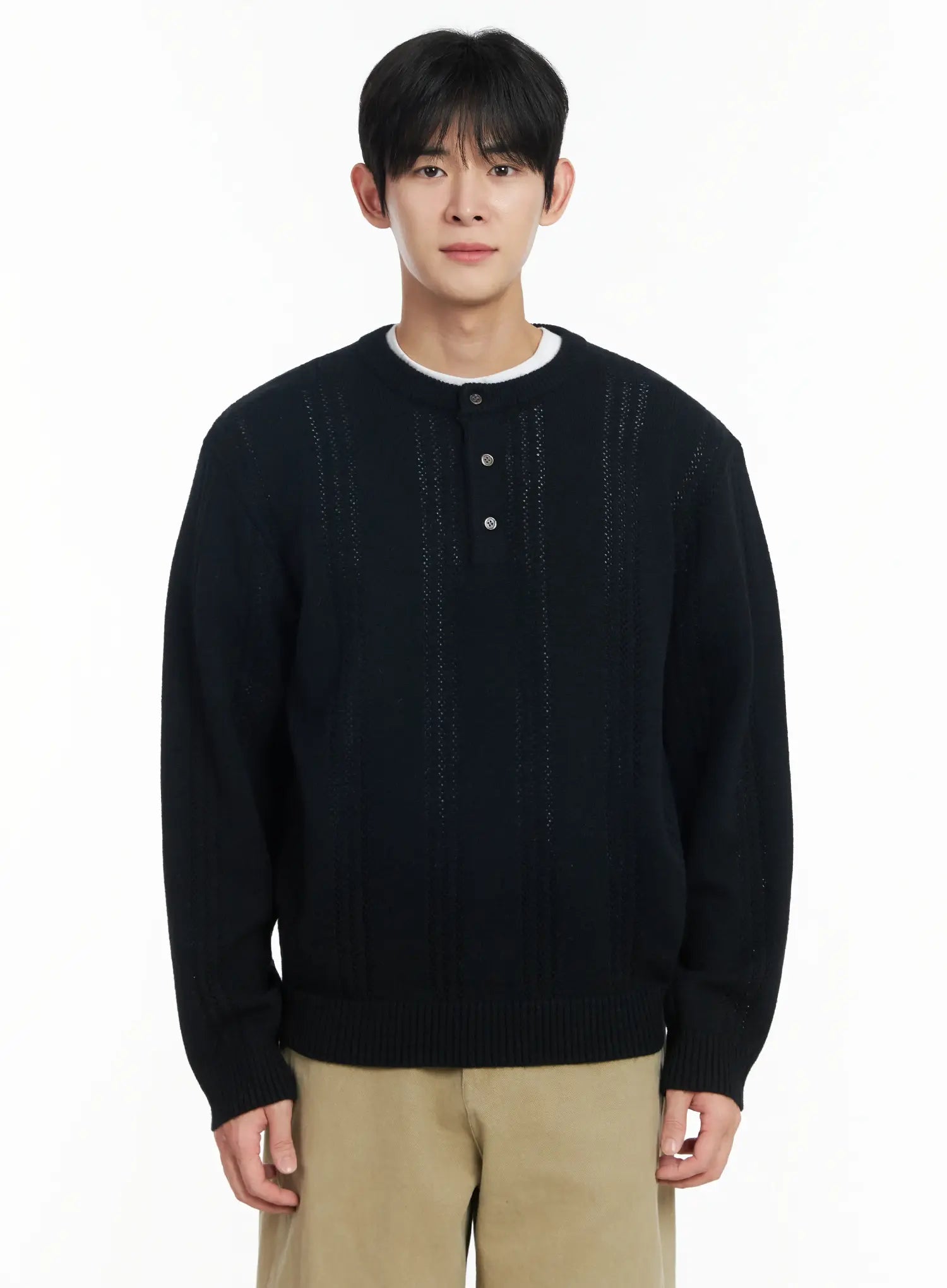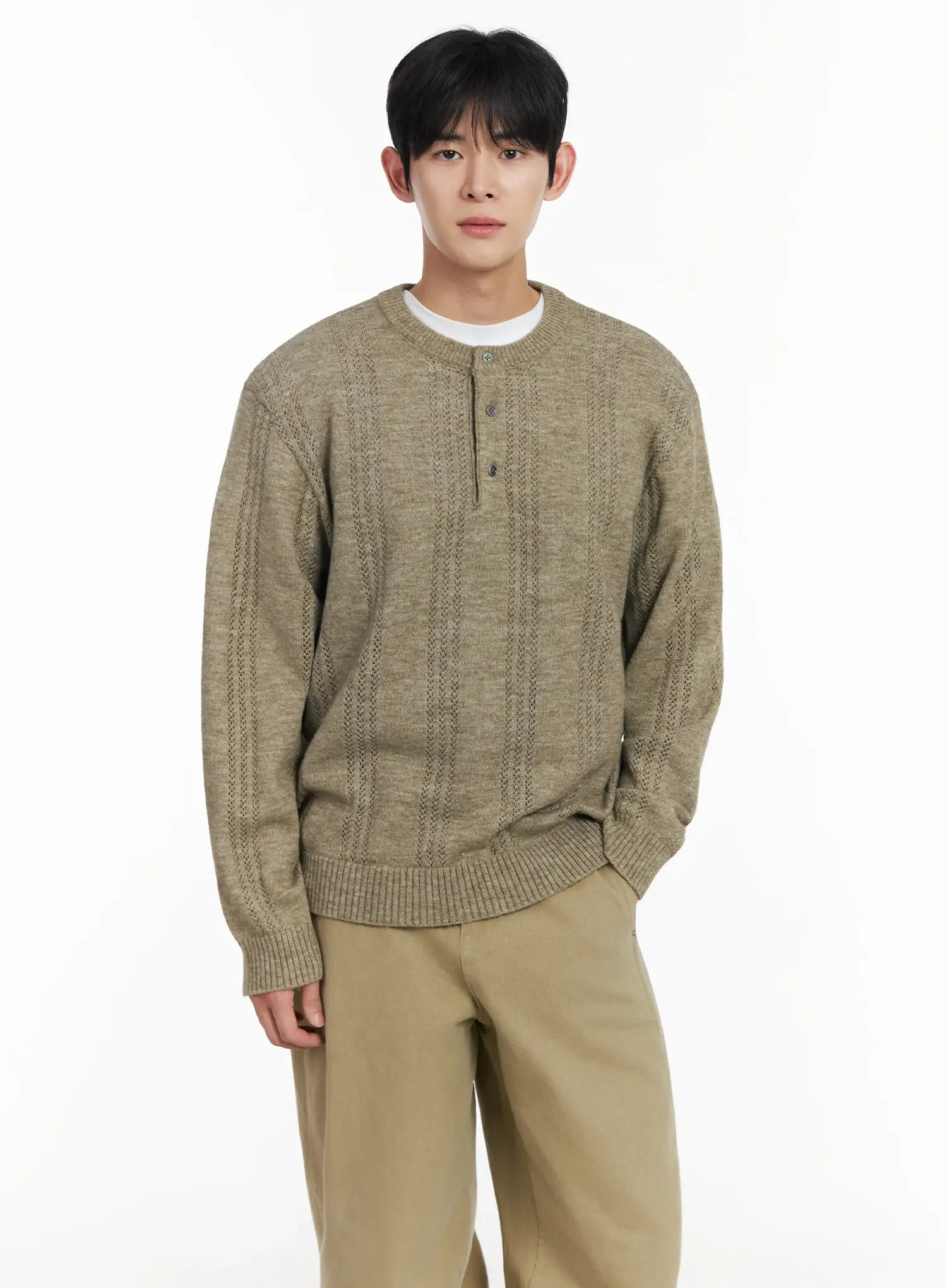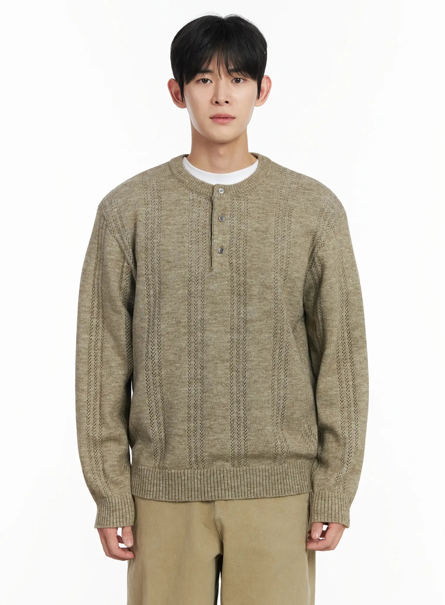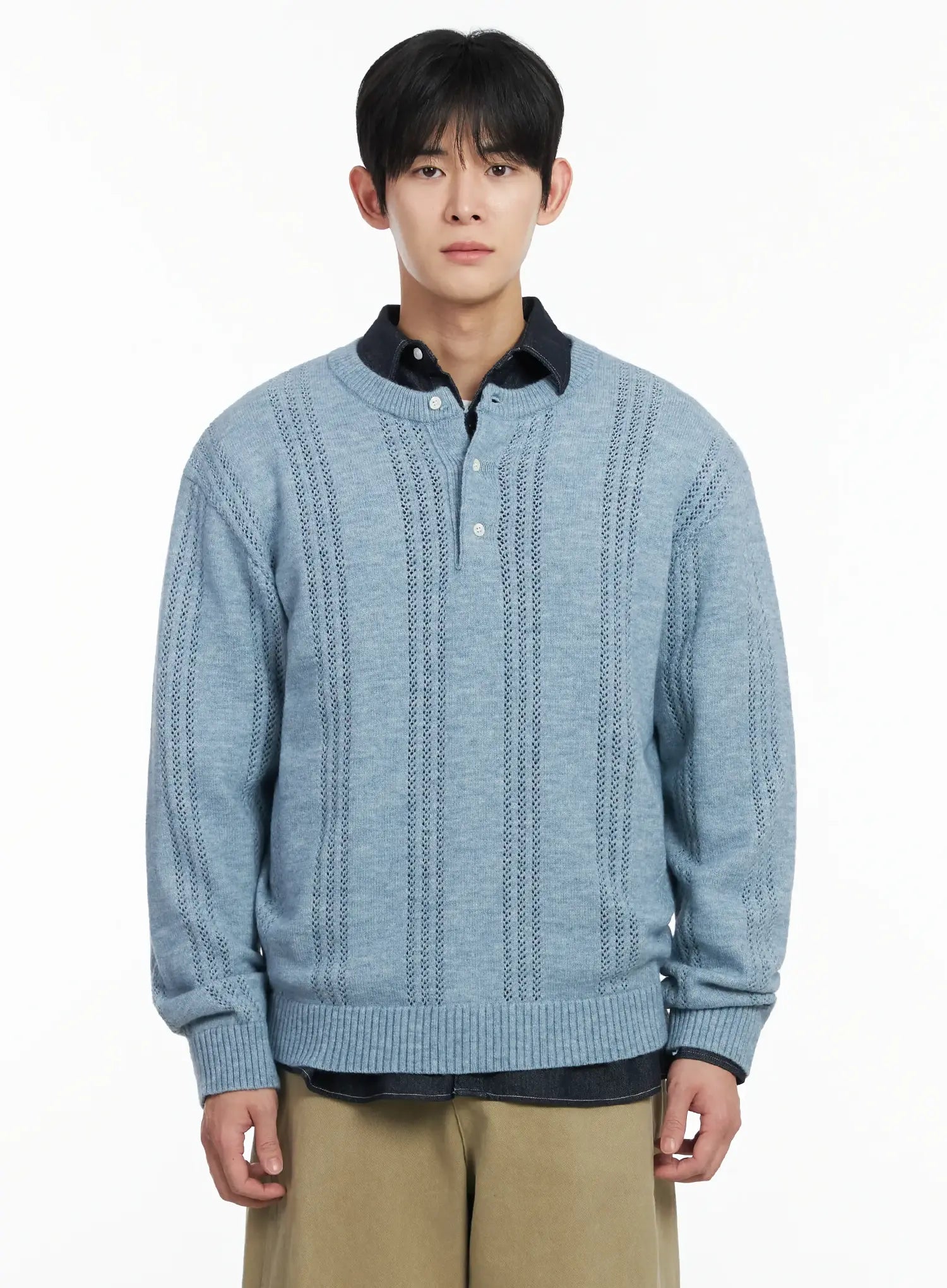 Men's Pointelle Henley Knit Sweater IF517