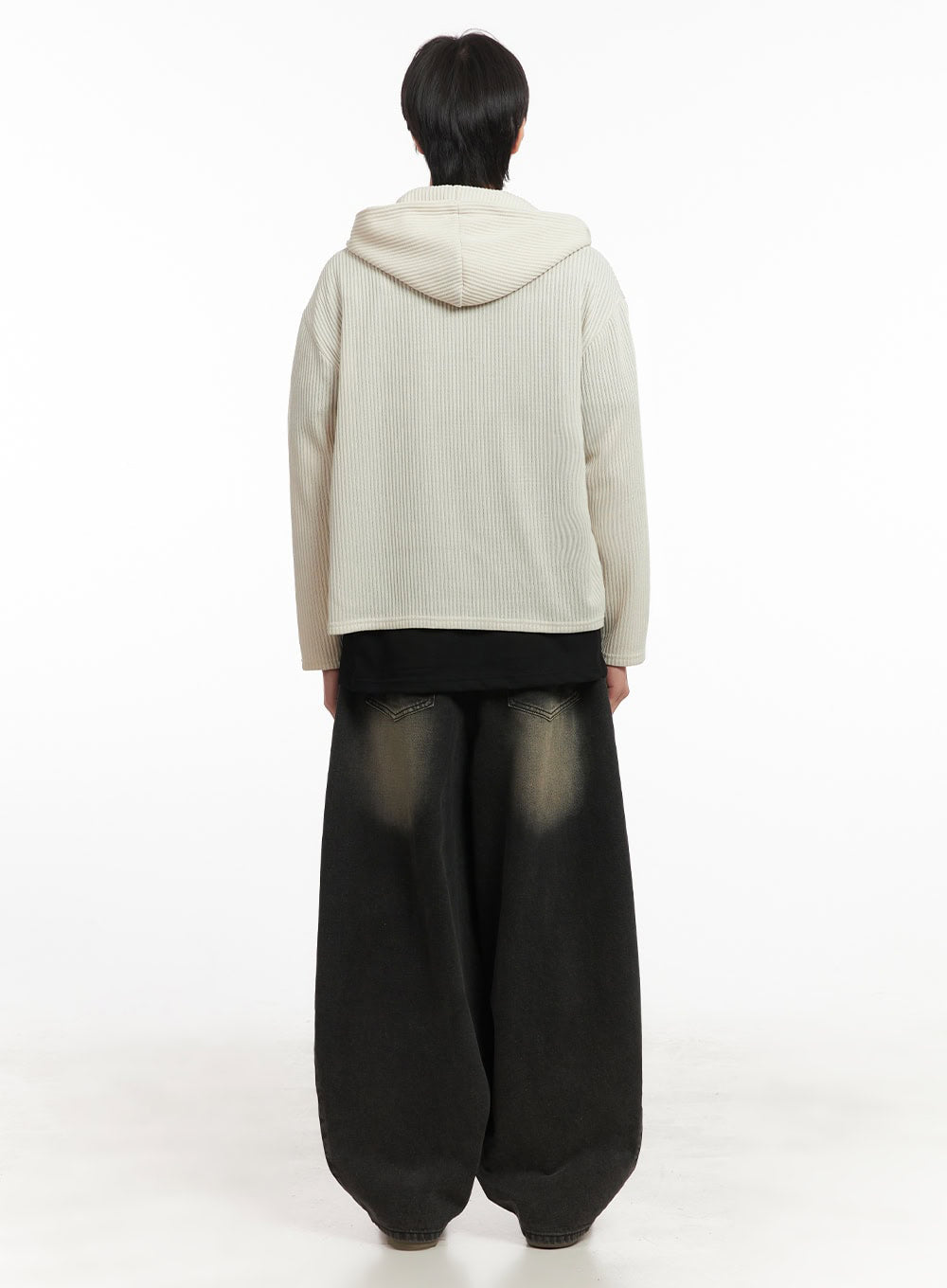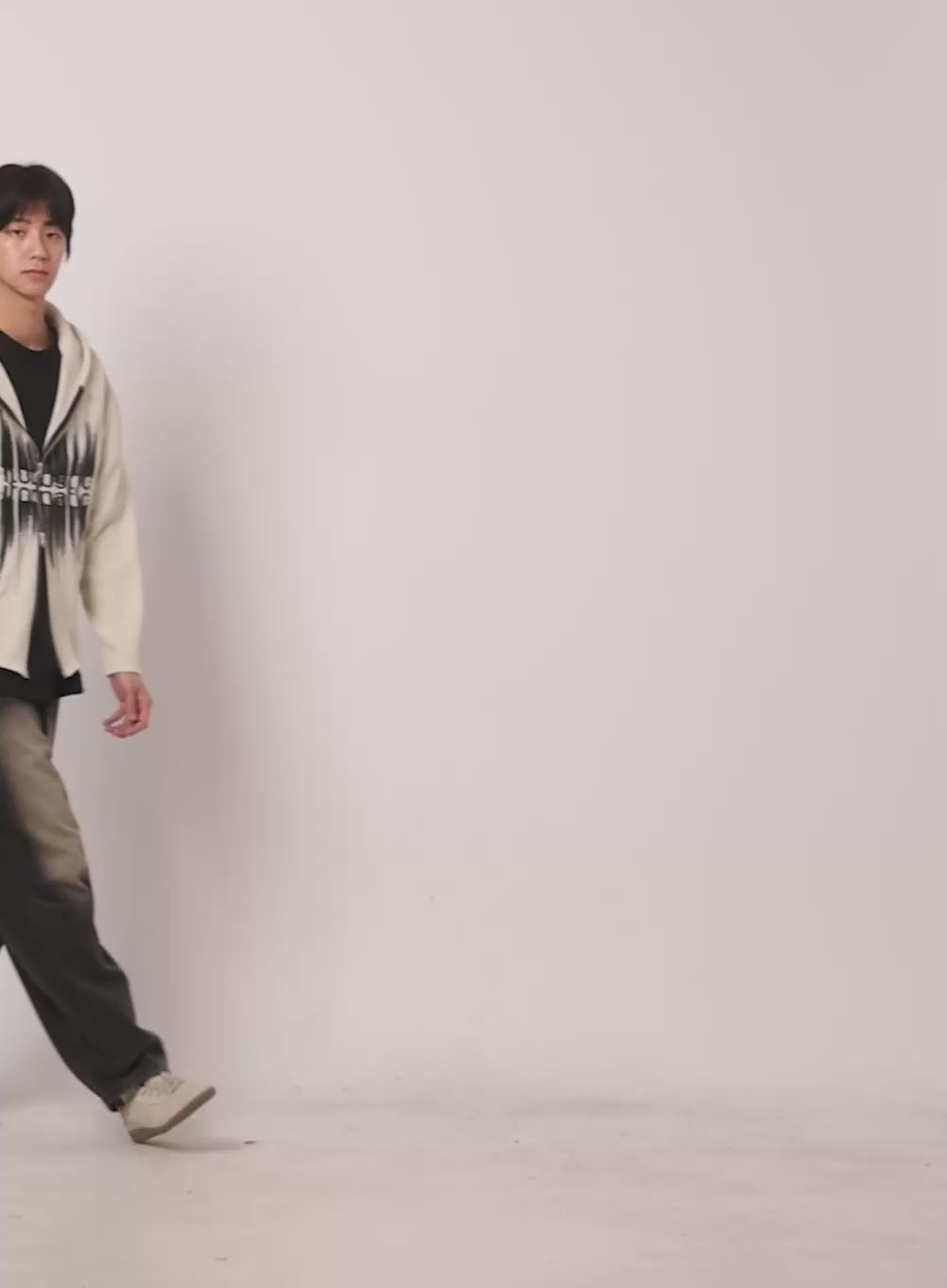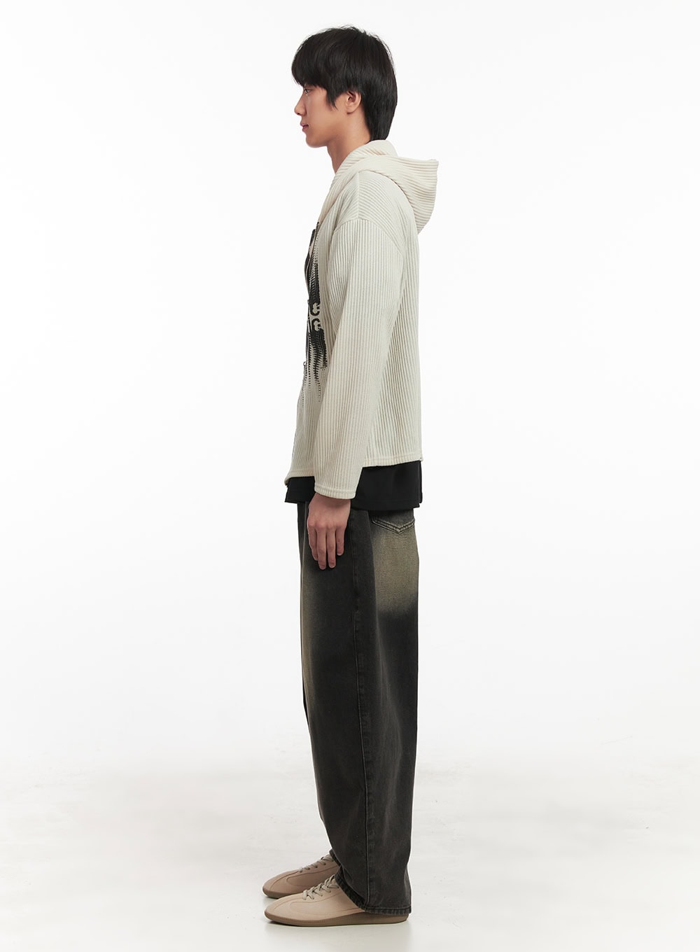 Men's Ribbed Knit Graphic Hooded Jacket IA511