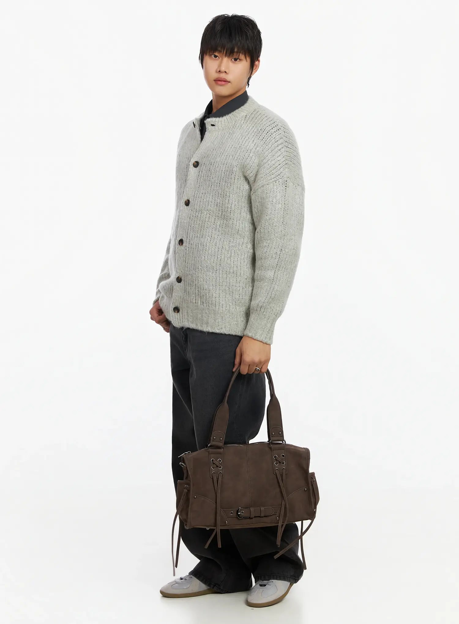 Men's Round Neck Button-Up Cardigan IF503