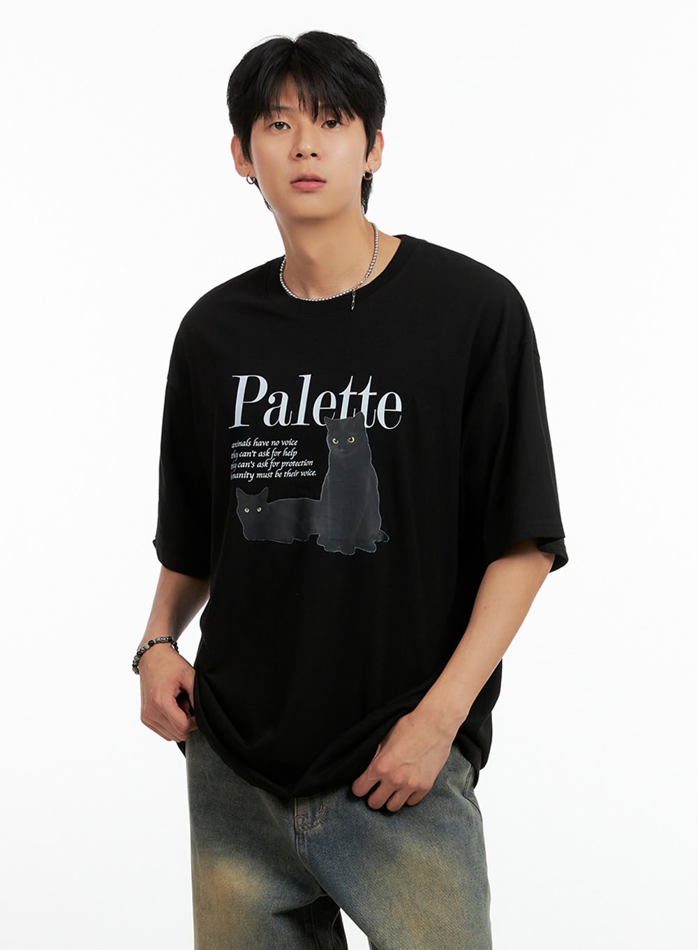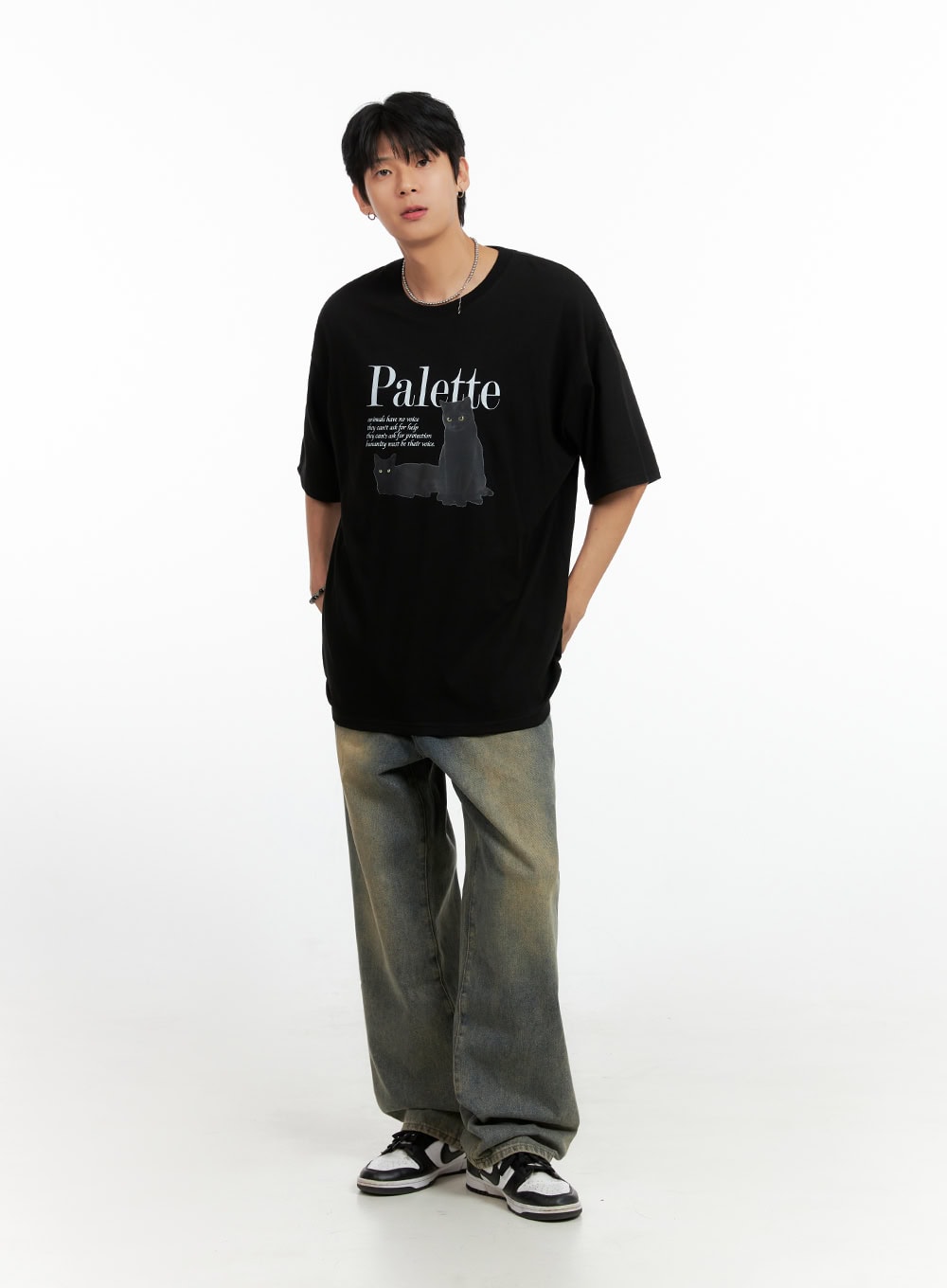 Men's Round Neck Graphic T-Shirt (Black) IG402