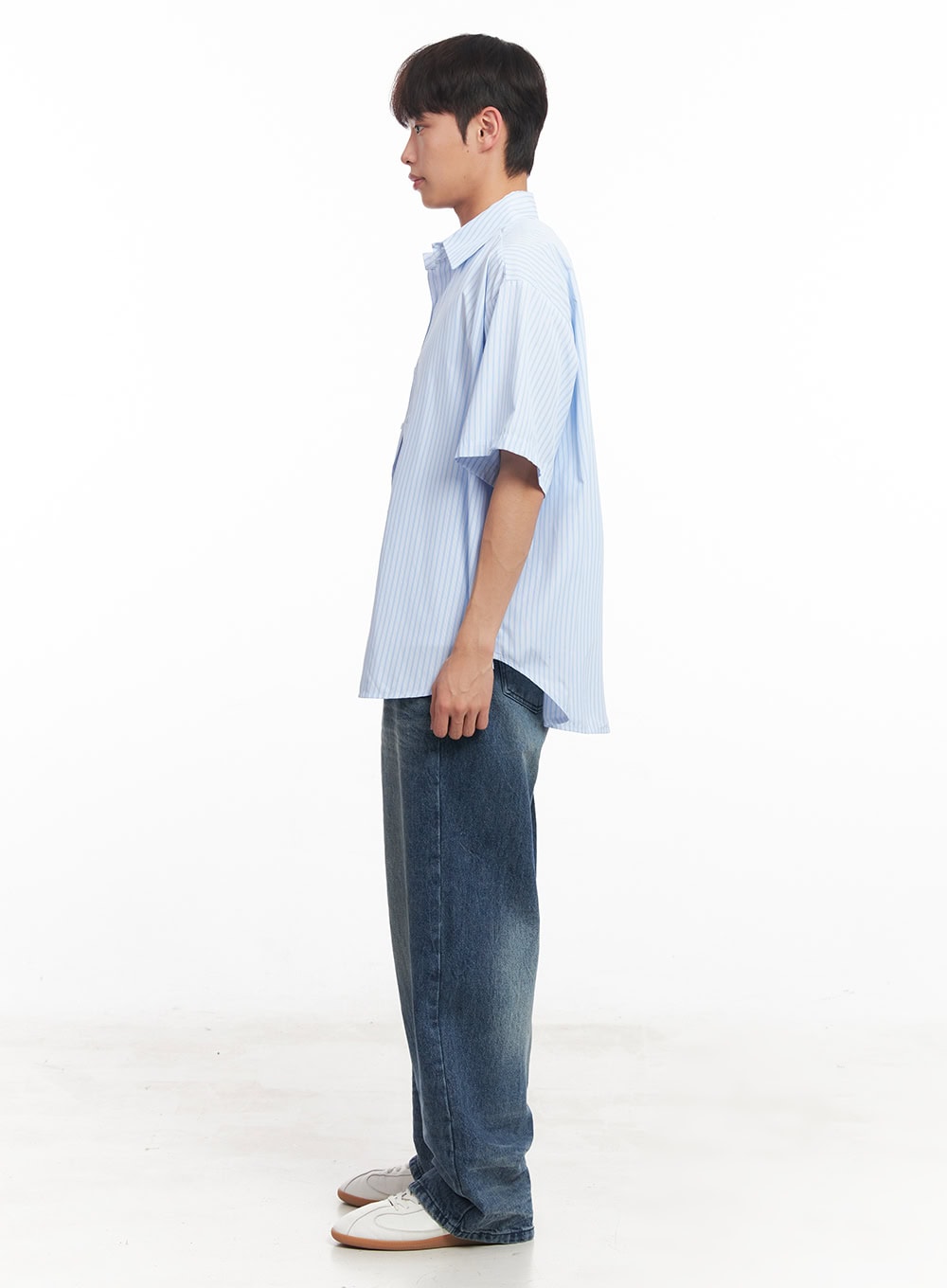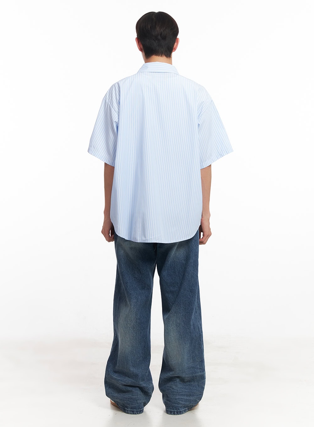 Men's Short Sleeve Buttoned Striped Shirt IA521