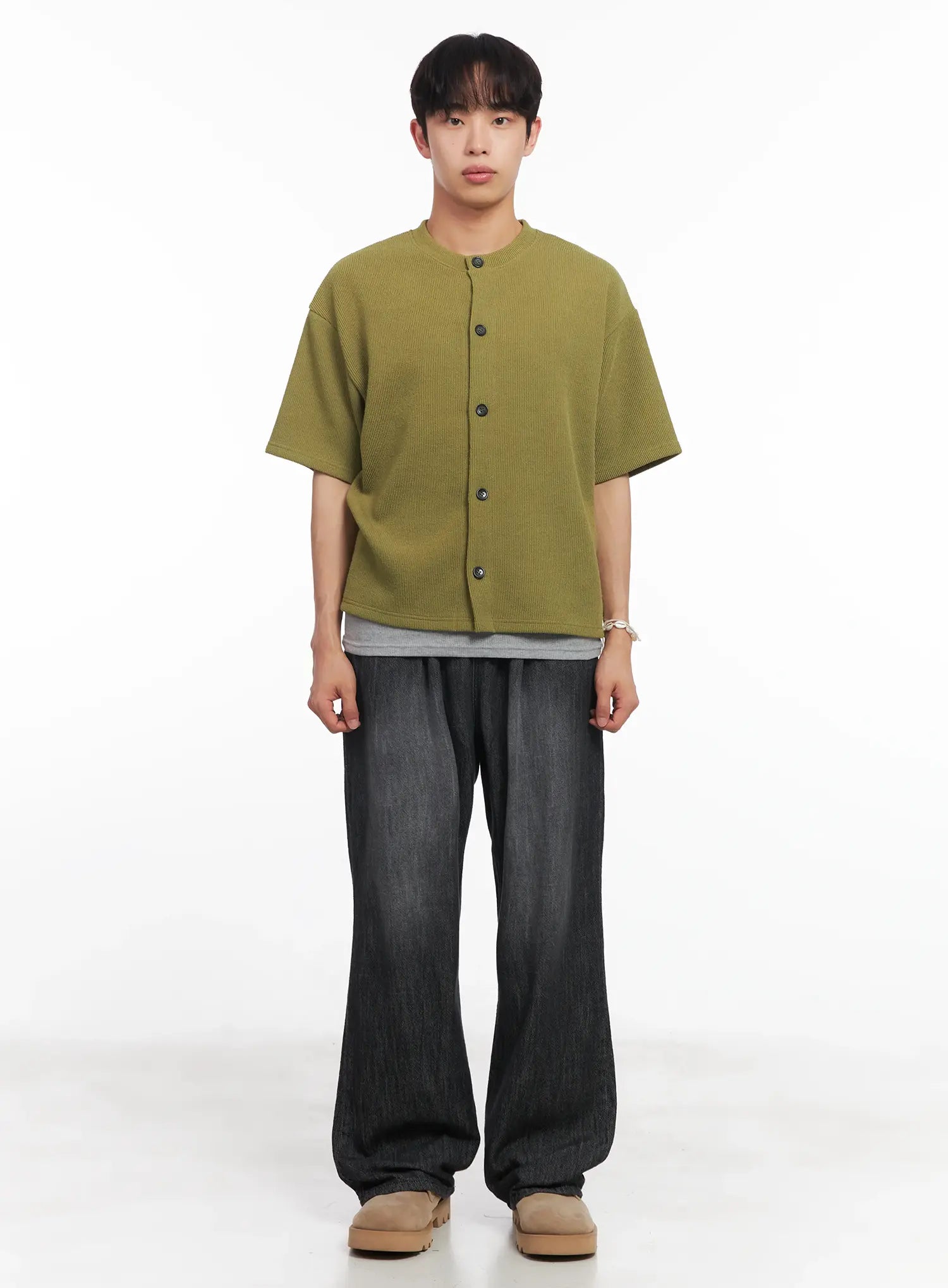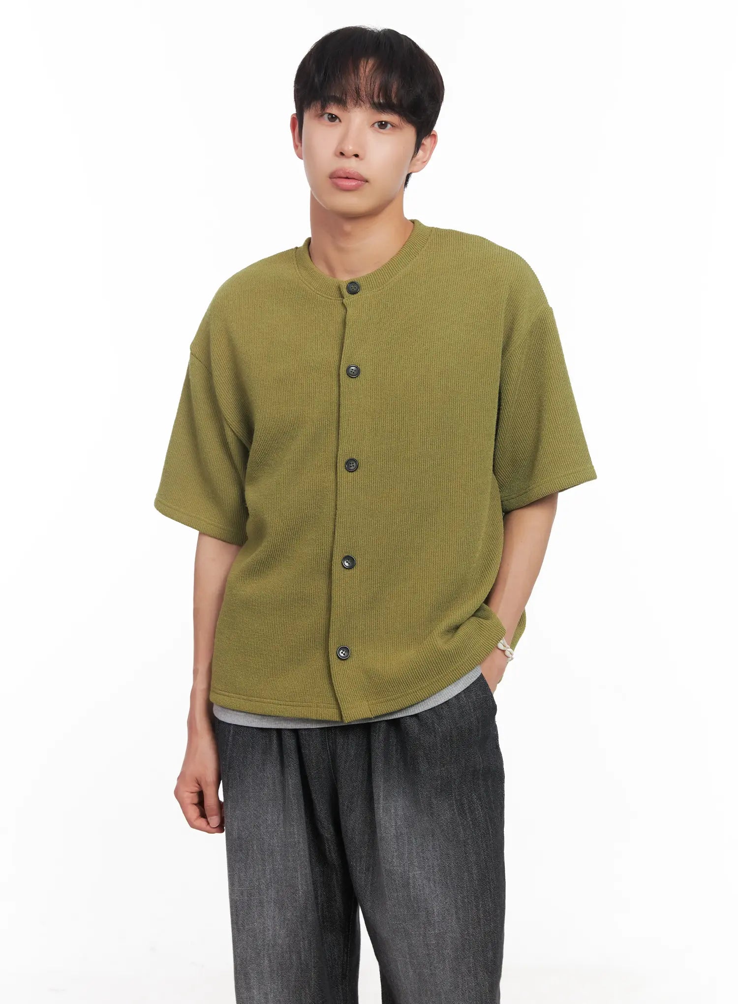 Men's Short-Sleeve Buttoned Sweater IU518