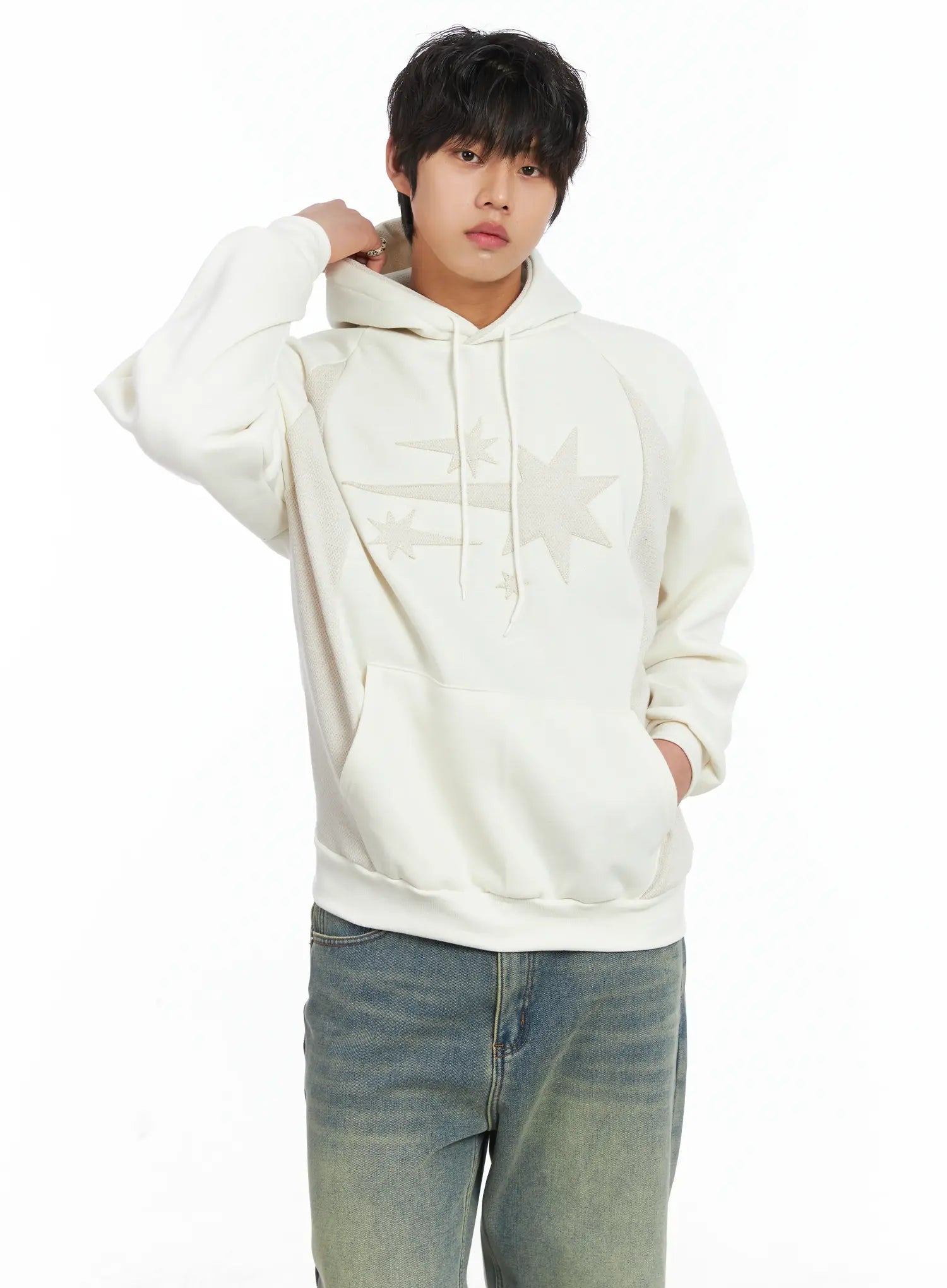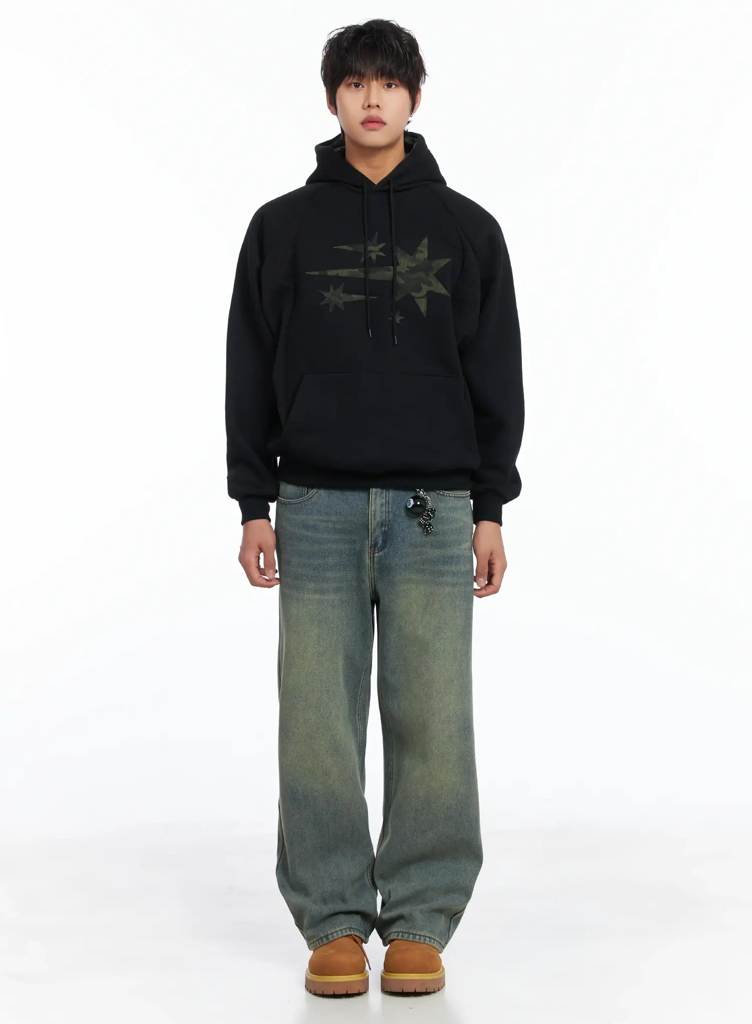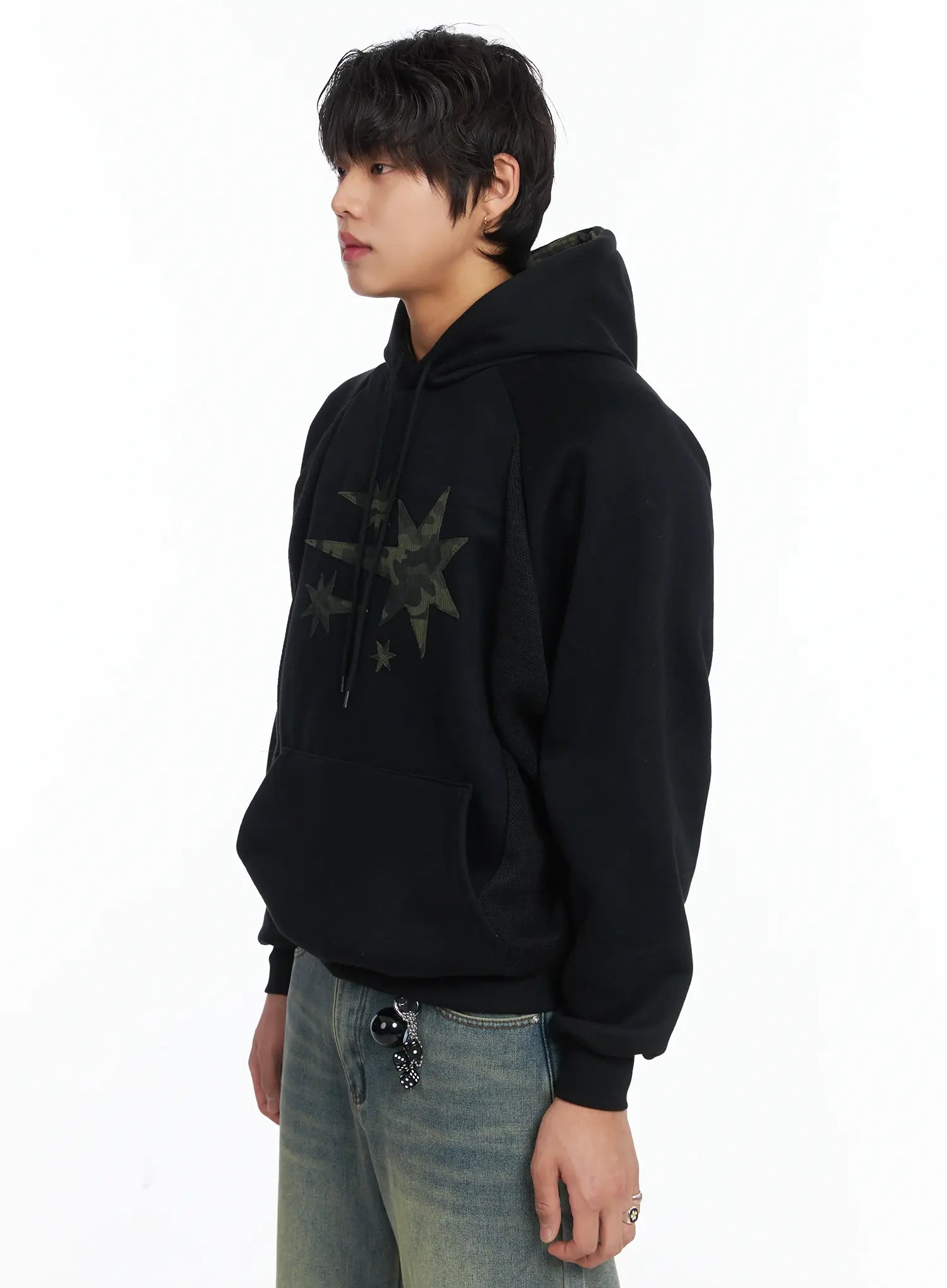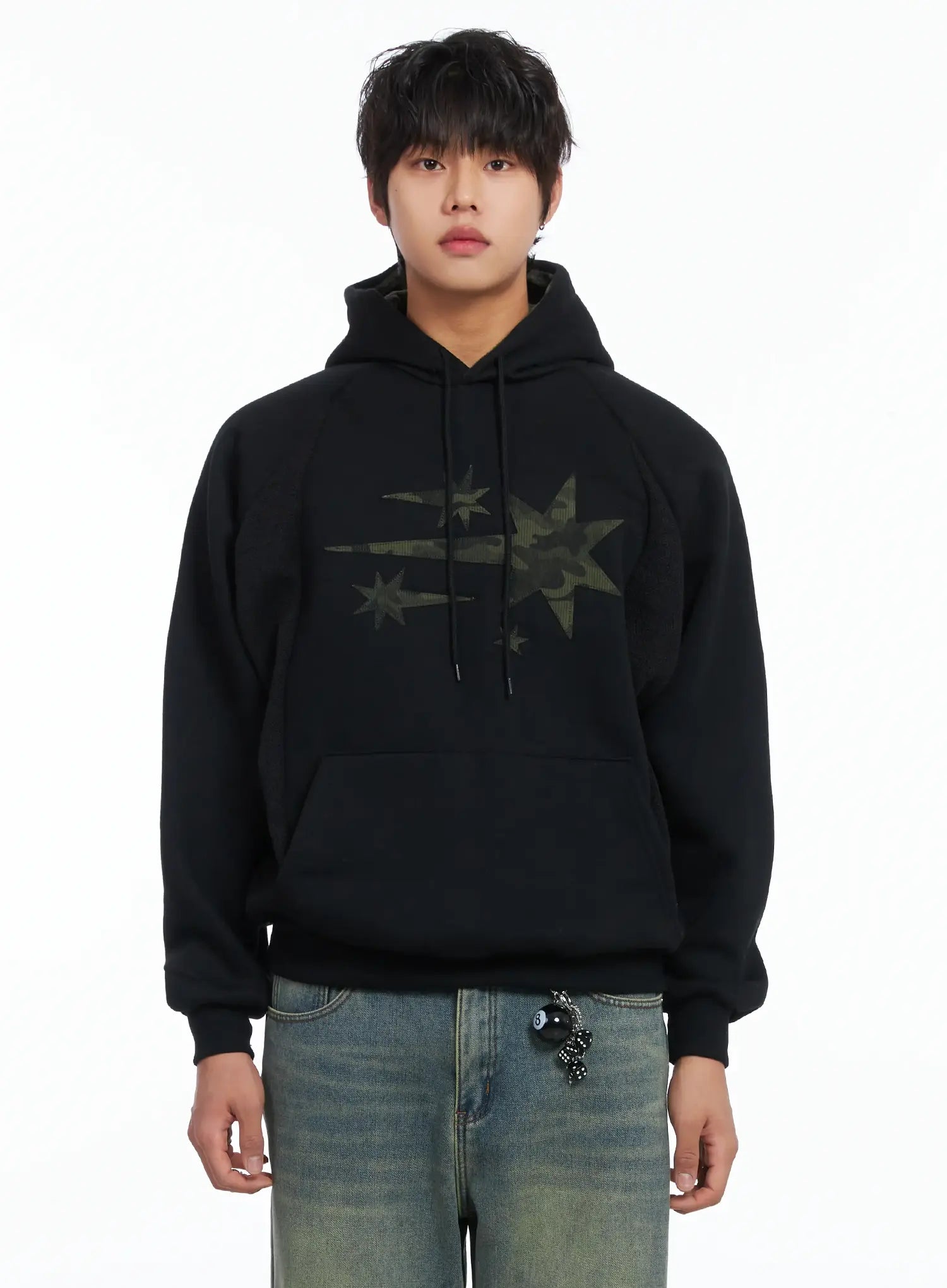Men's Simple Camo Detail Fleece Hoodie IJ512