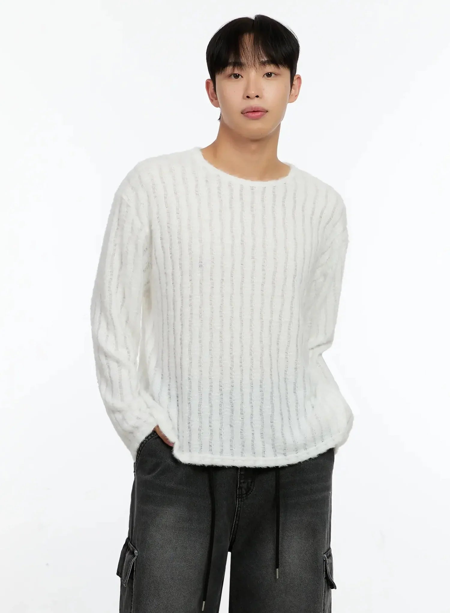 Men's Simple Ribbed Long Sleeve Tee IN525