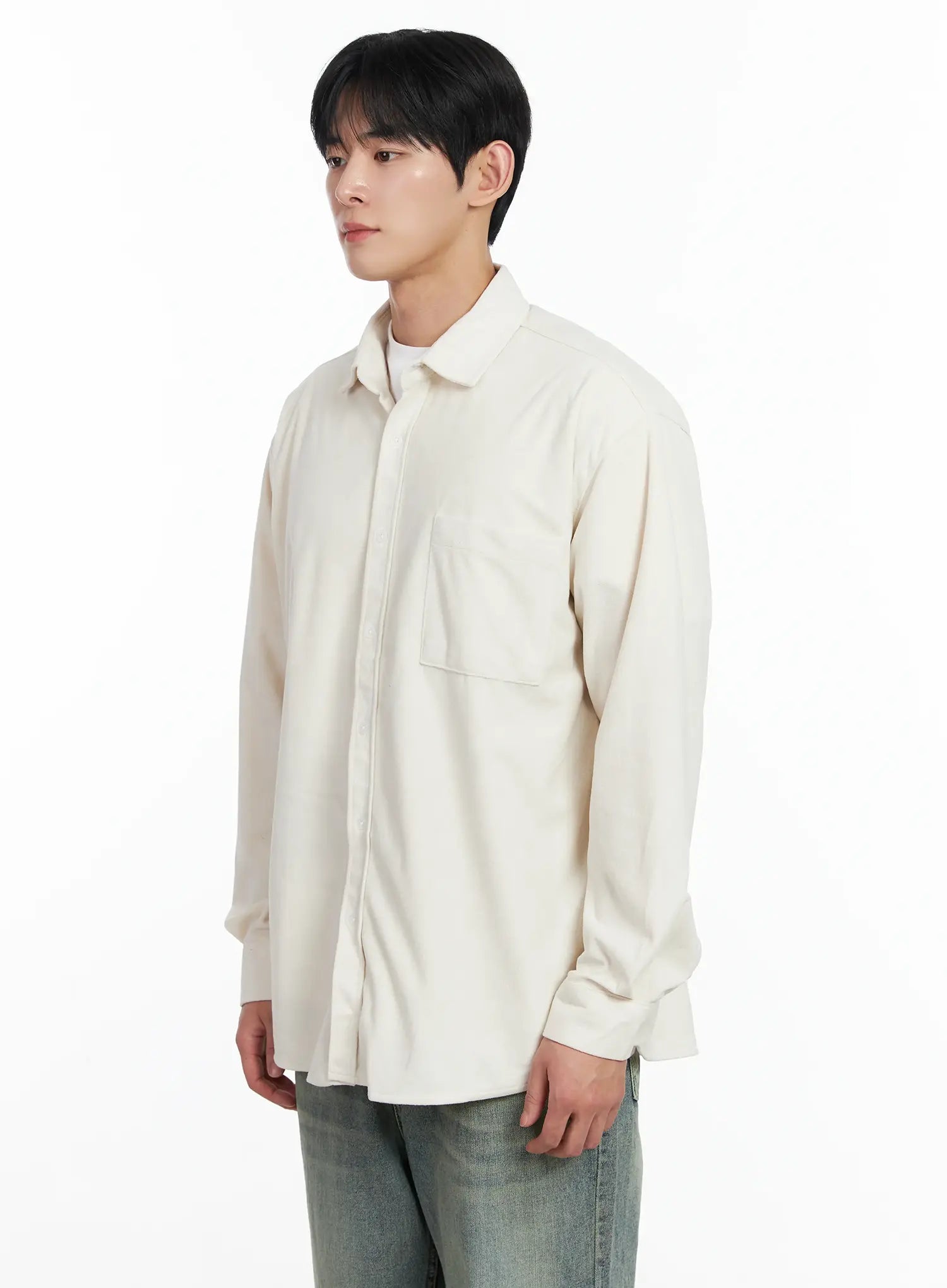 Men's Simple Suede Button-Up Shirt IJ521