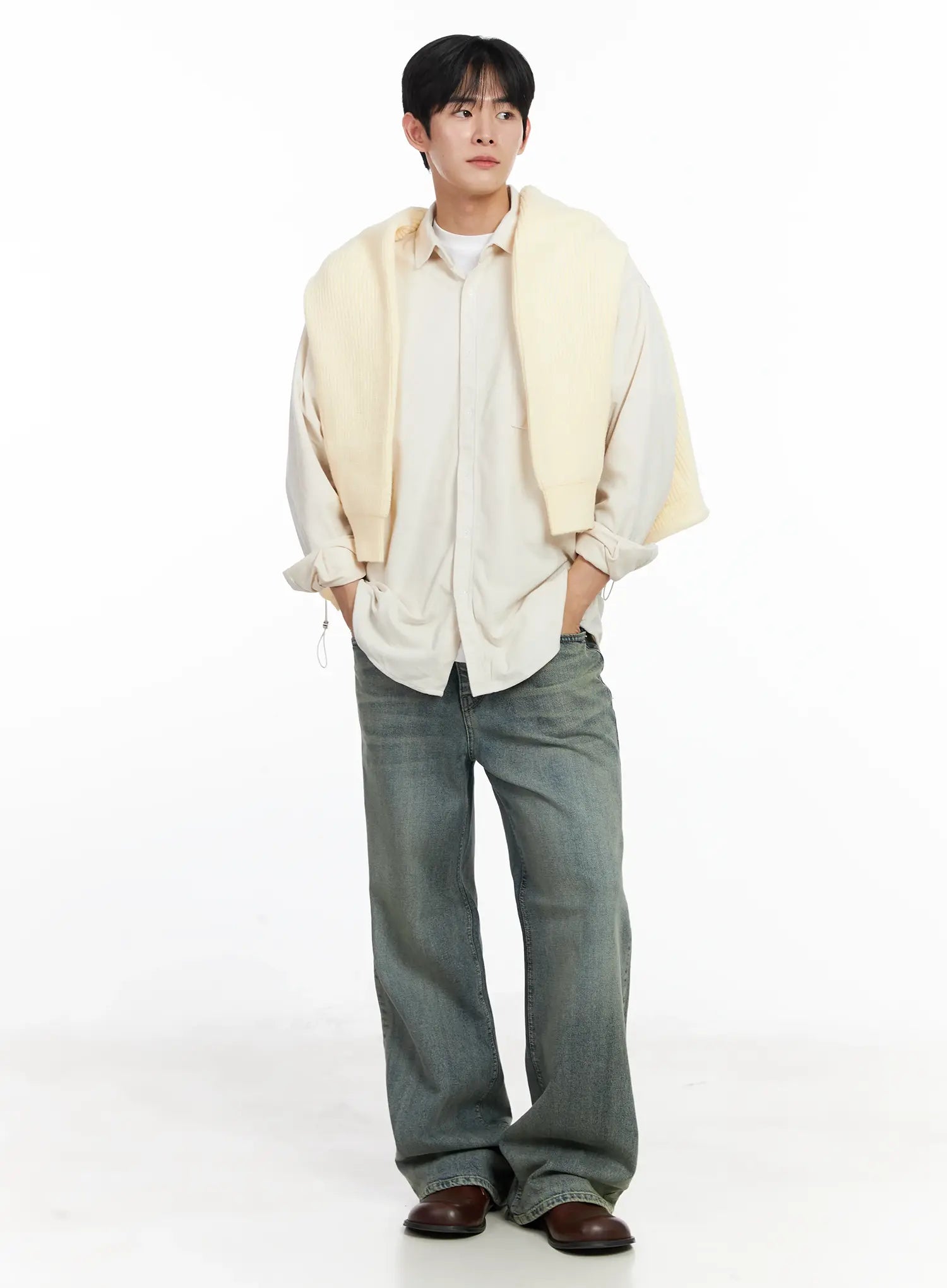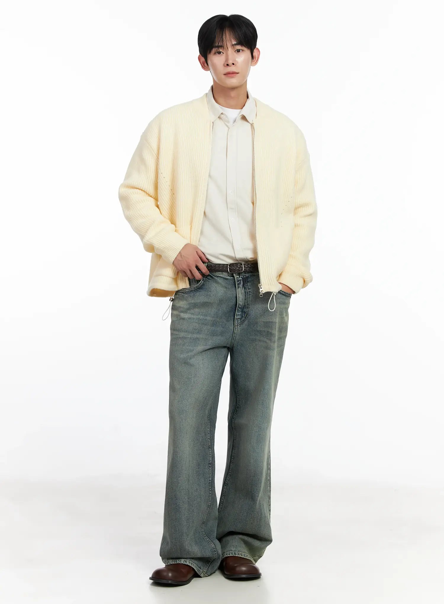 Model is wearing size M/L and the color Light beige.