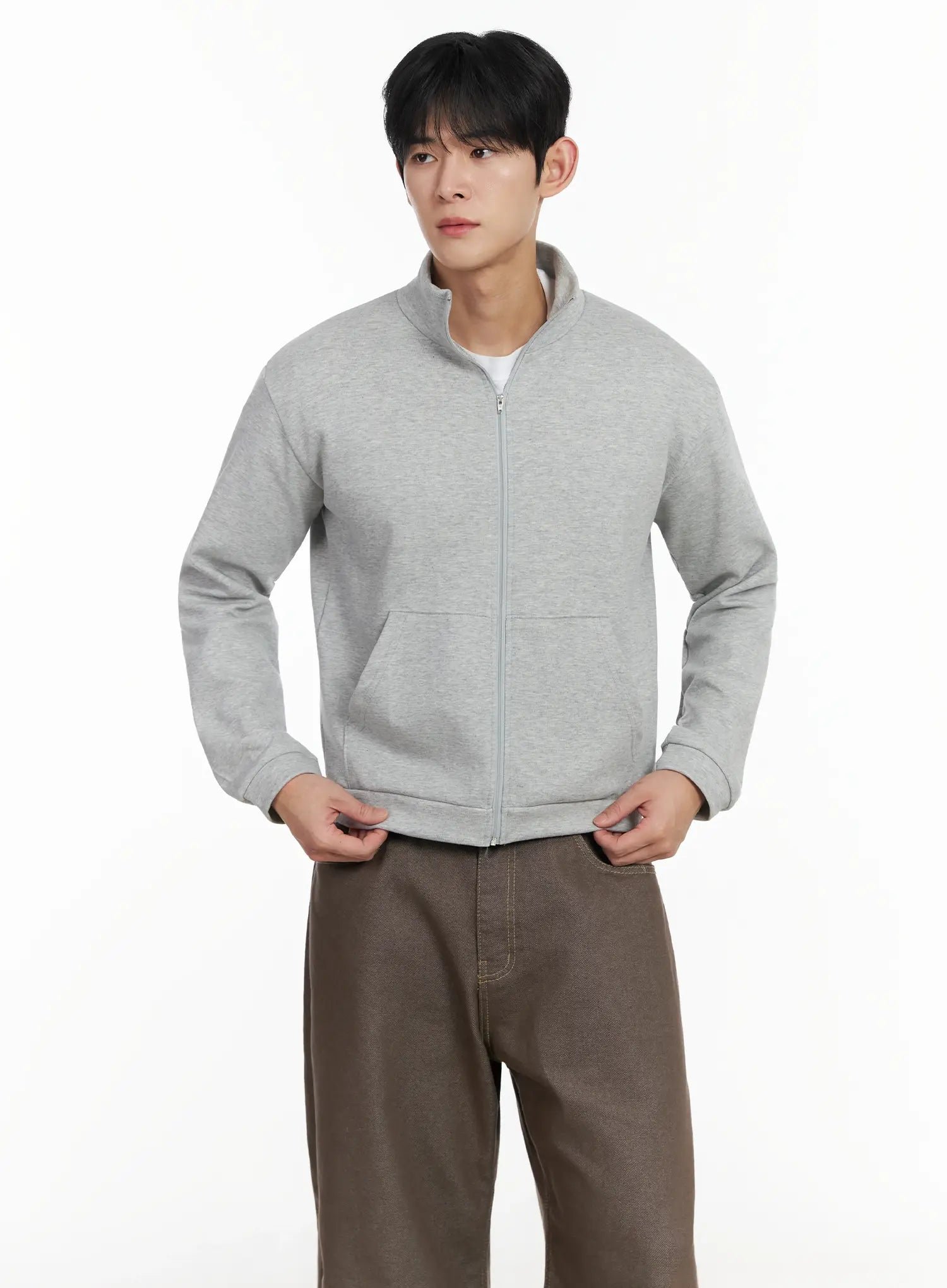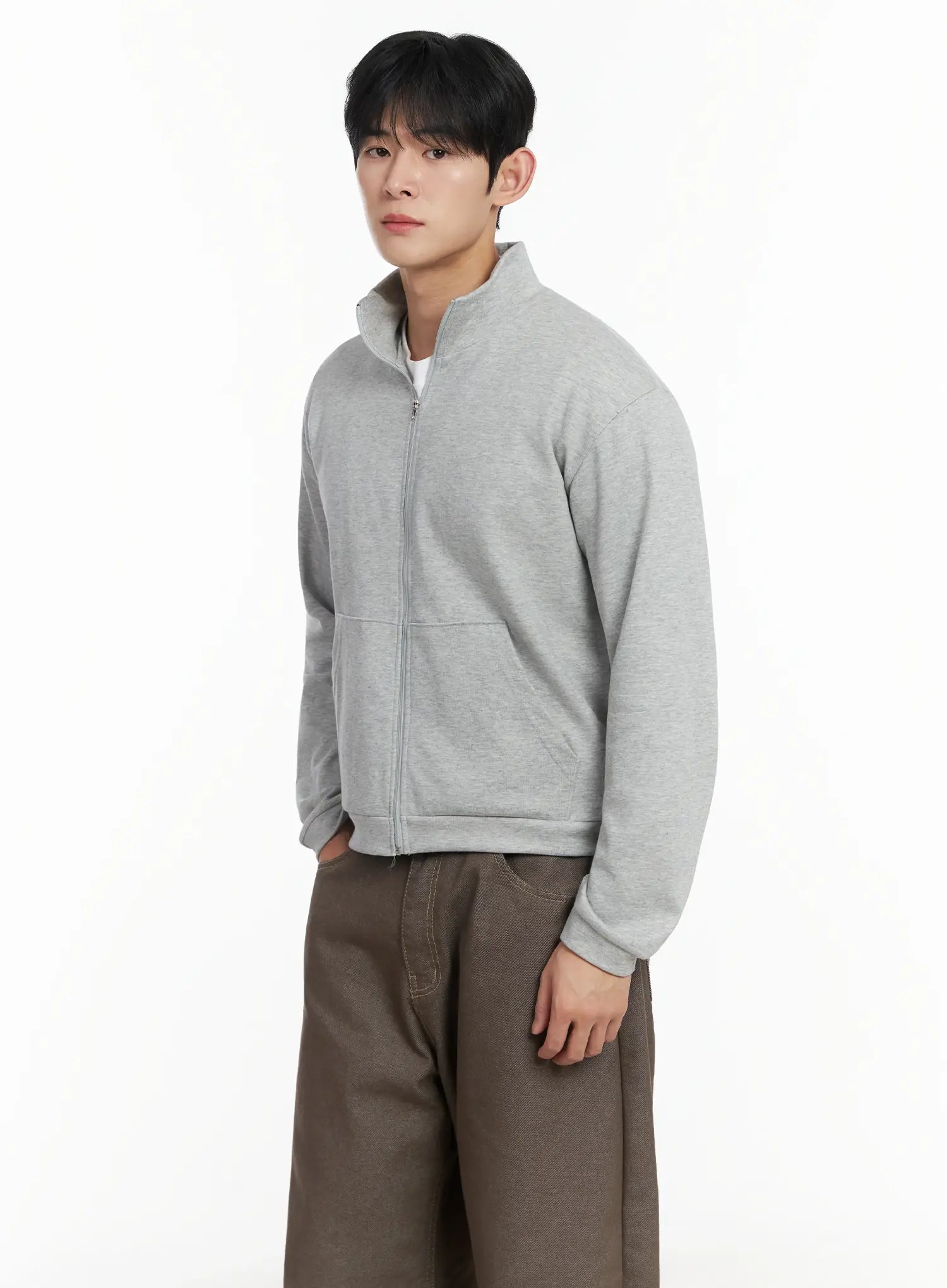 Men's Soft Basic Collared Zip-Up Jacket IF516