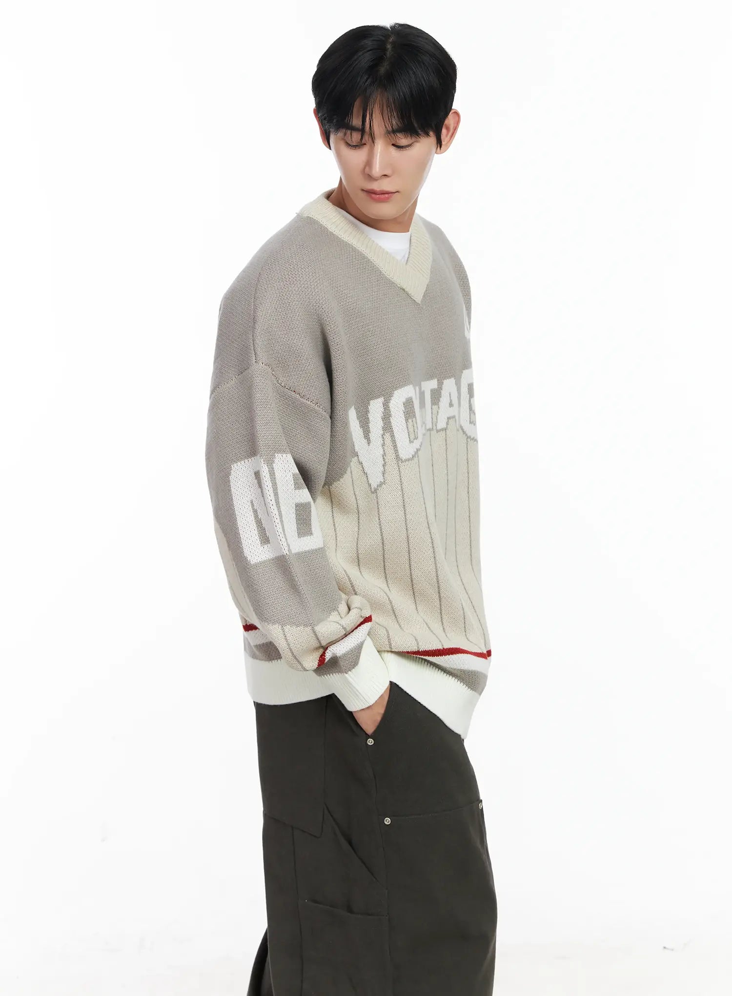 Men's Sporty V-Neck Knit Sweater IJ521