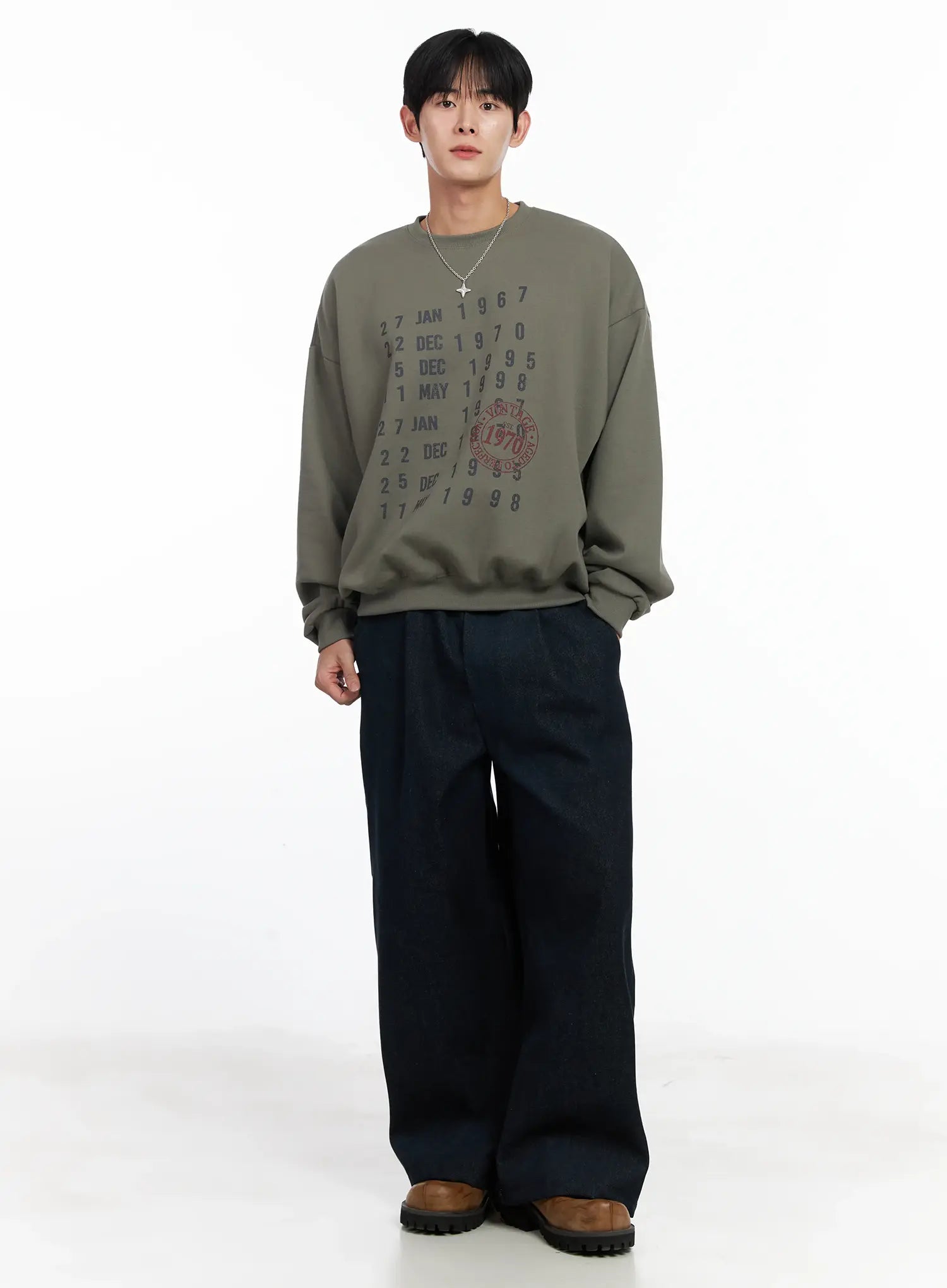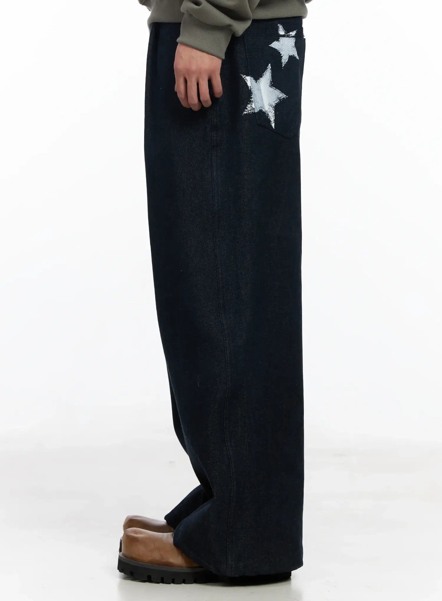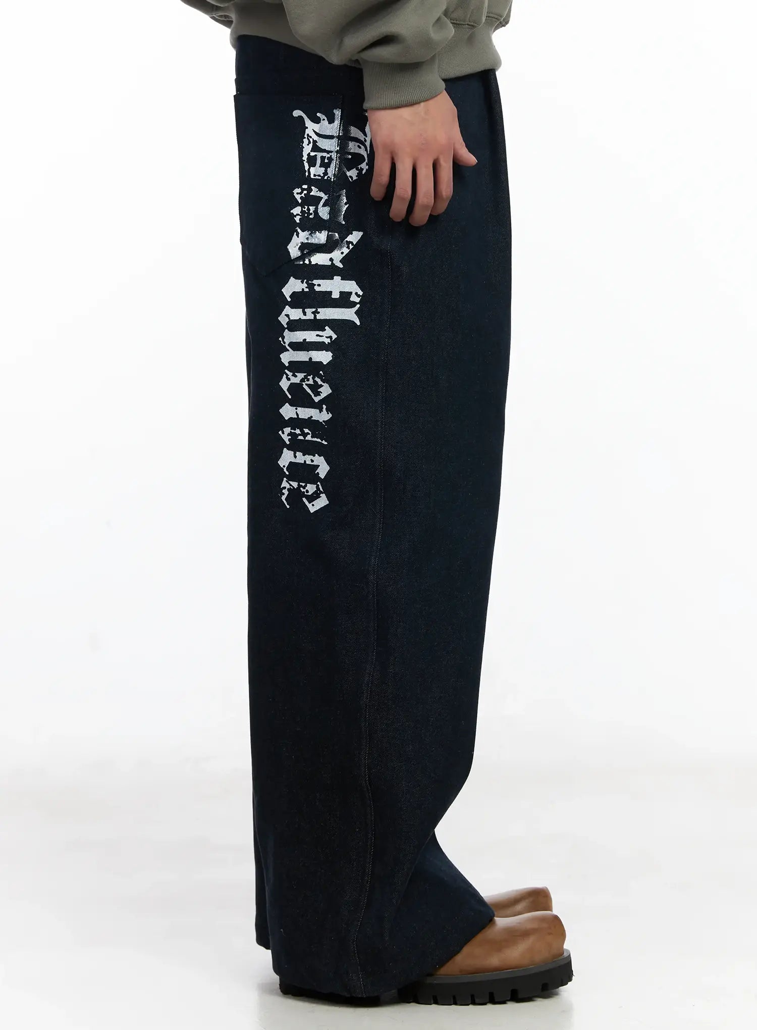 Men's Street Style Lettered Wide Jeans IJ521