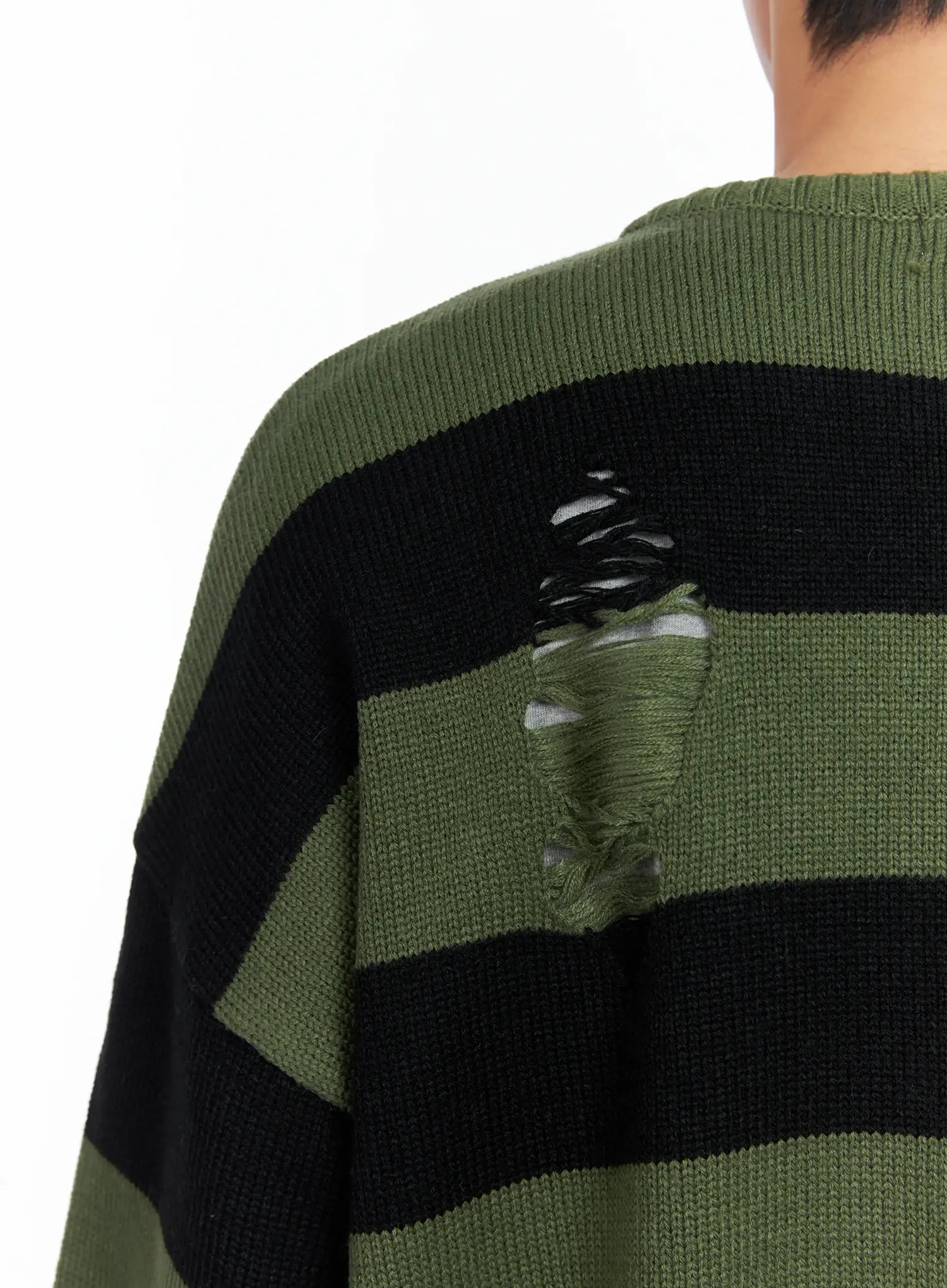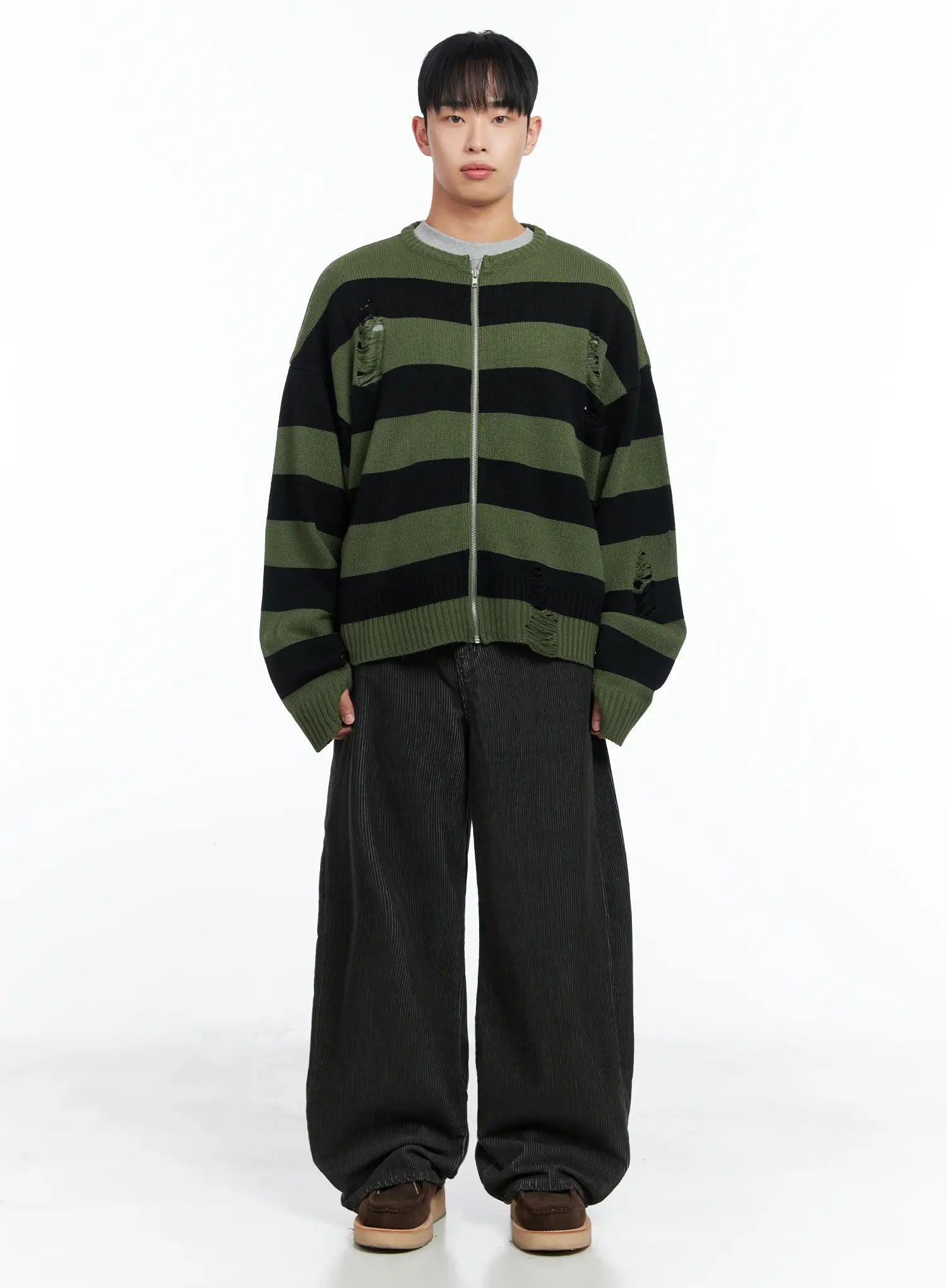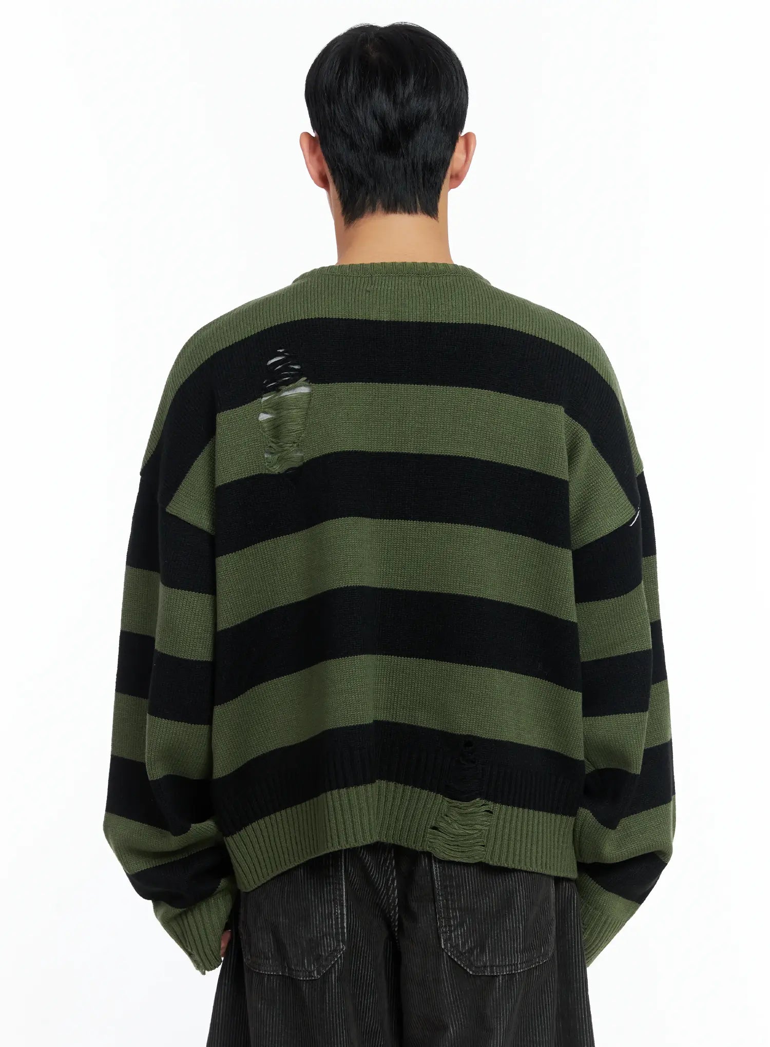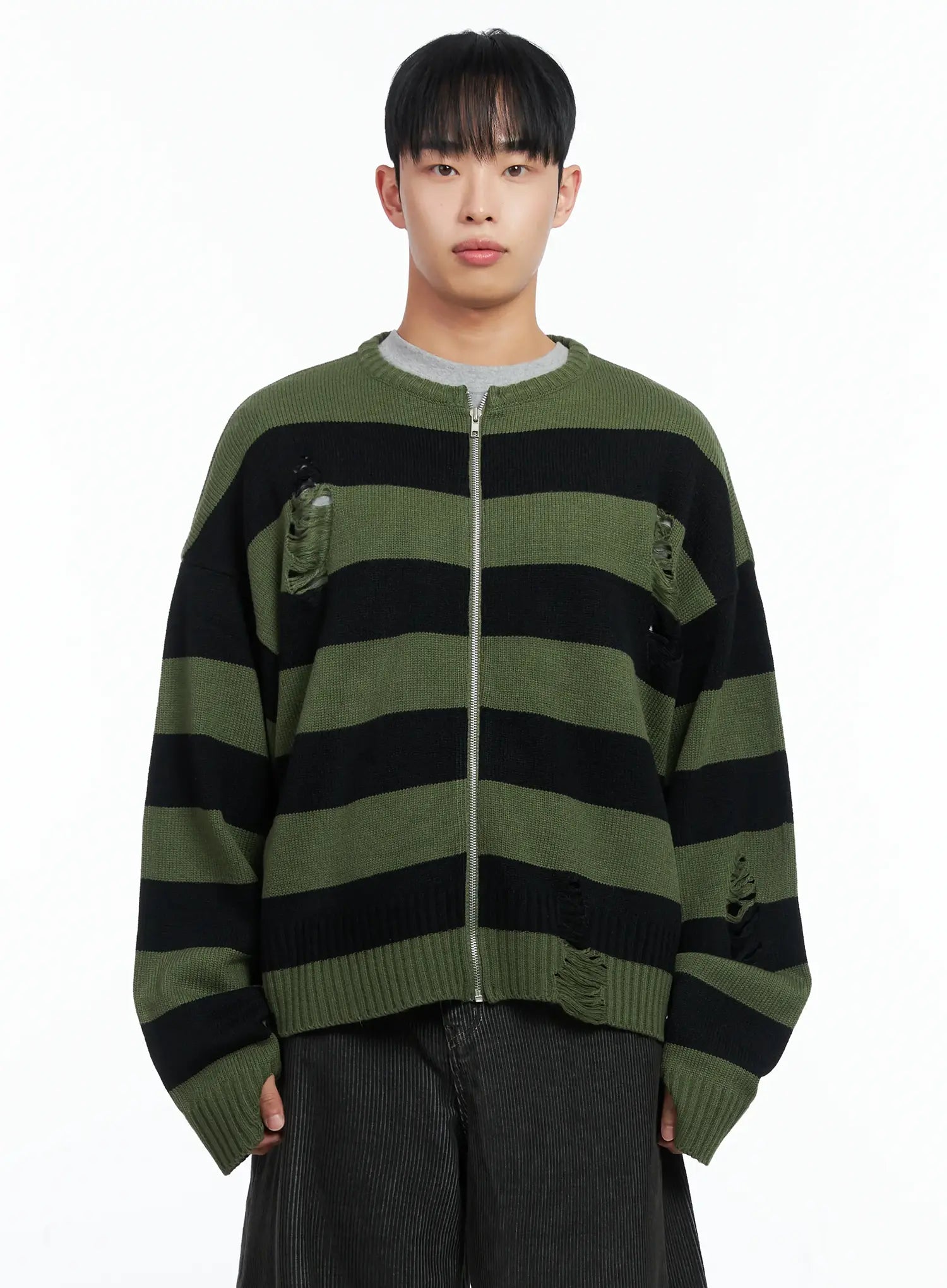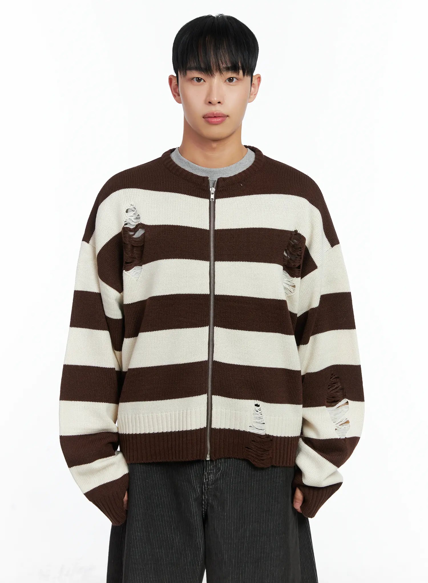 Men's Stripe Distressed Knit Cardigan IN518