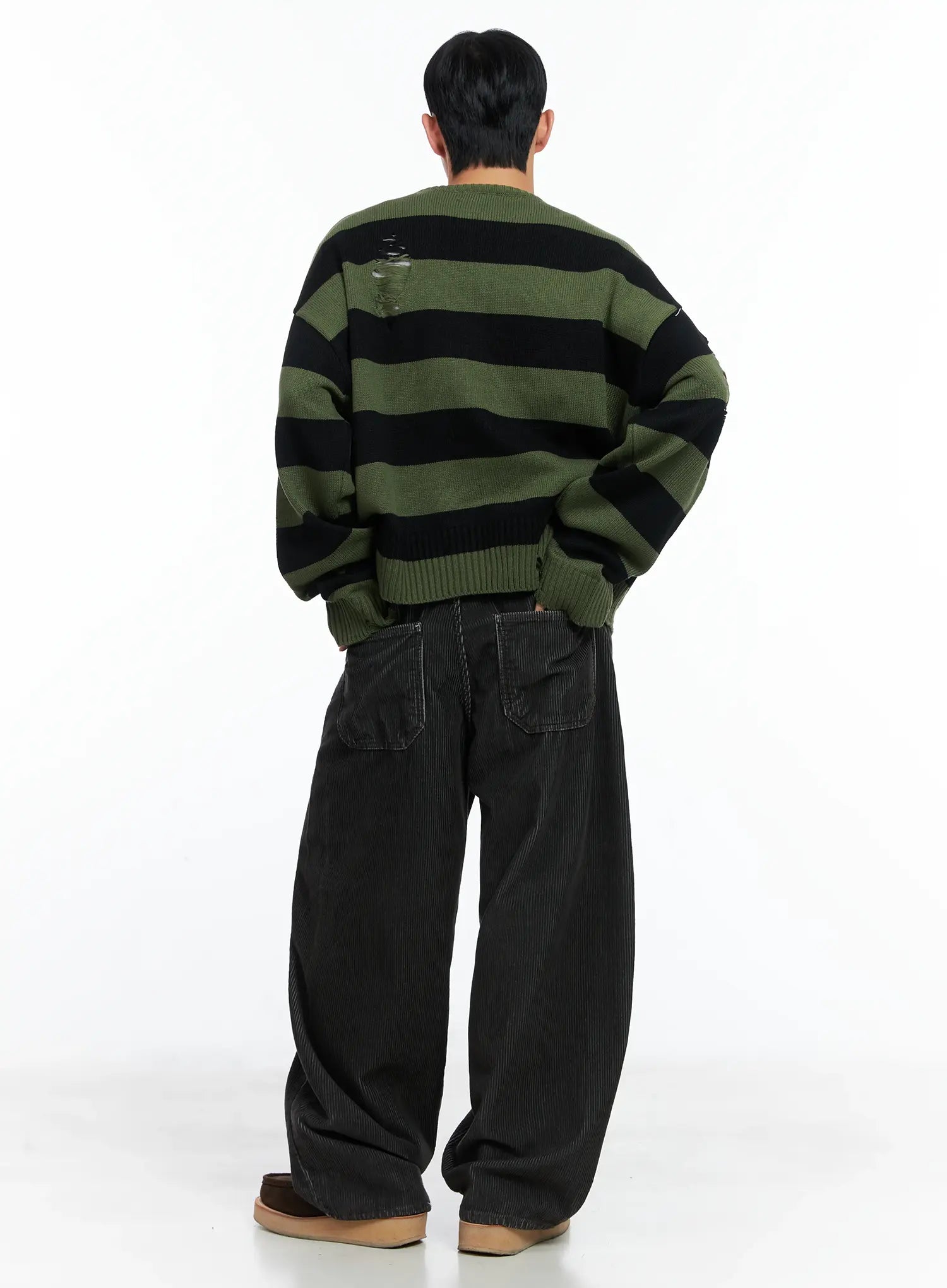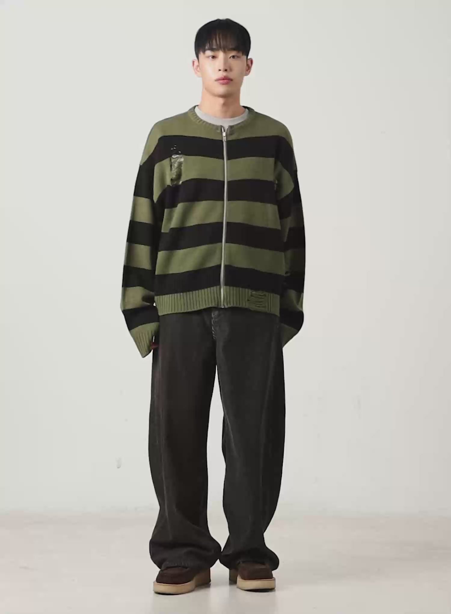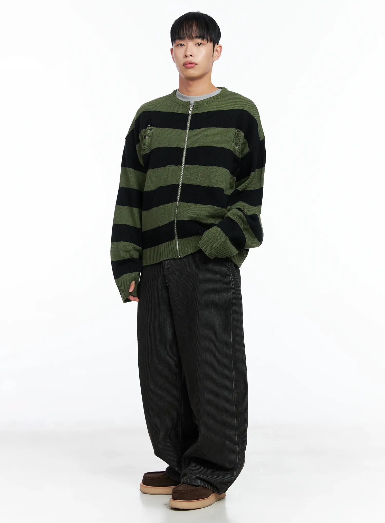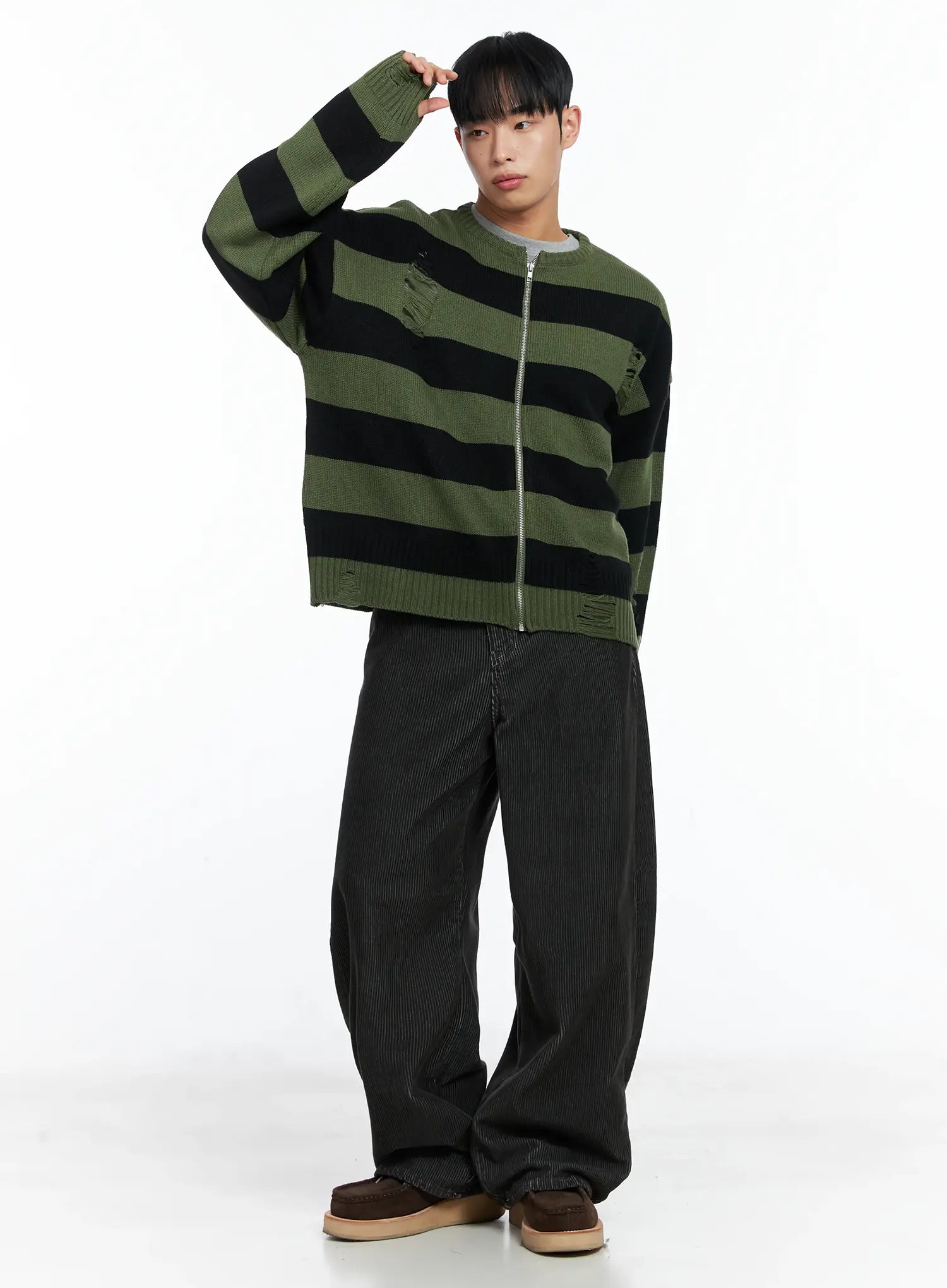 Men's Stripe Distressed Knit Cardigan IN518