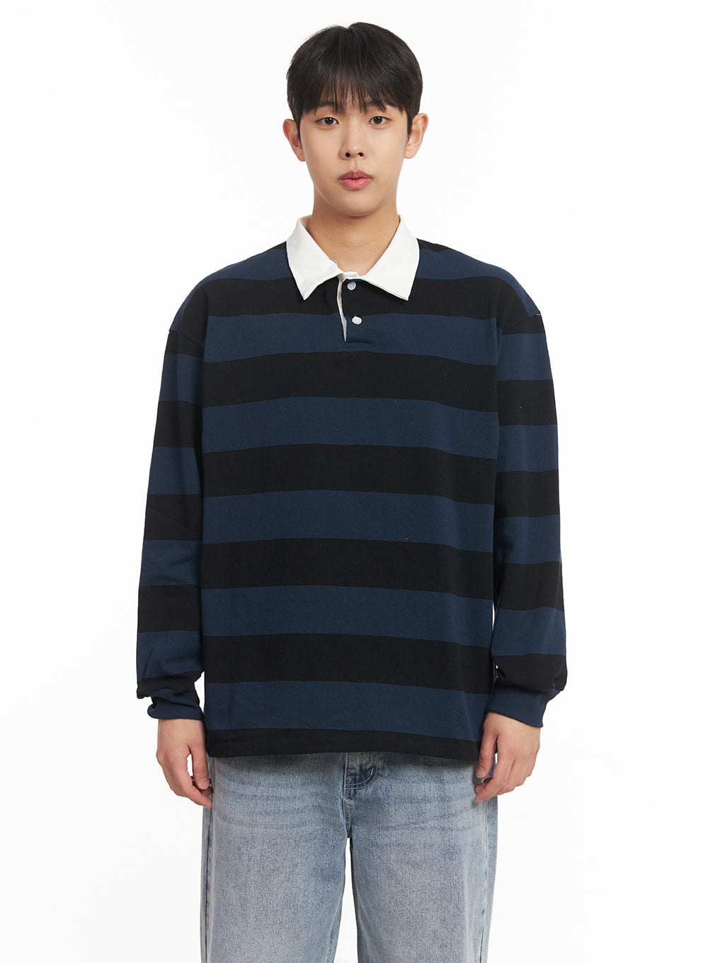 Men's Striped Long-Sleeve Collared Shirt IM514