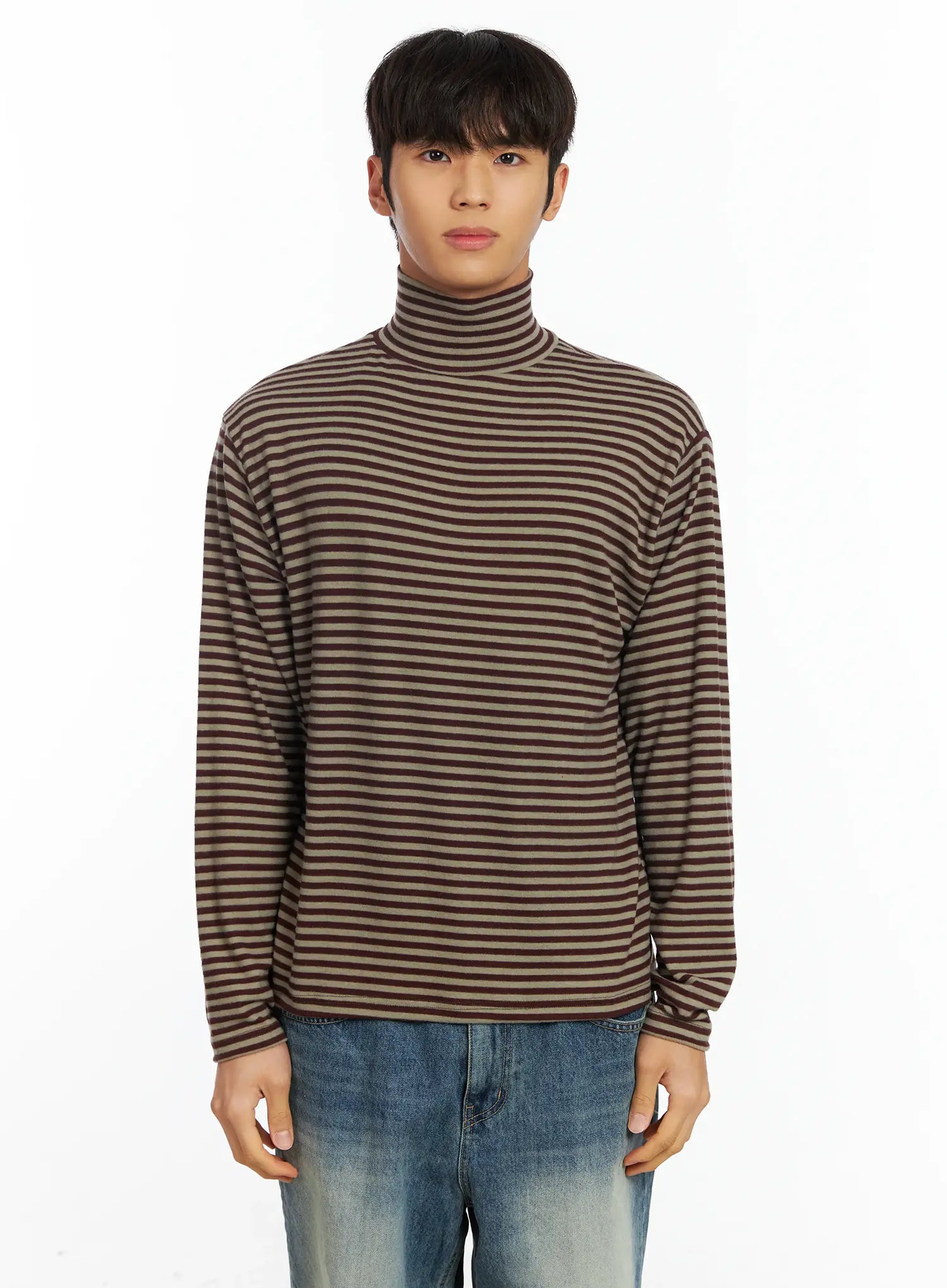 Men's Striped Turtleneck Tee IF504