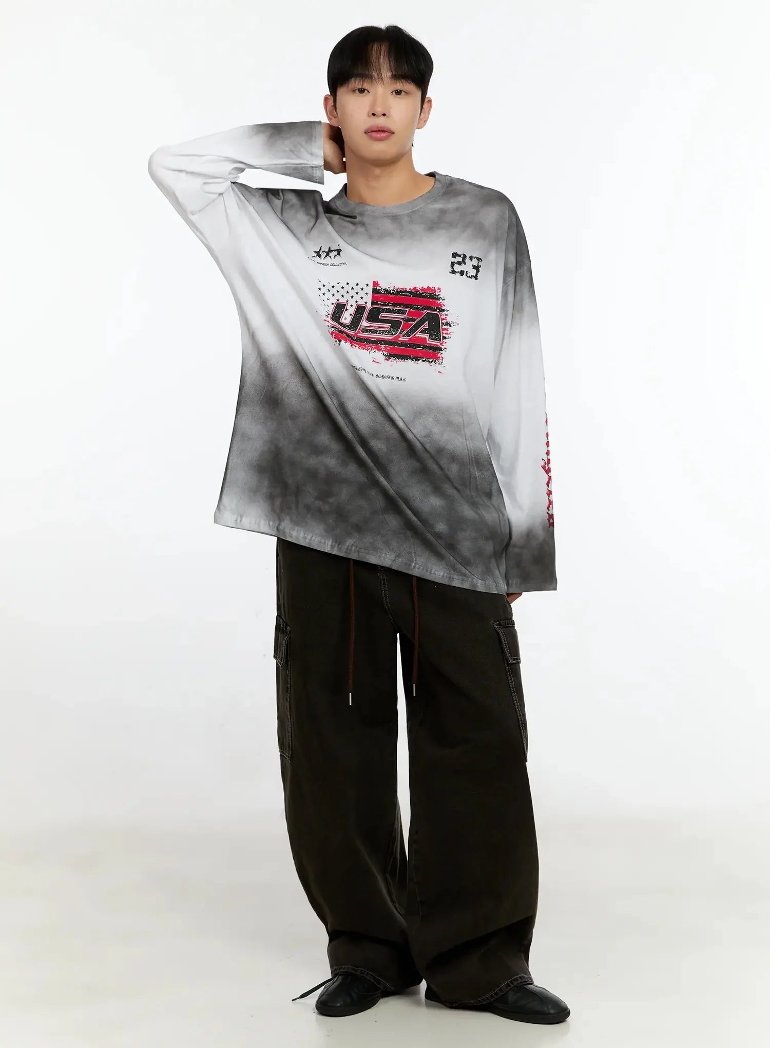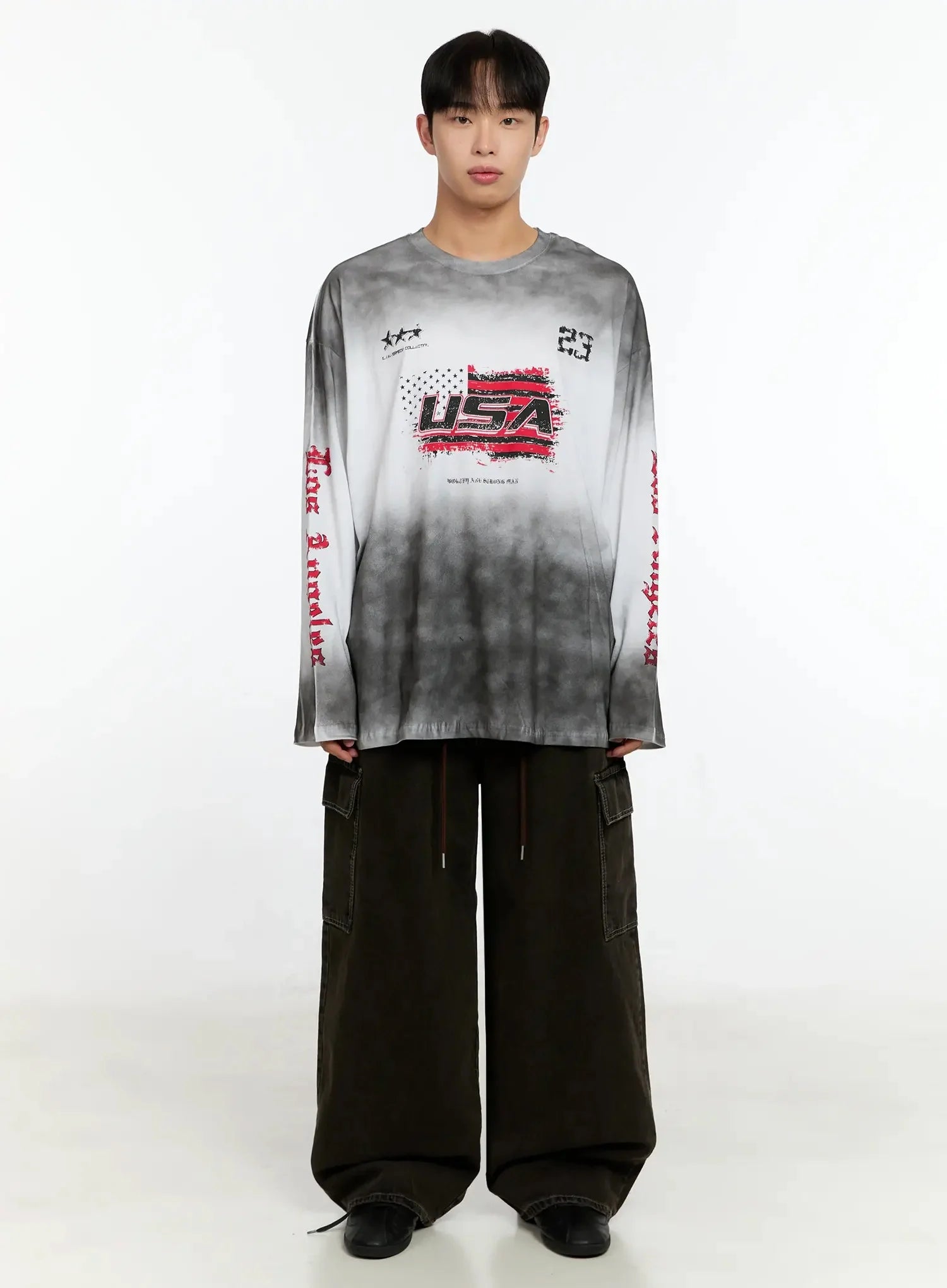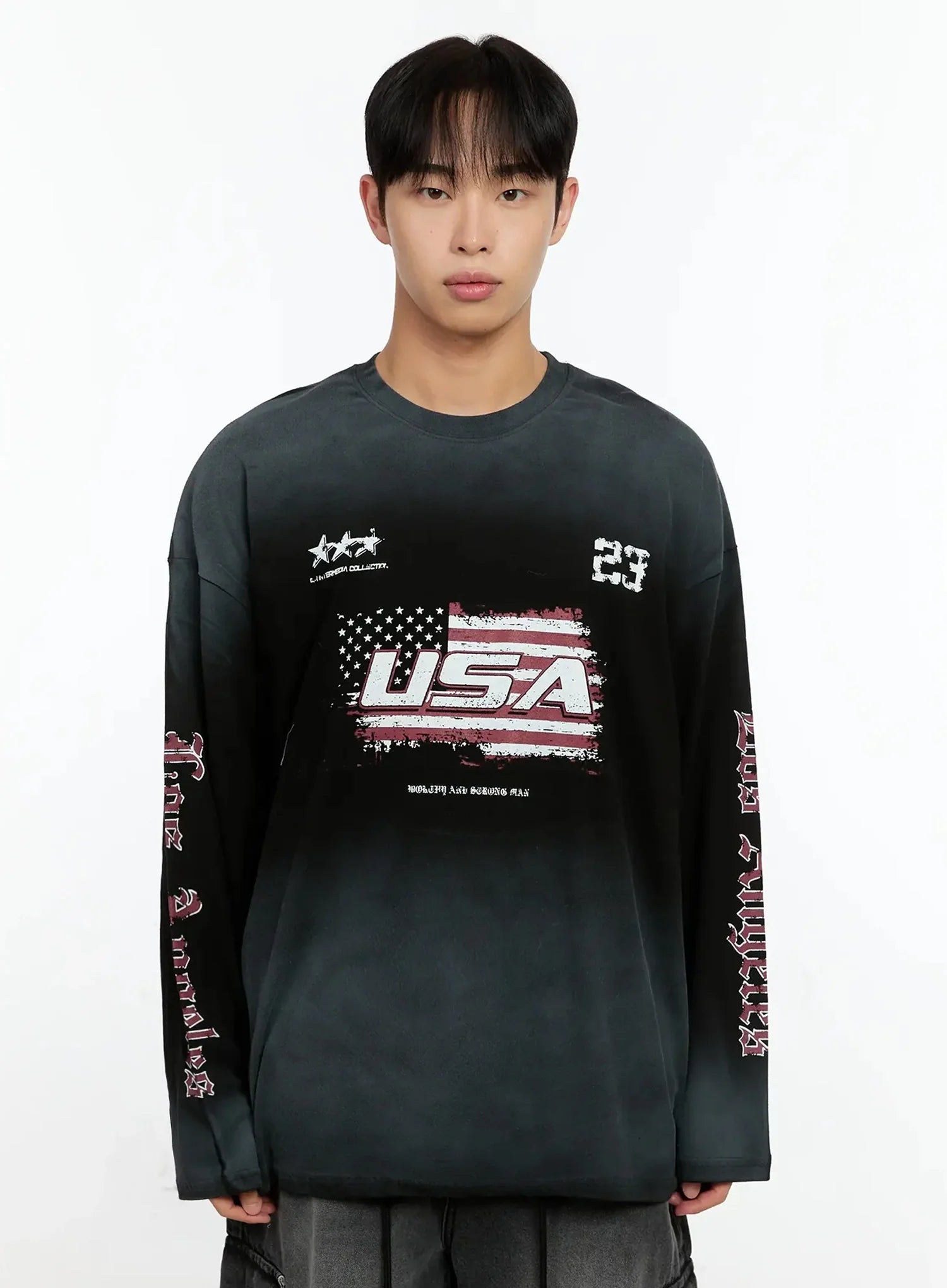 Men's Vintage Graphic Gradient Long Sleeve Tee IN525