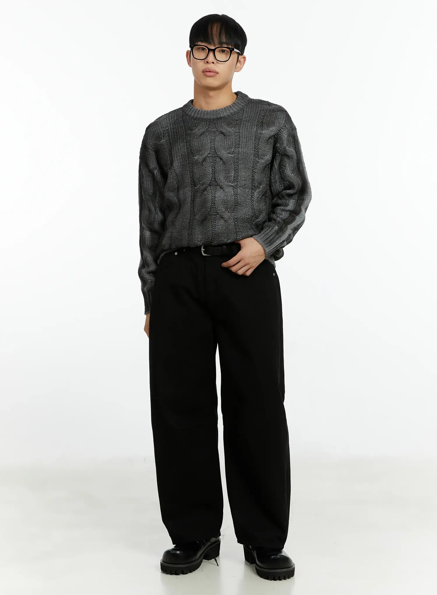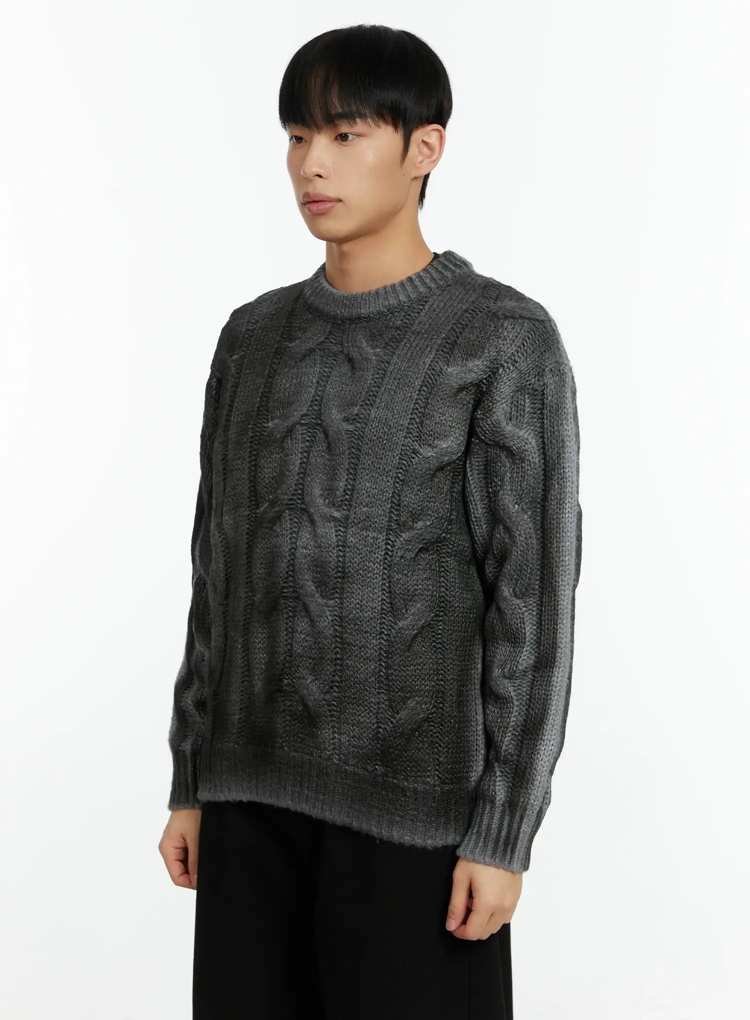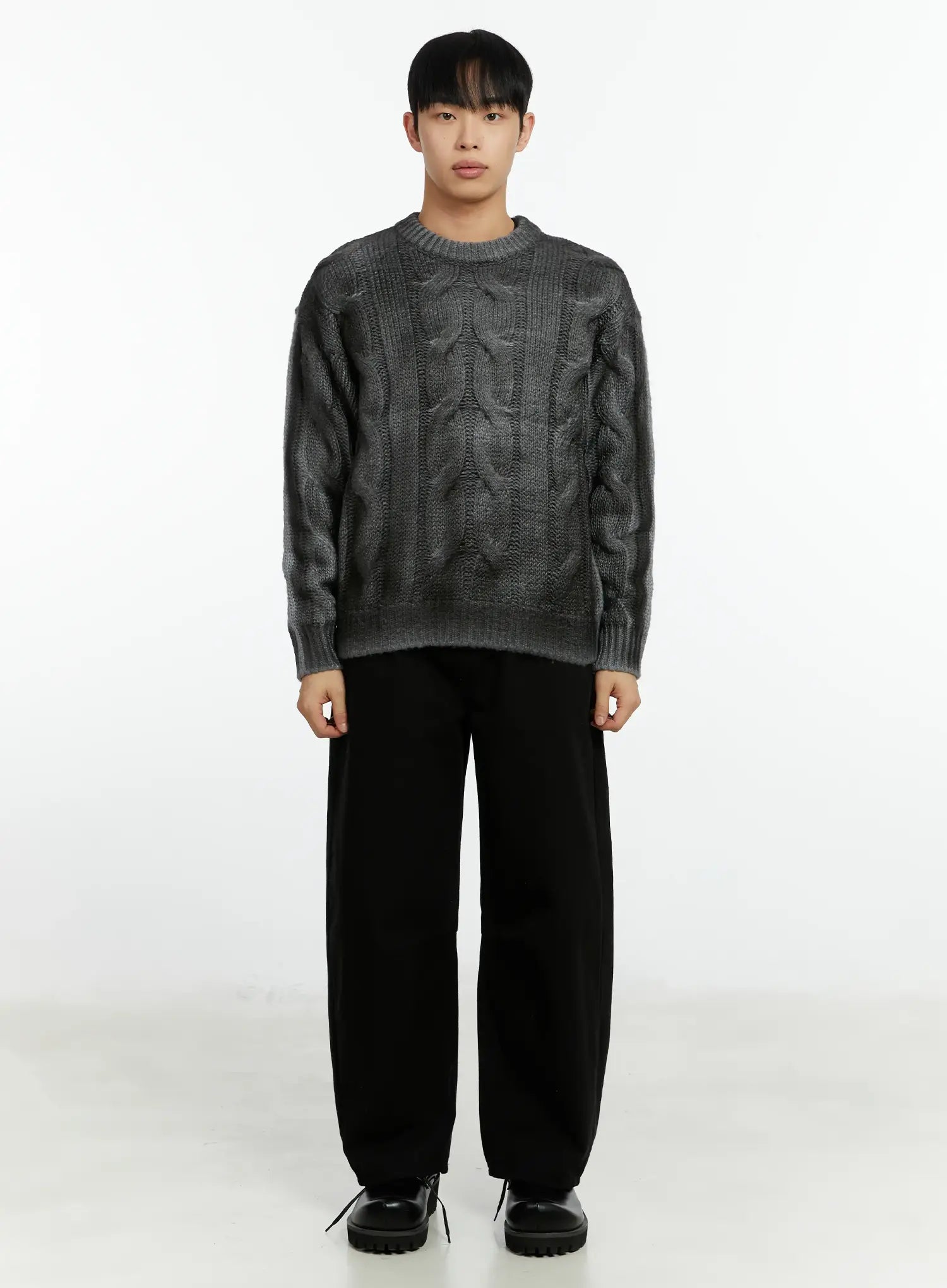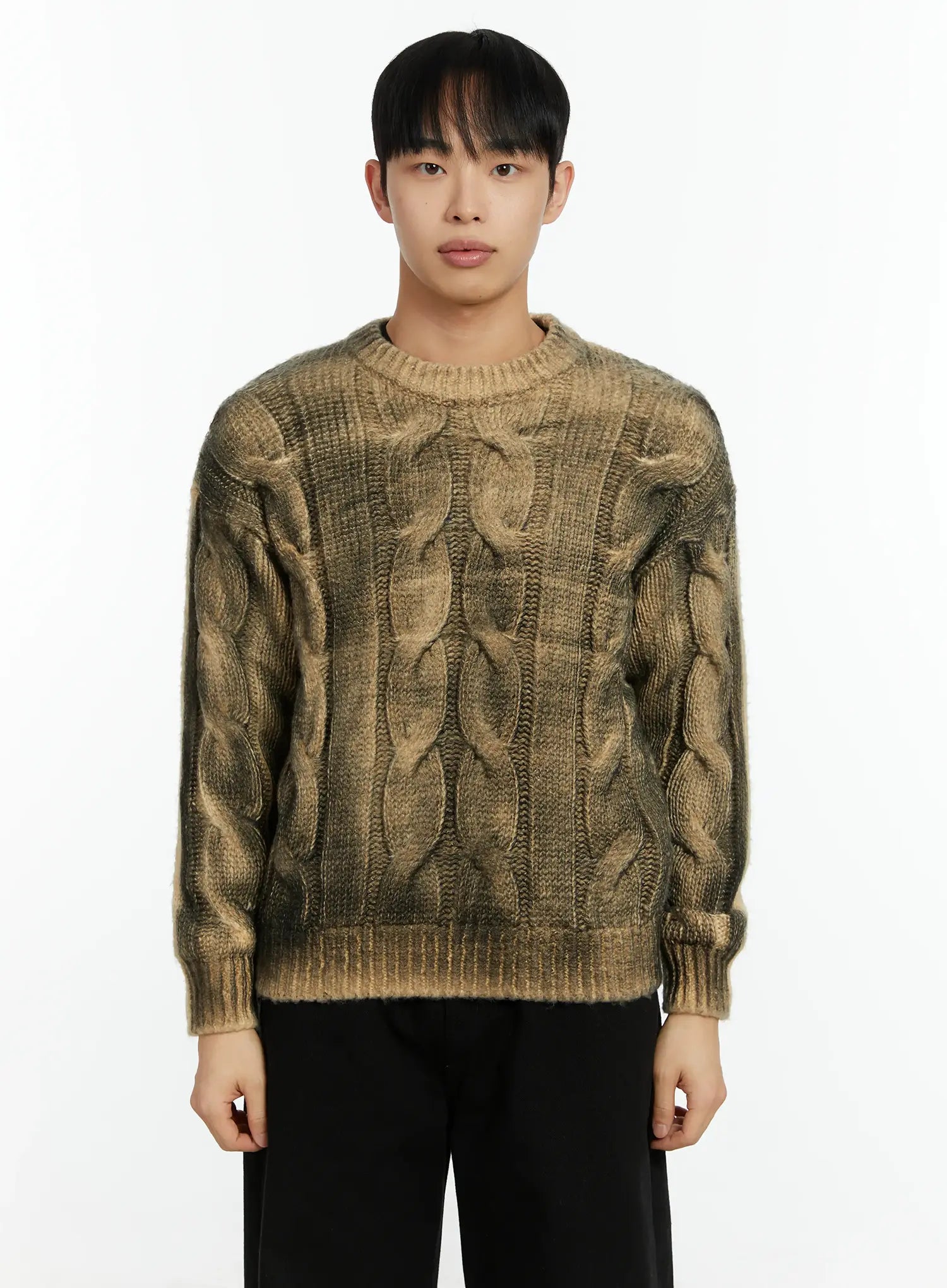 Men's Vintage Washed Cable Knit Pullover Sweater IF511