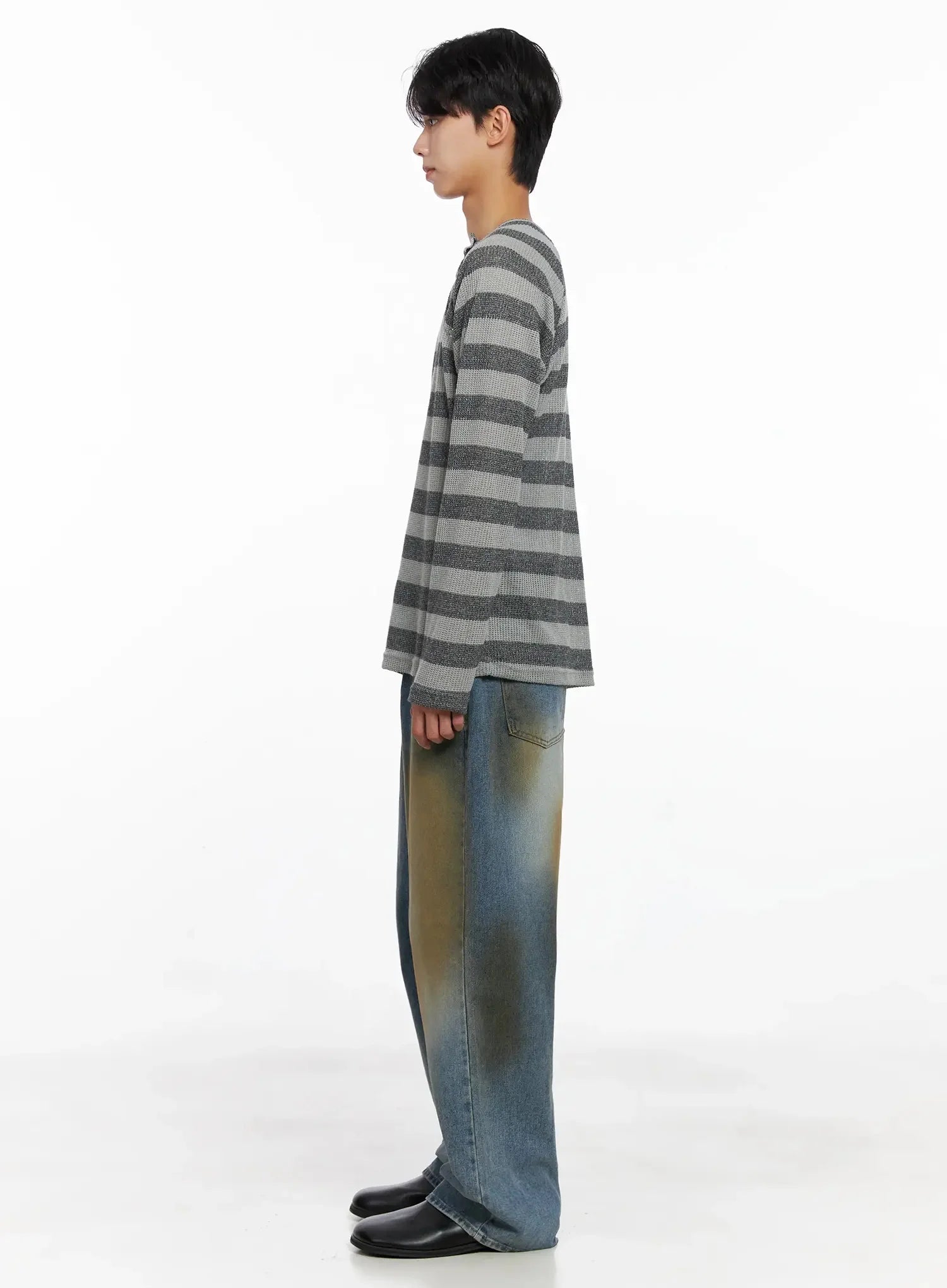 Men's Vintage Washed Wide-Leg Jeans IO516