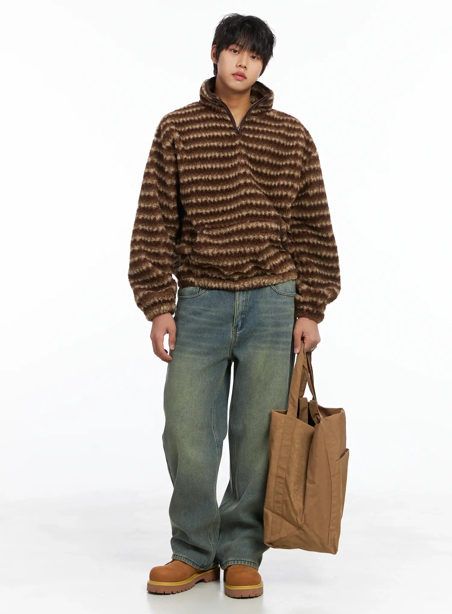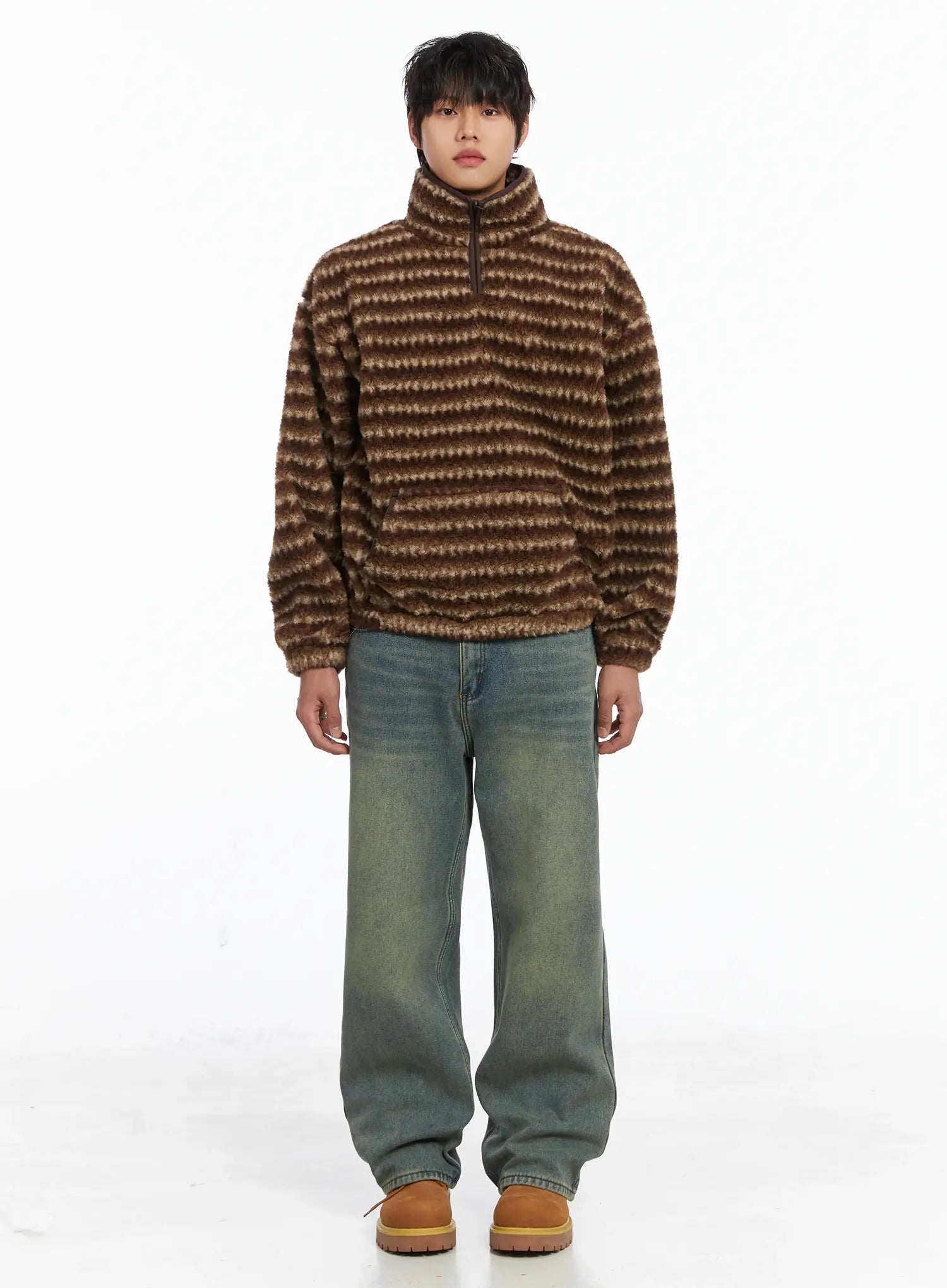 Men's Warm Fleece Striped Quarter Zip-Up IJ512