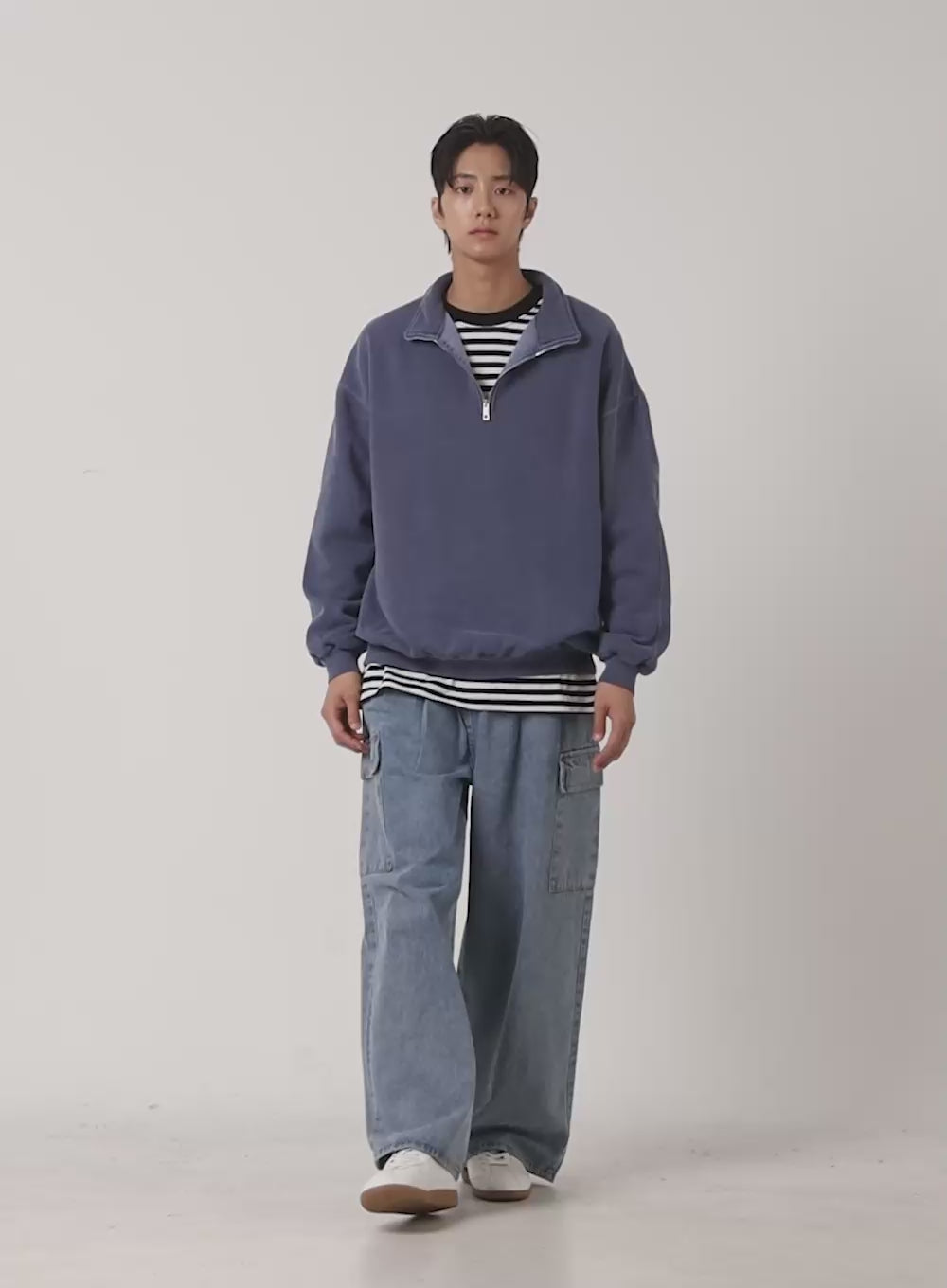 Men's Washed Cotton Half-Zip Crewneck ID406