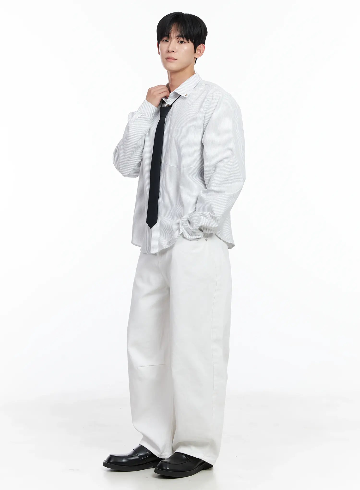 Men's White Wide Leg Cotton Pants IJ521