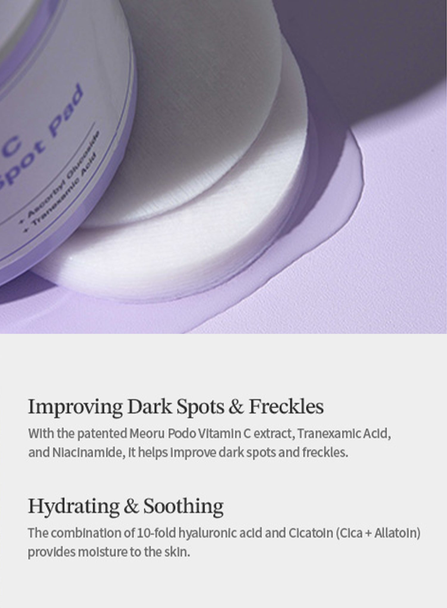 - A dark spot pad full of Vitis coignetiae and Vitamin C for whitening synergy