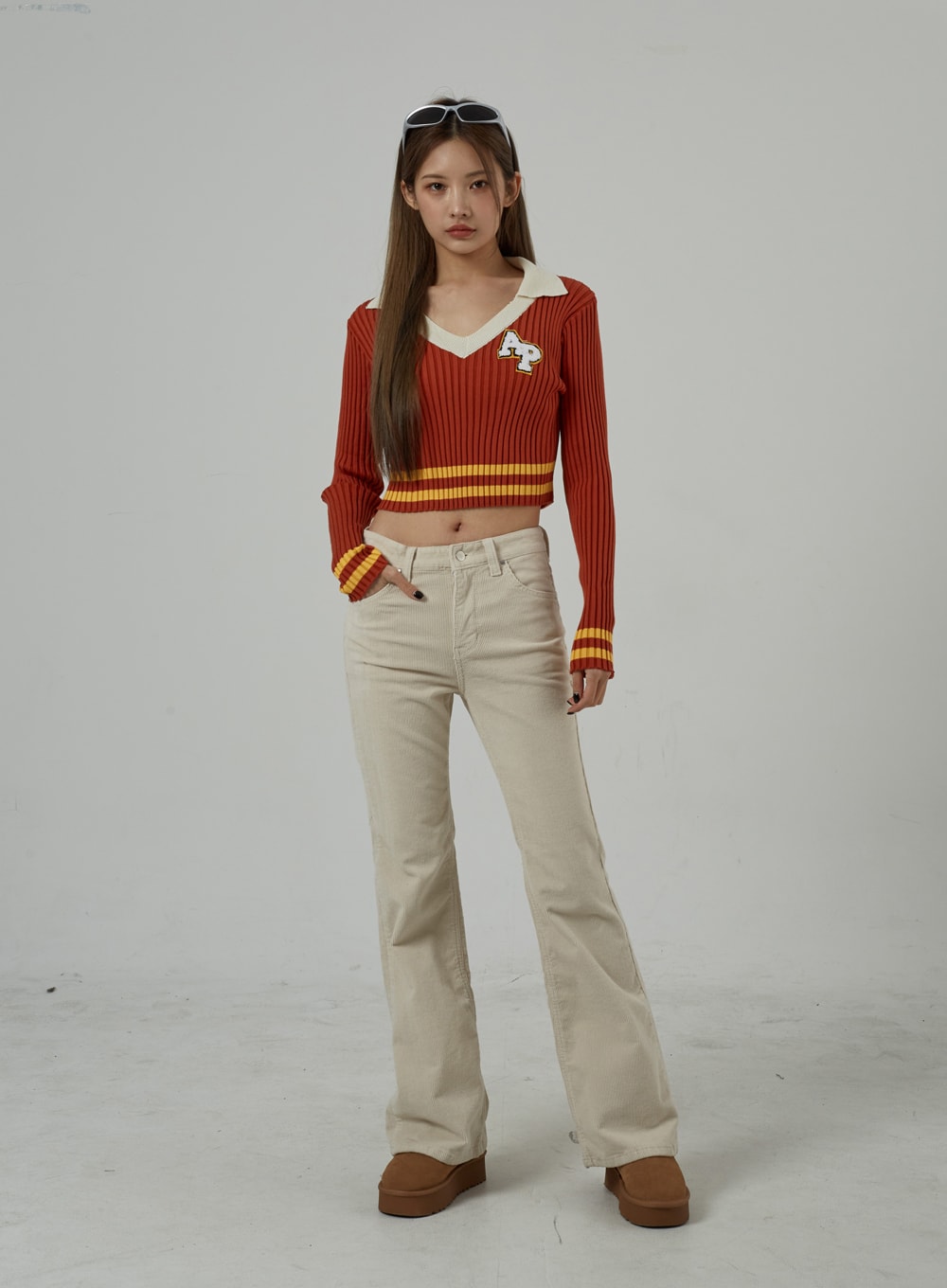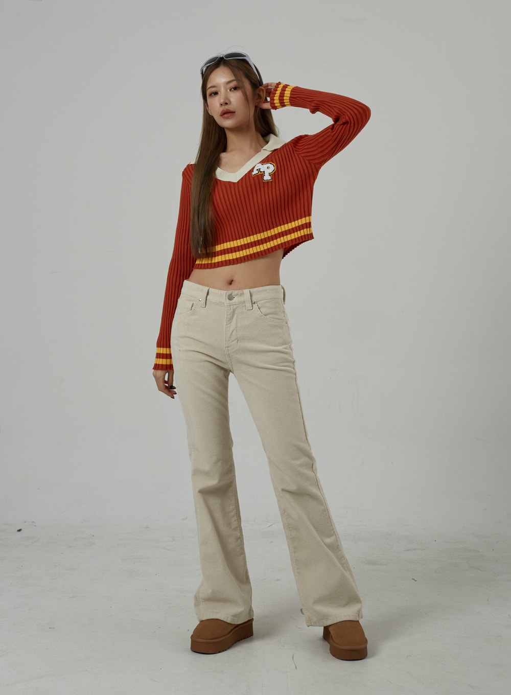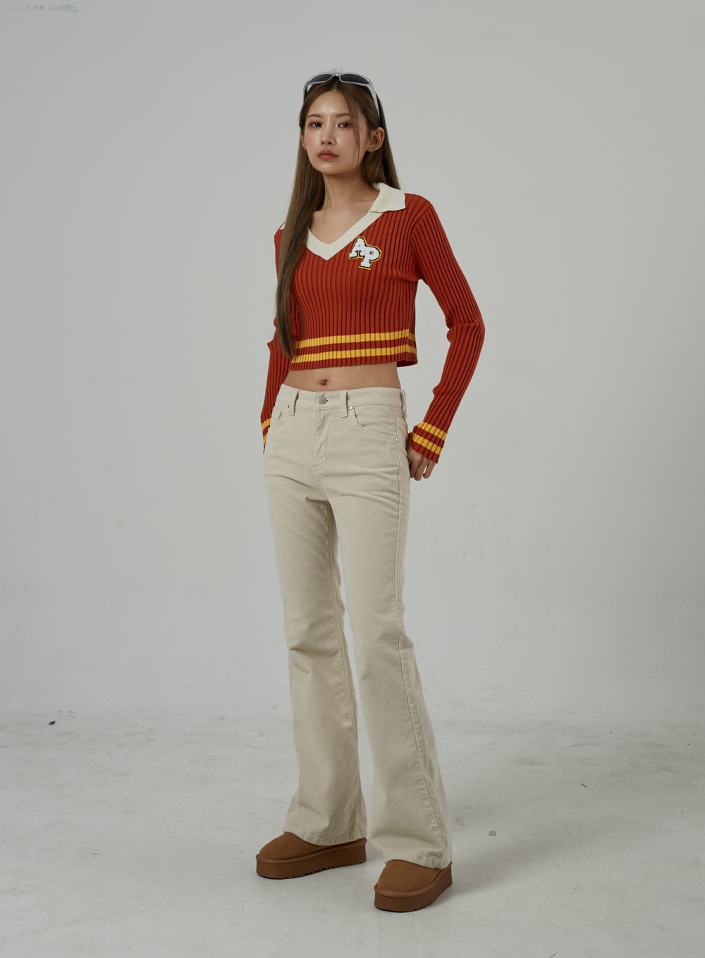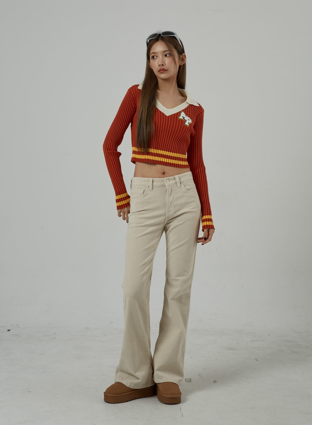 Mid-Rise Corduroy Bootcut Pants CJ306
