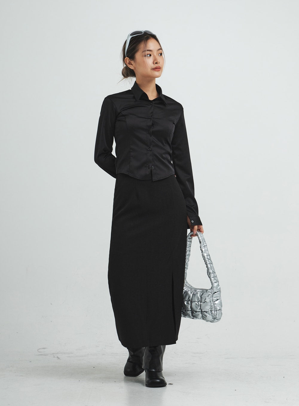 Navy Satin Line Shirt CS14