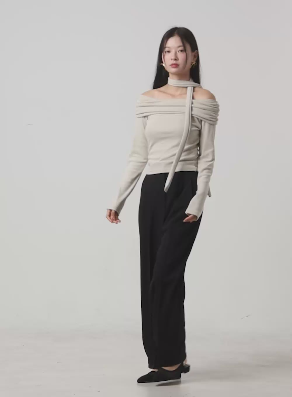 Off-Shoulder Crop Top with Scarf OG416