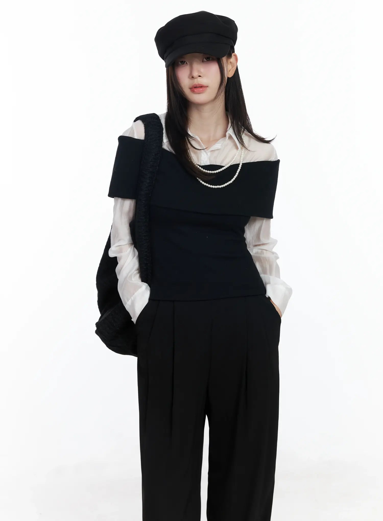 Model is wearing size S/M and the color Black.