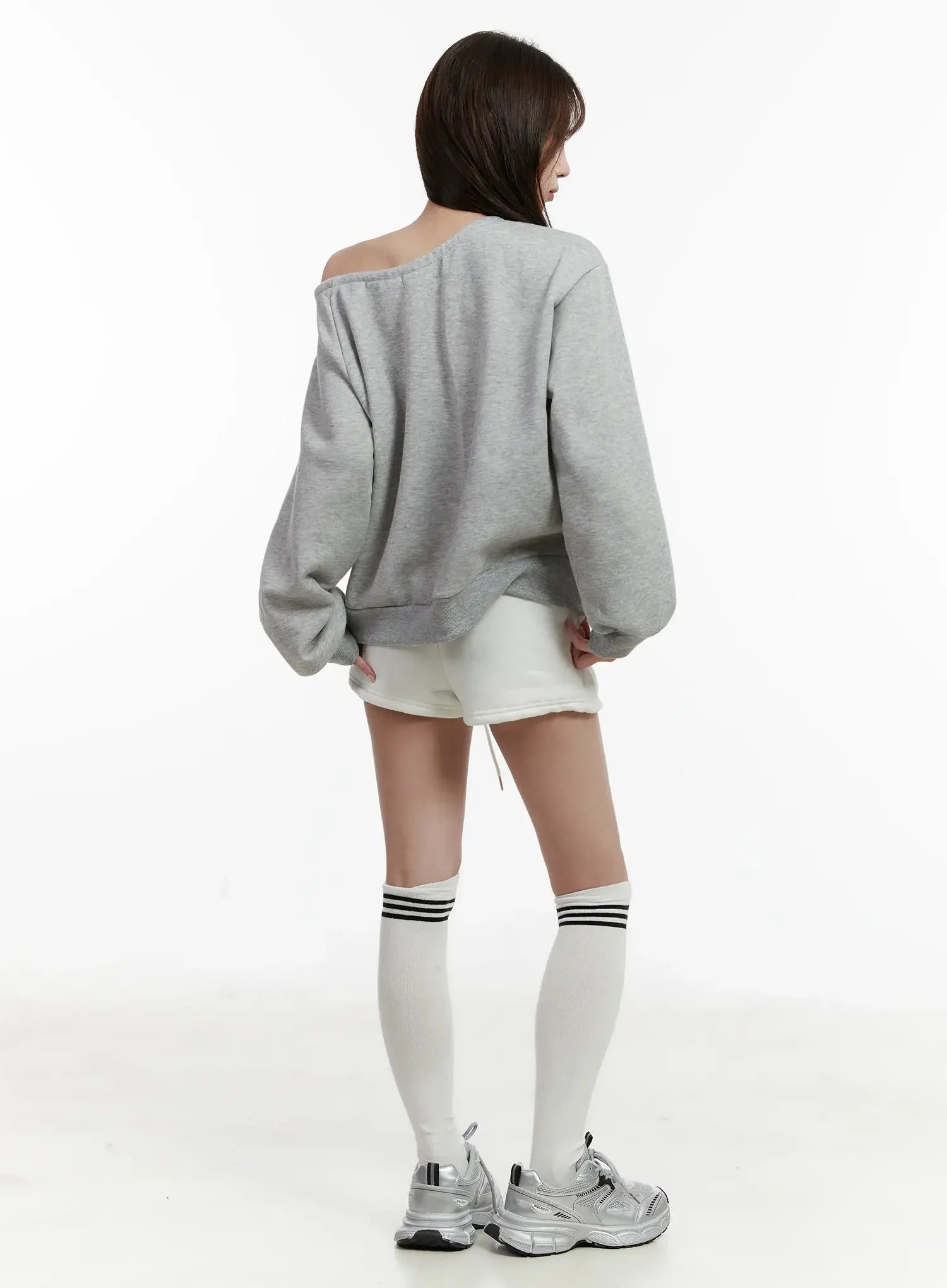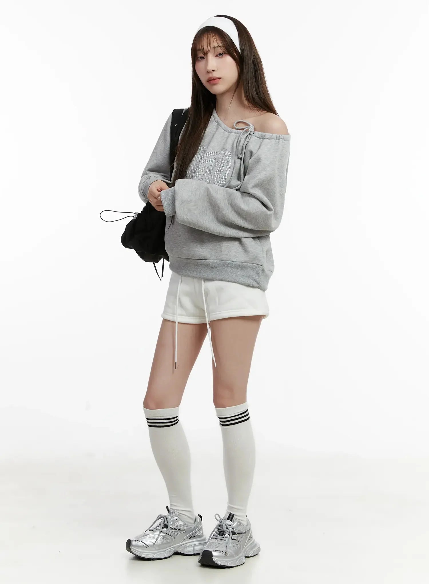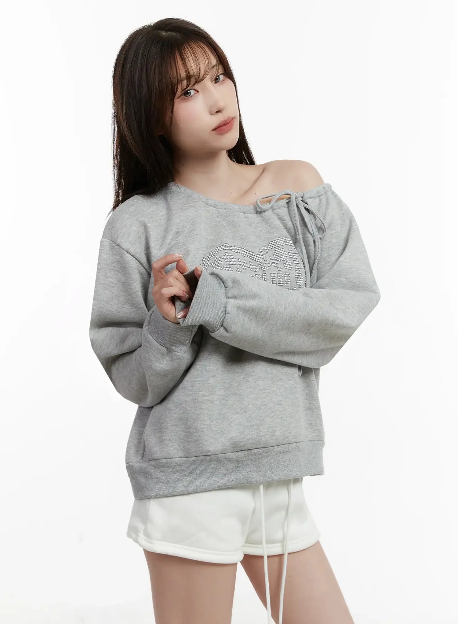 Off-Shoulder Ribbon Sweatshirt IJ521