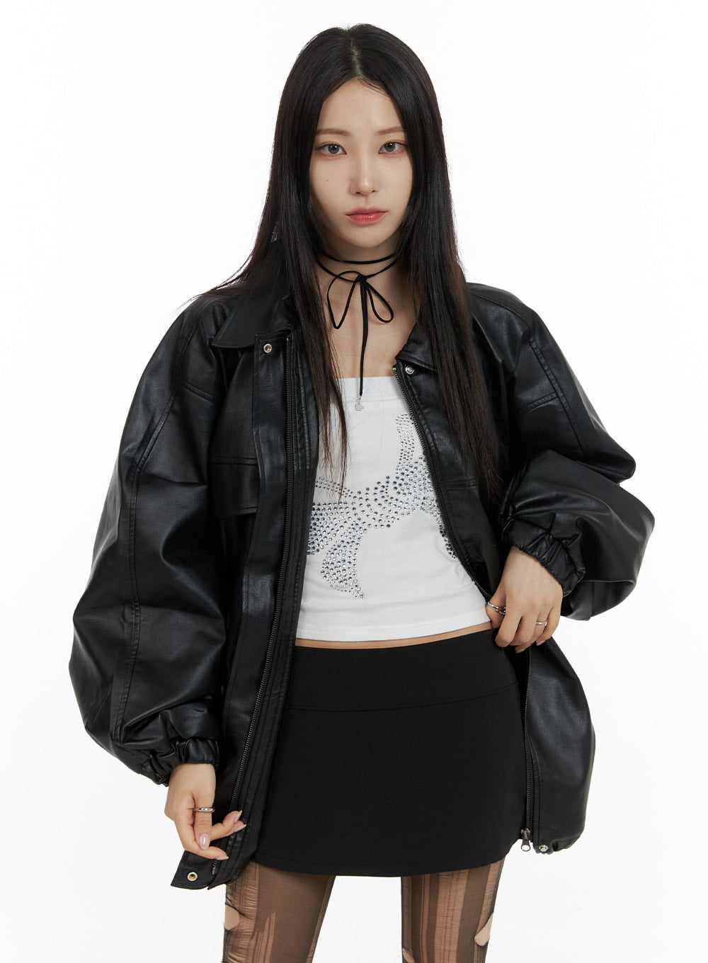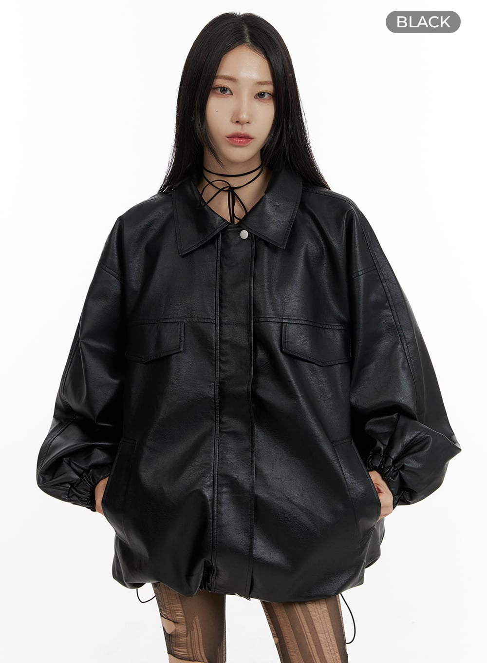 Oversized Faux Leather Jacket CF428