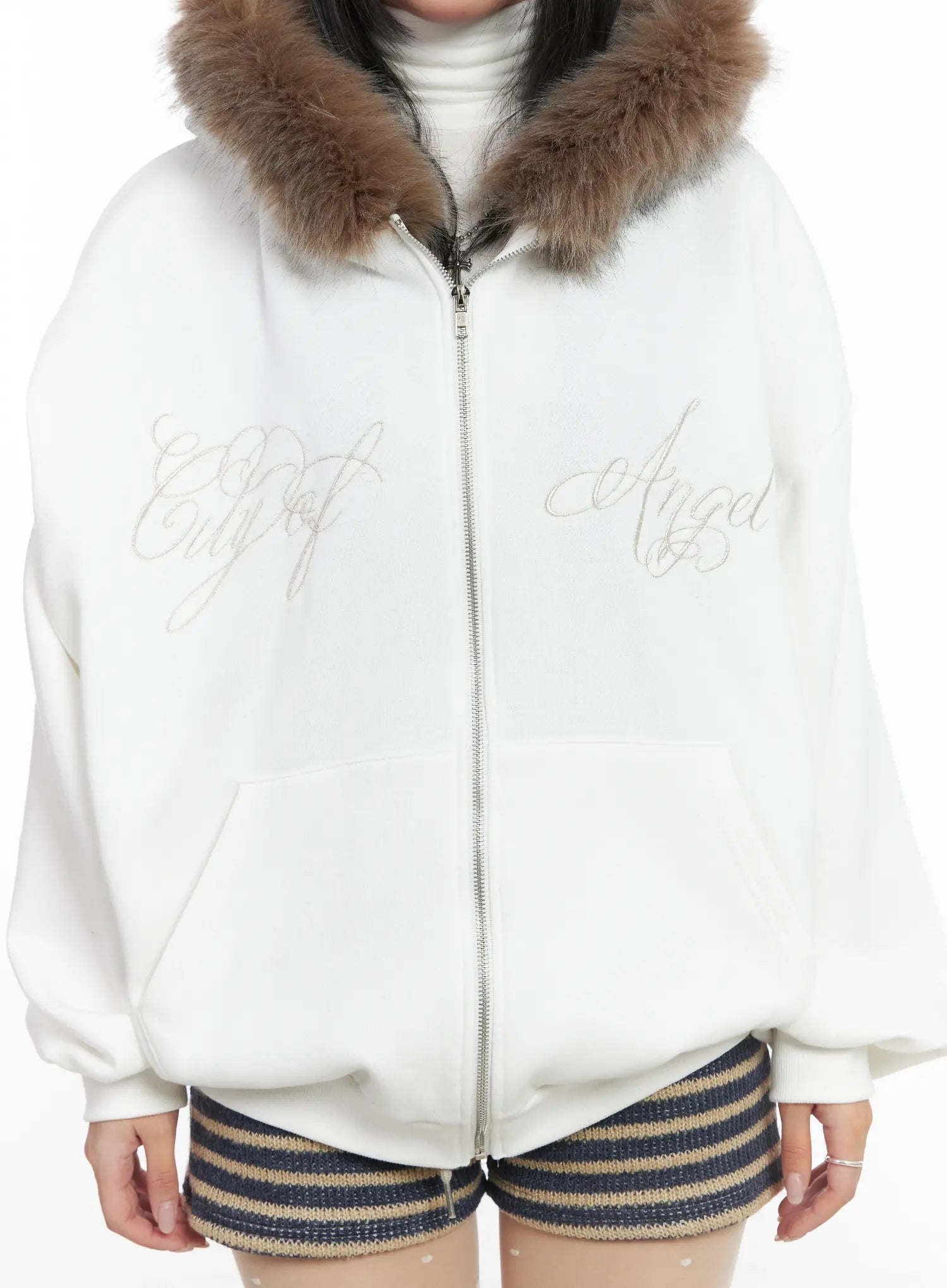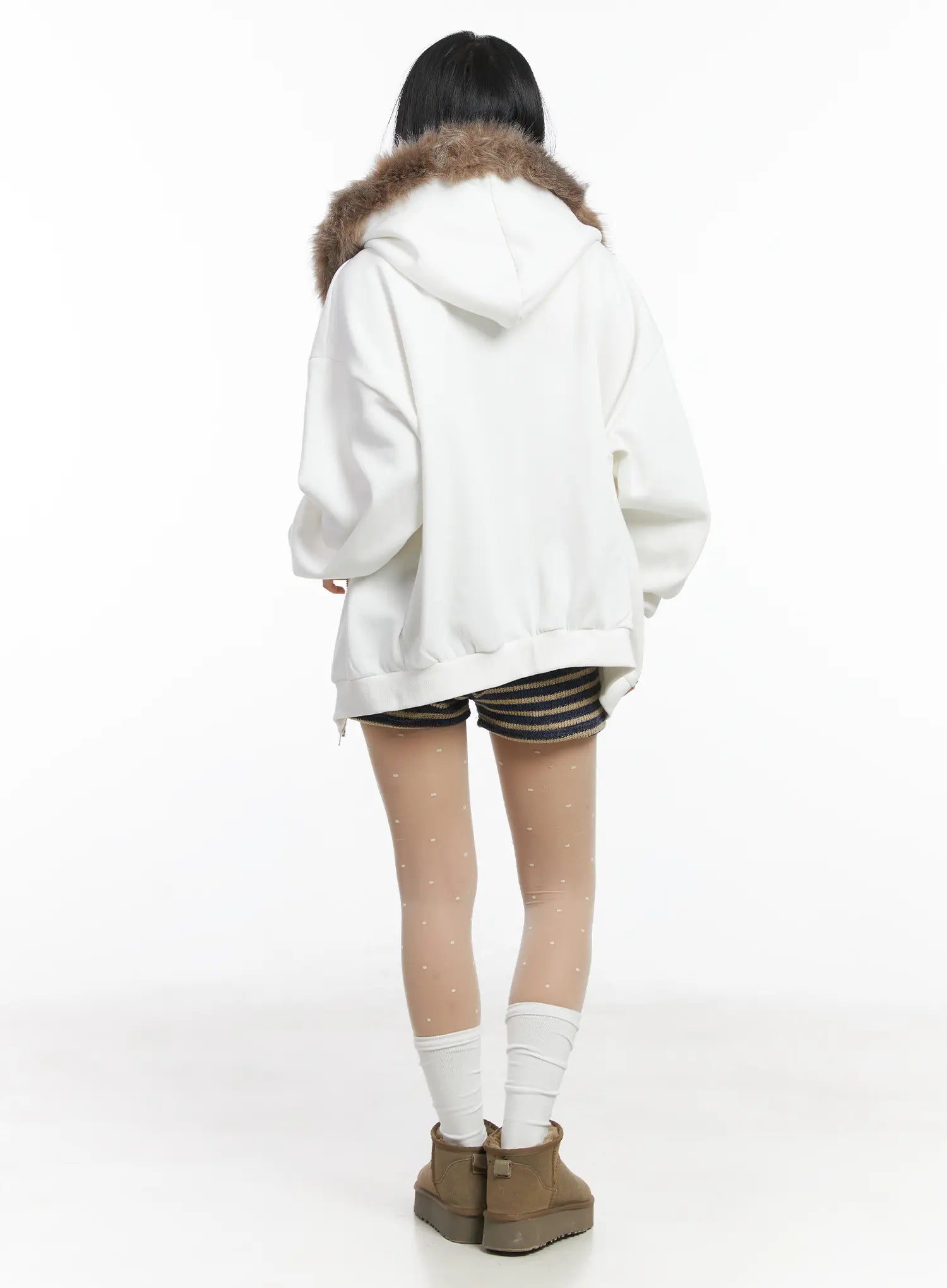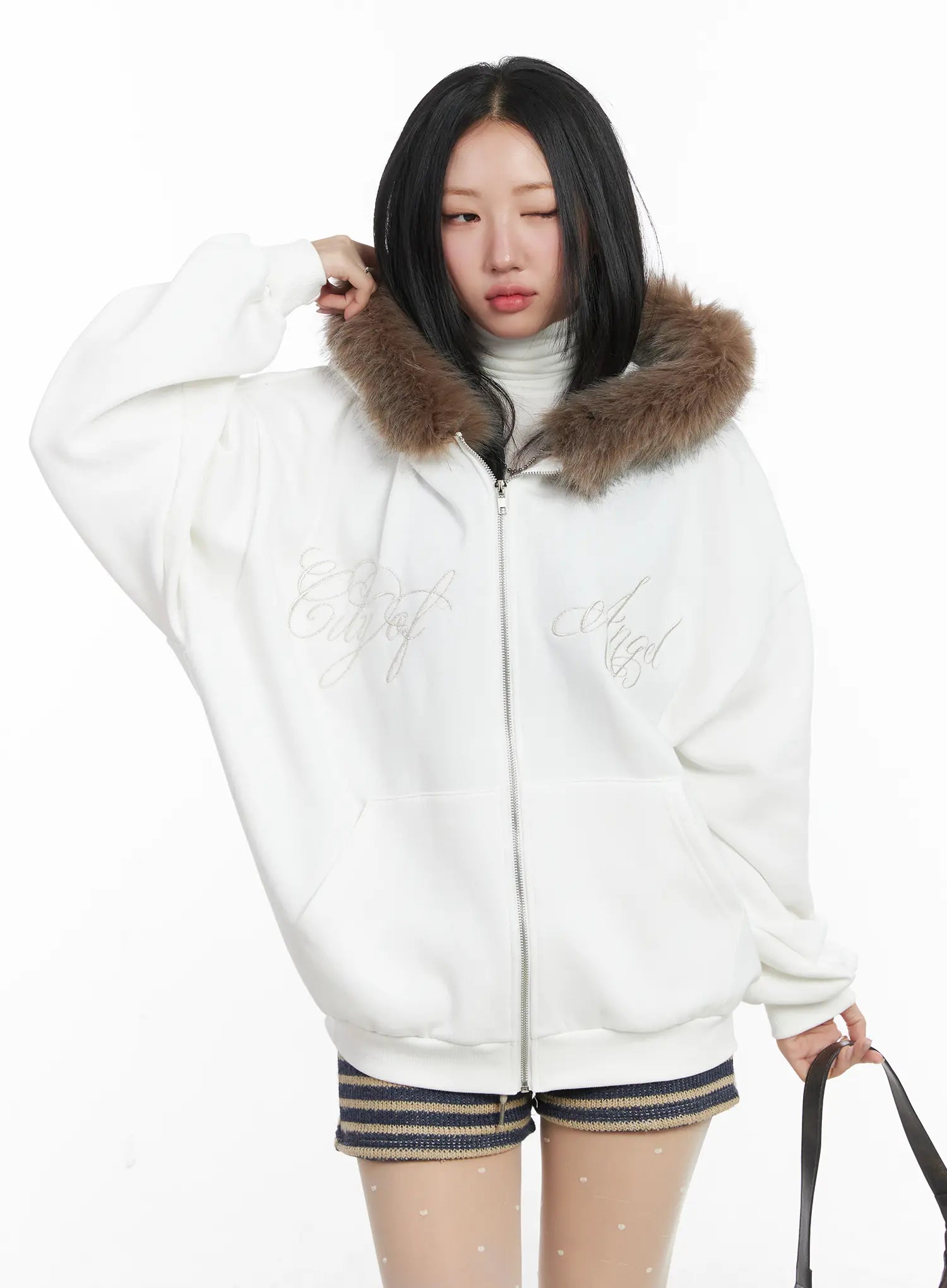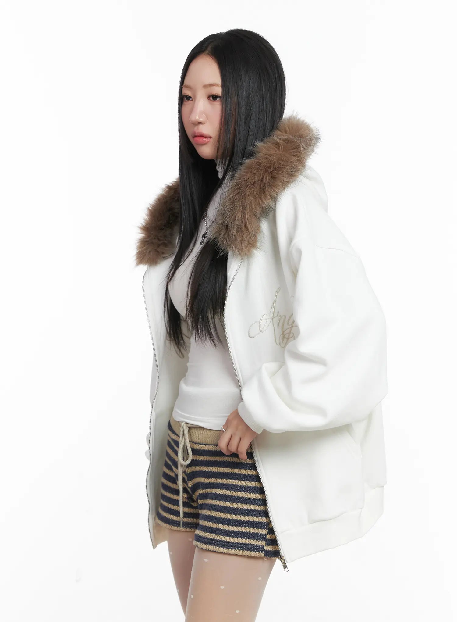 Oversized Fleece Faux Fur Zip-Up Hoodie CD529