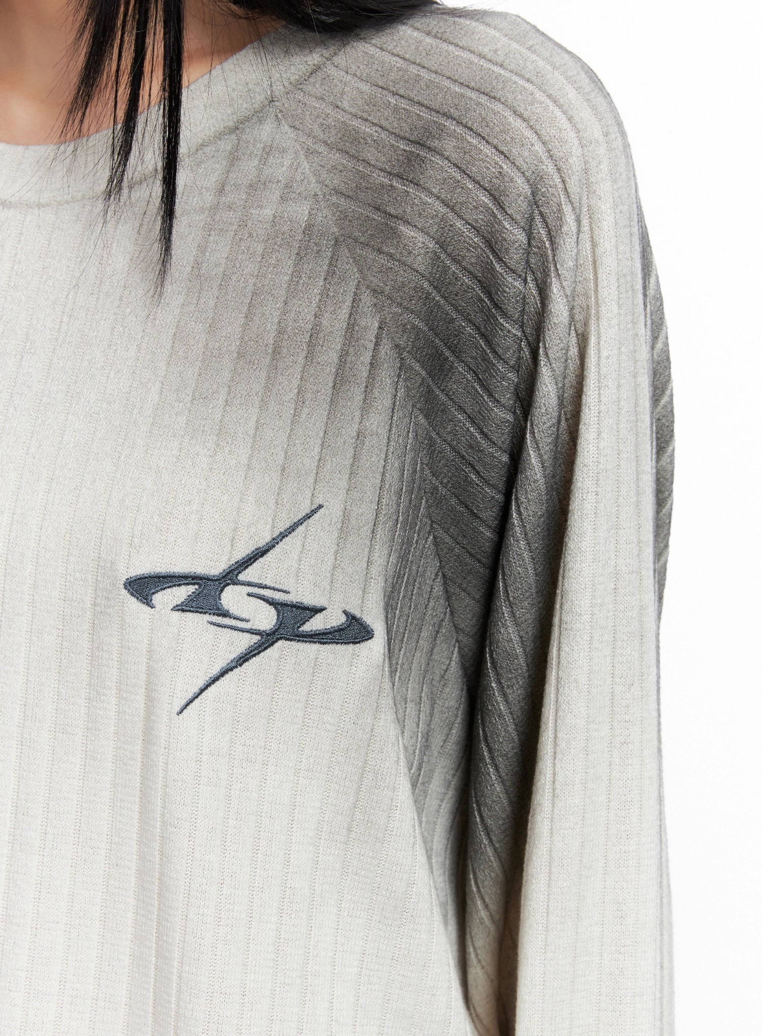 Oversized Gradient Ribbed Knit Top IO517
