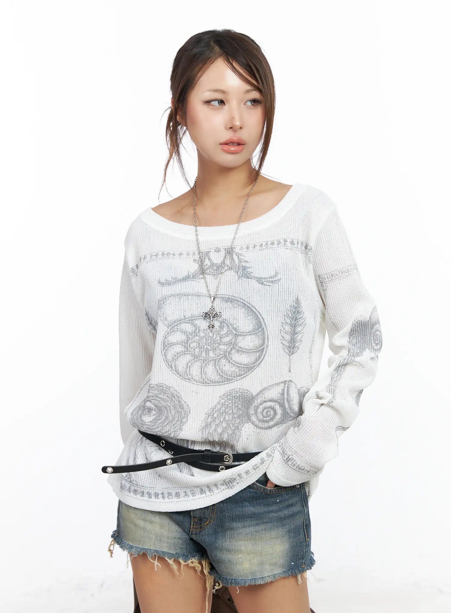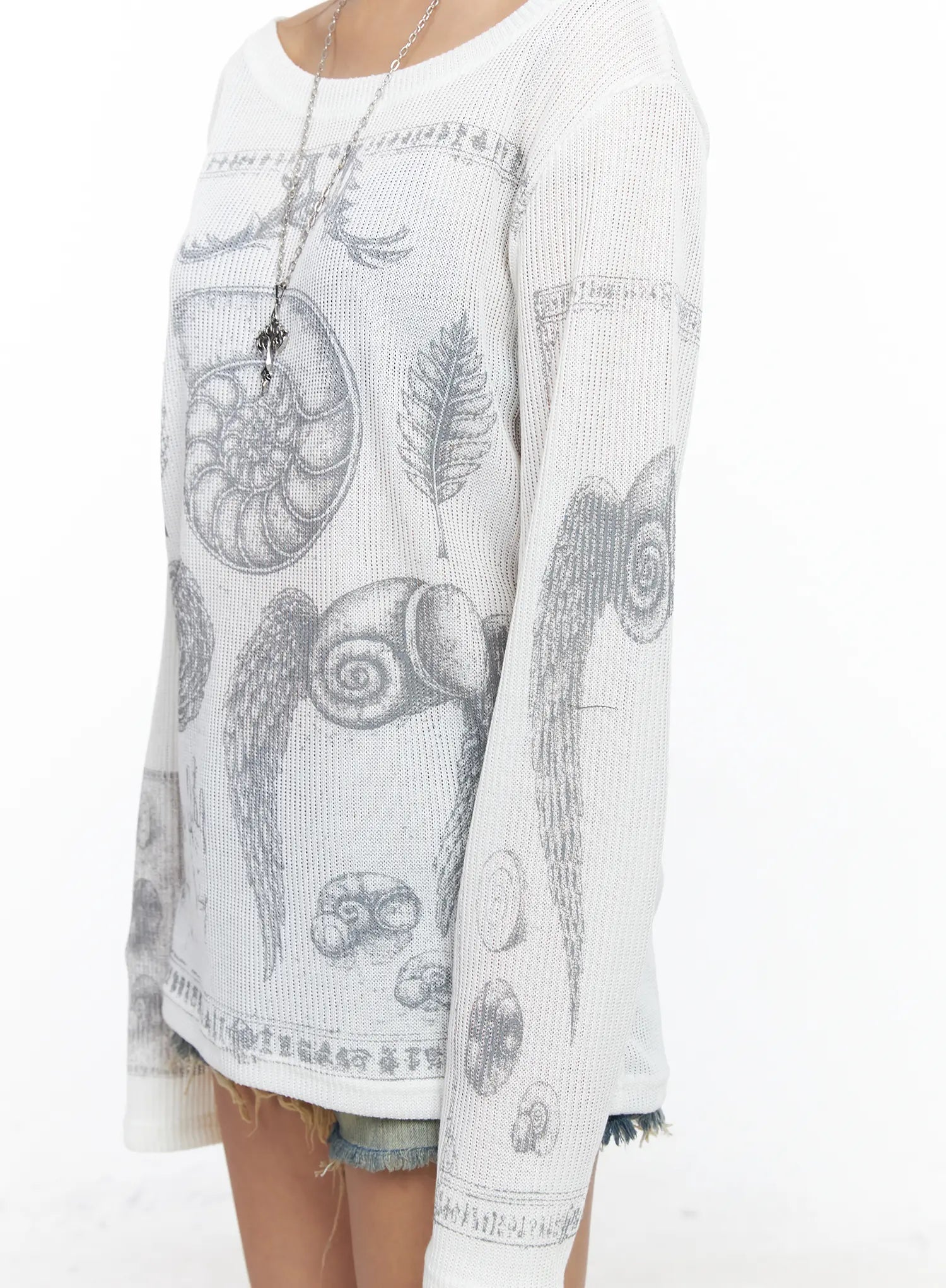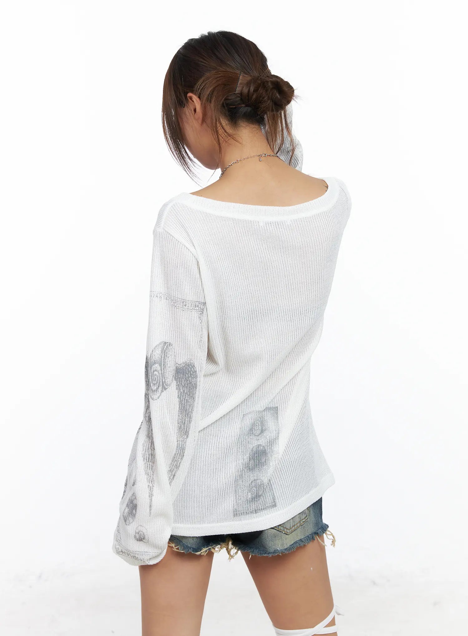 Oversized Graphic Ribbed Long Sleeve Top CF511