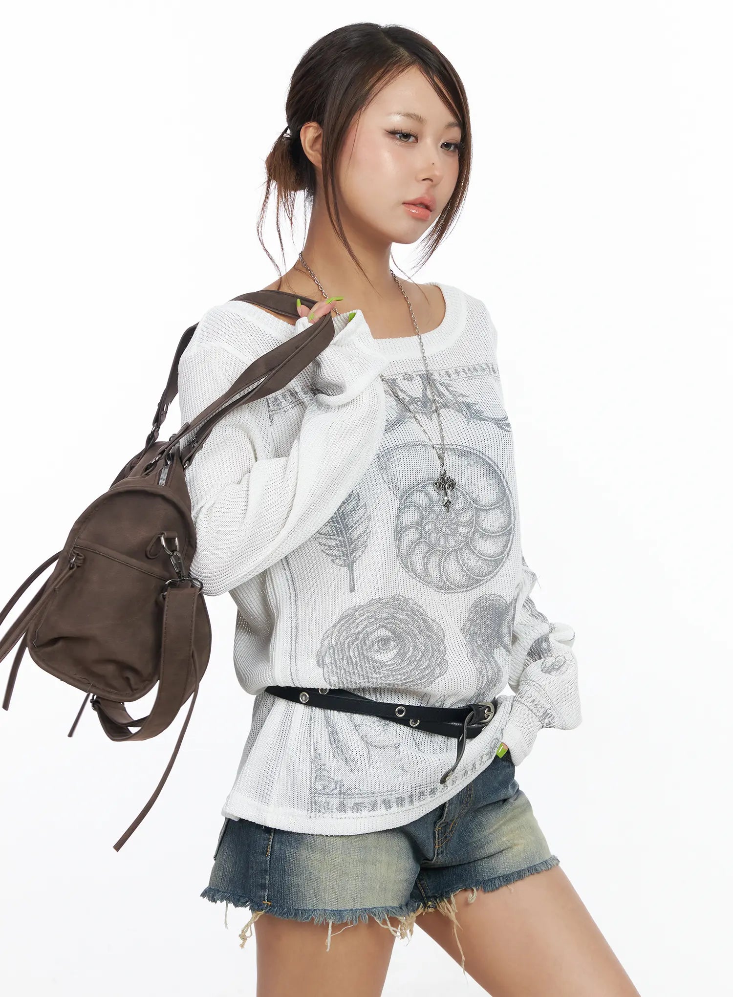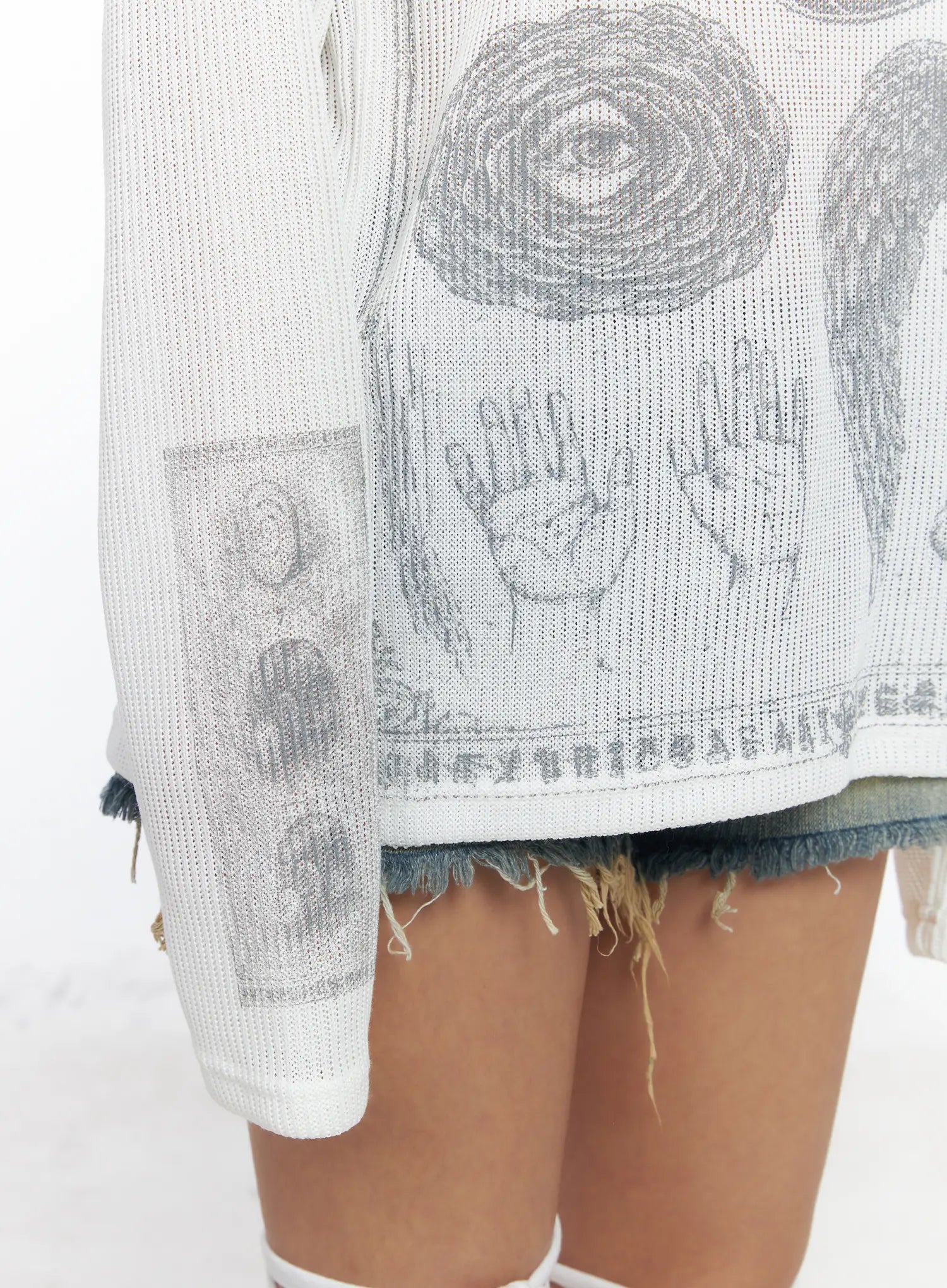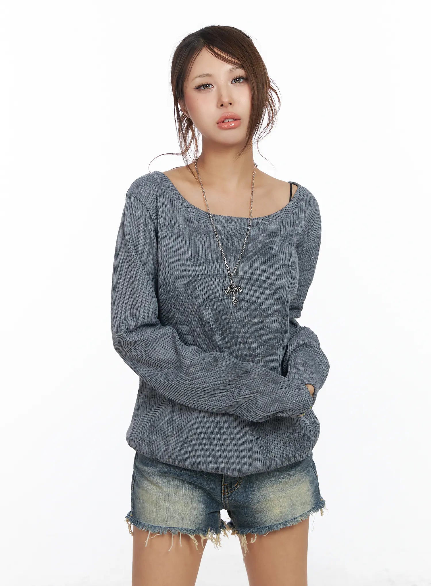 Oversized Graphic Ribbed Long Sleeve Top CF511