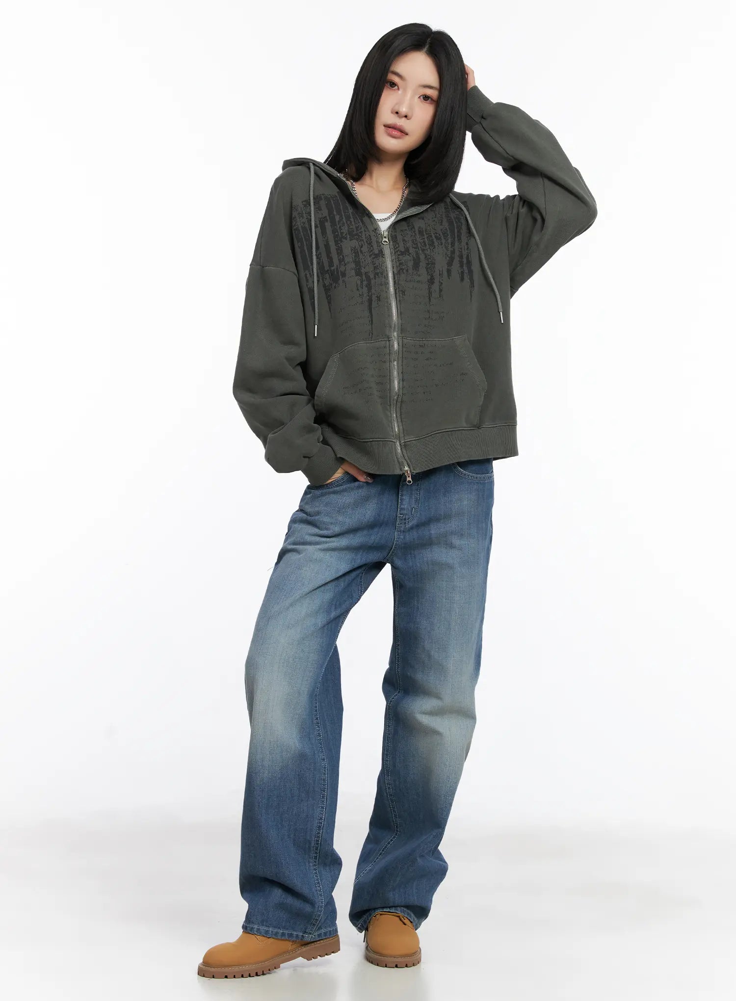 Oversized Pigment Print Zip-Up Hoodie CD505